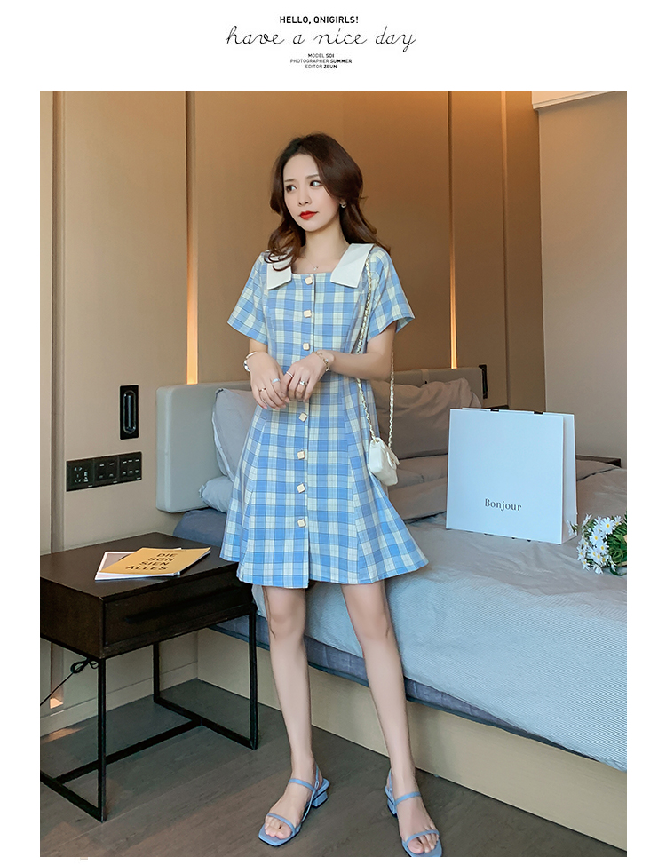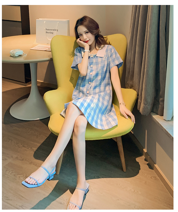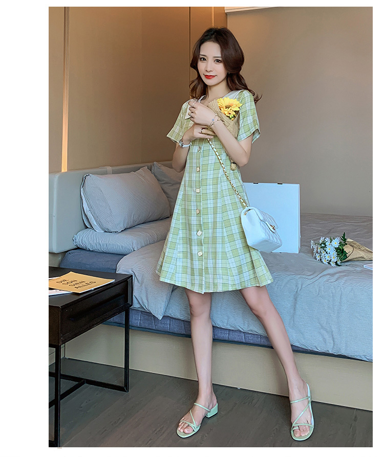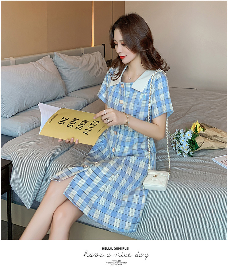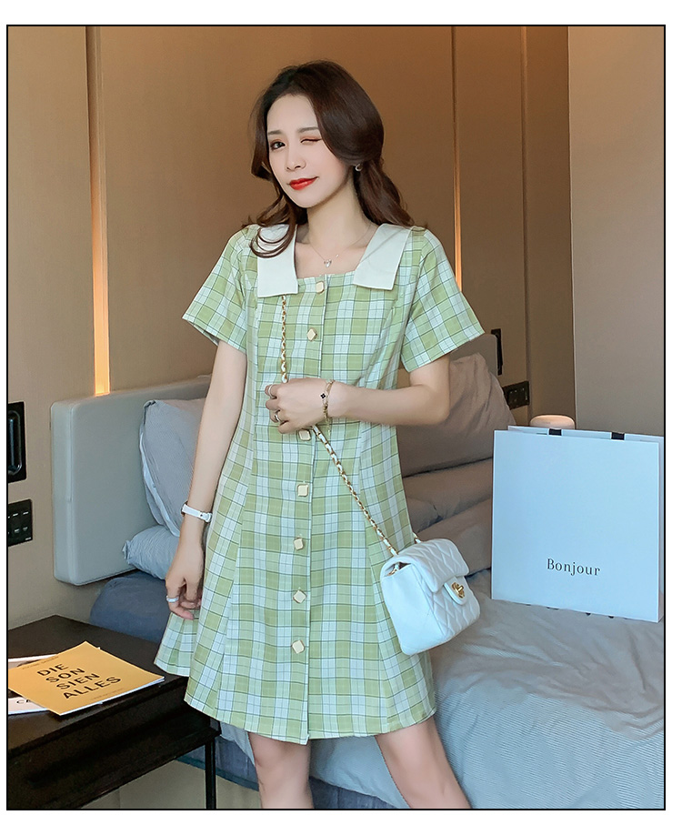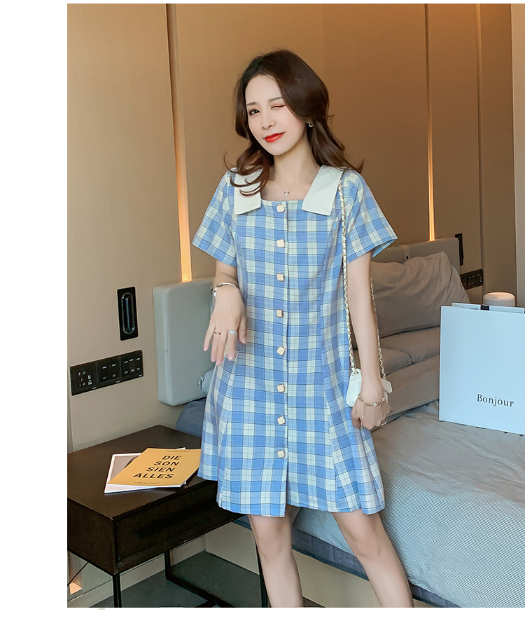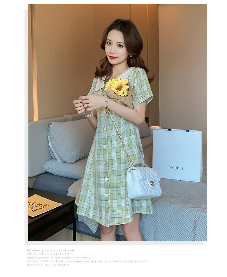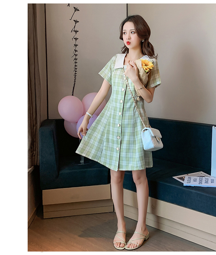 实拍9928#哺乳衣外出复古格子修身显瘦连衣裙产后哺乳期喂奶衣服