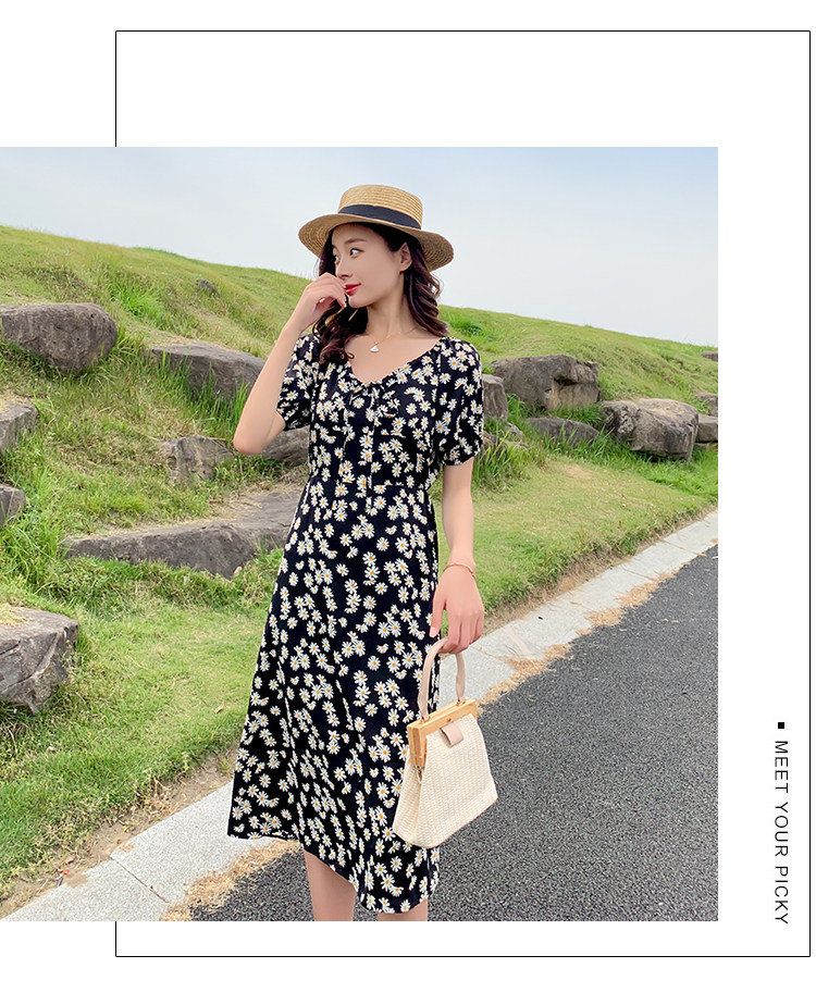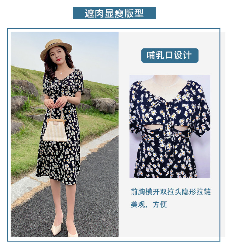 实拍 款夏季闺蜜装哺乳连衣裙甜范小雏菊碎花裙外出哺乳a字裙