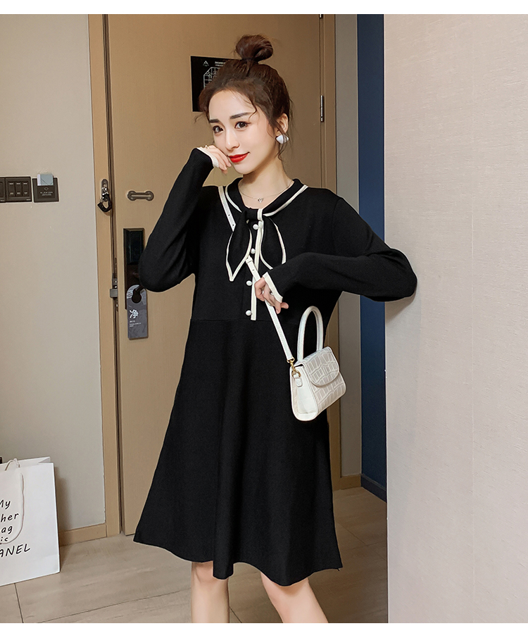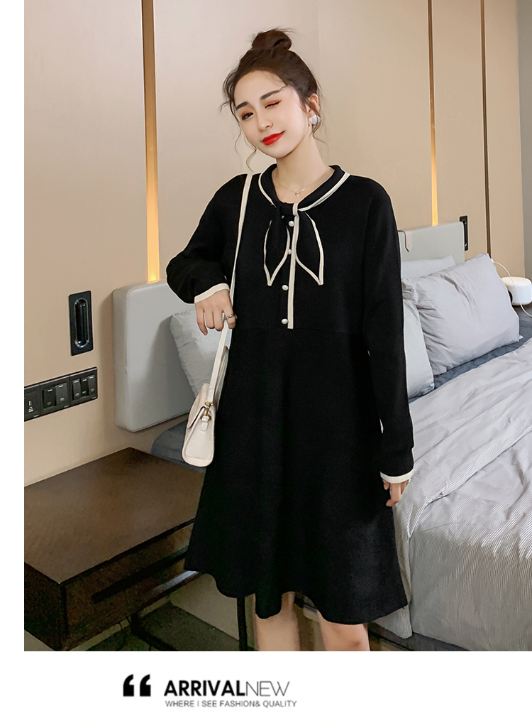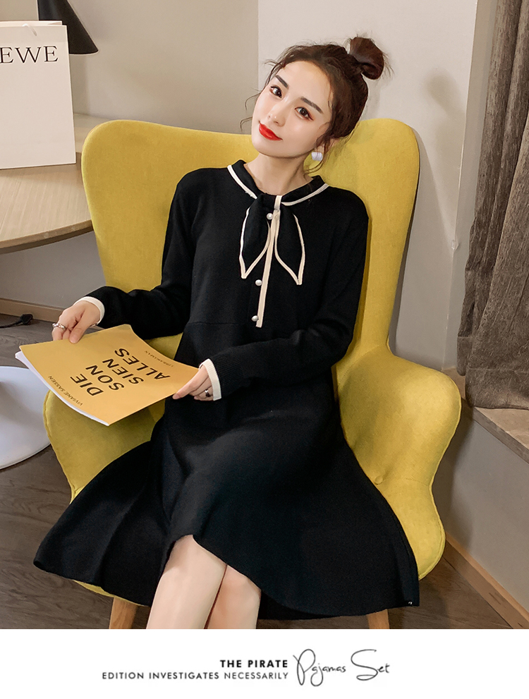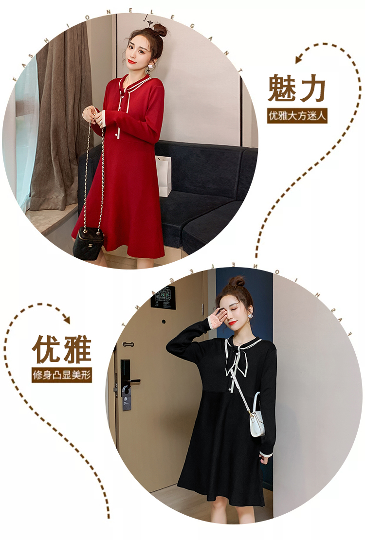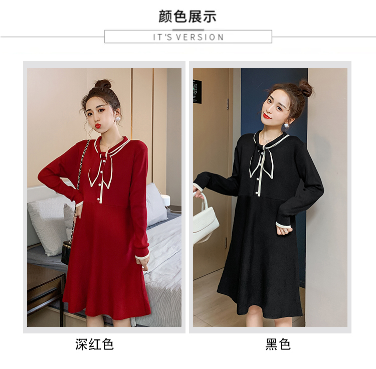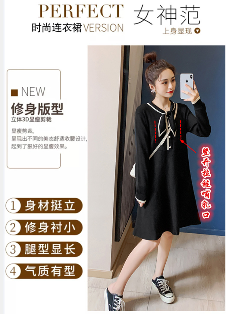 实拍8007#秋冬哺乳毛衣外出时尚蝴蝶结针织连衣裙产后喂奶打底裙