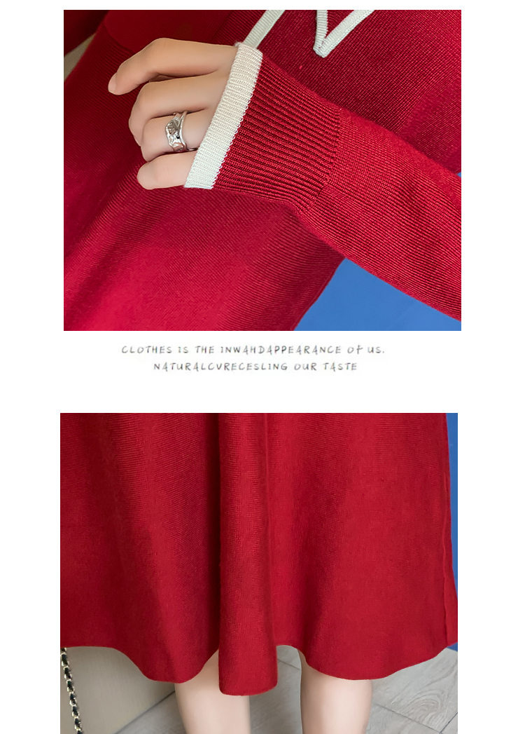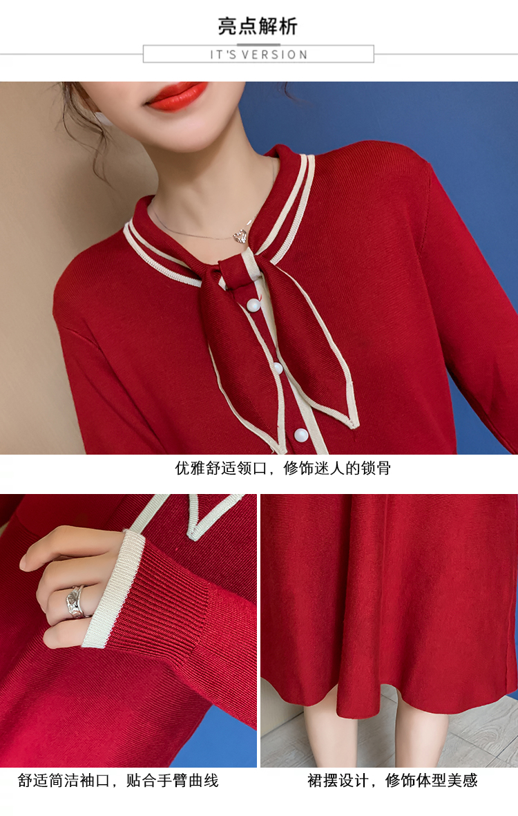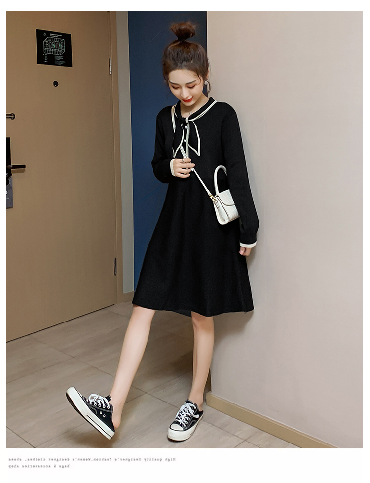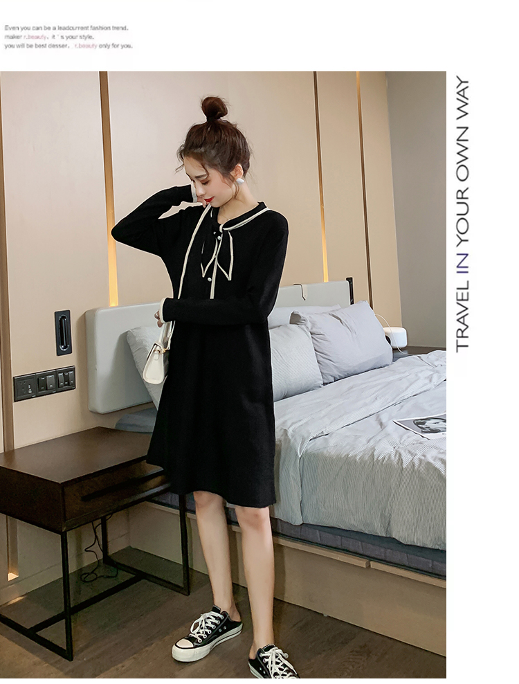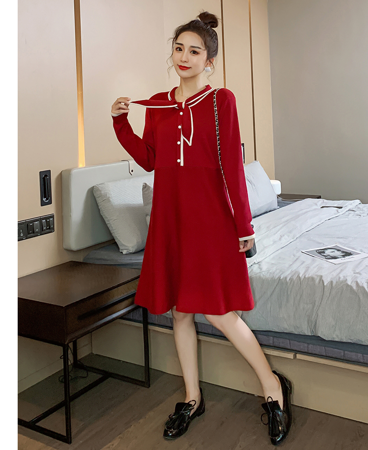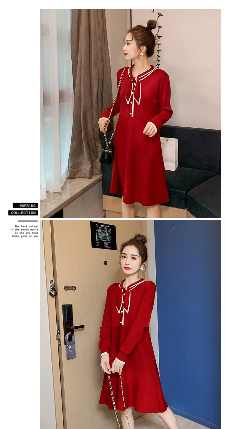 实拍8007#秋冬哺乳毛衣外出时尚蝴蝶结针织连衣裙产后喂奶打底裙