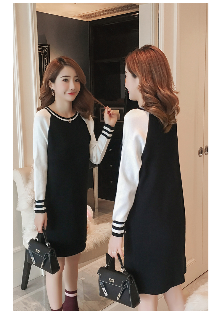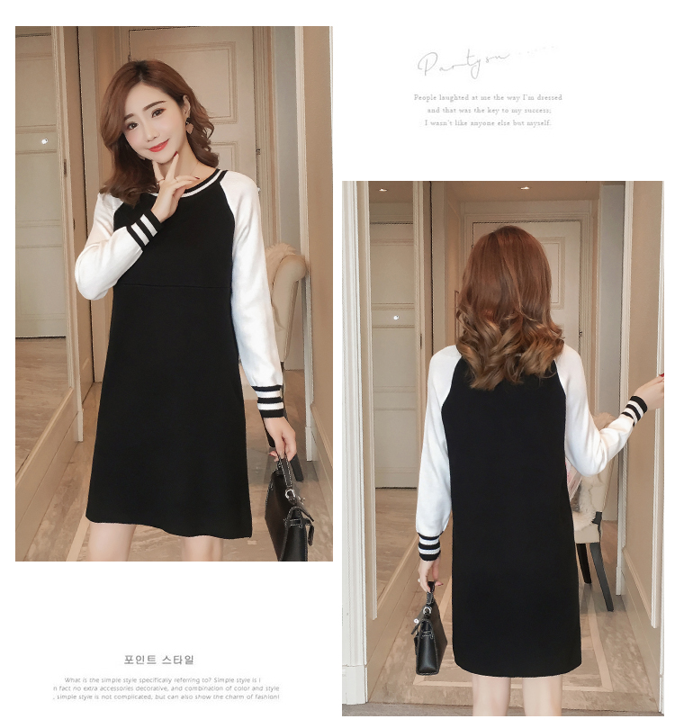 实拍6647#秋冬哺乳毛衣时尚拼接显瘦针织连衣裙产后小香风喂奶衣