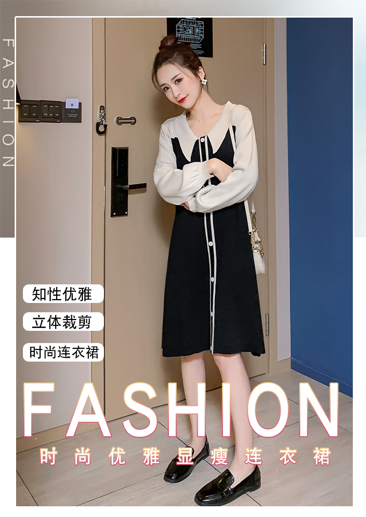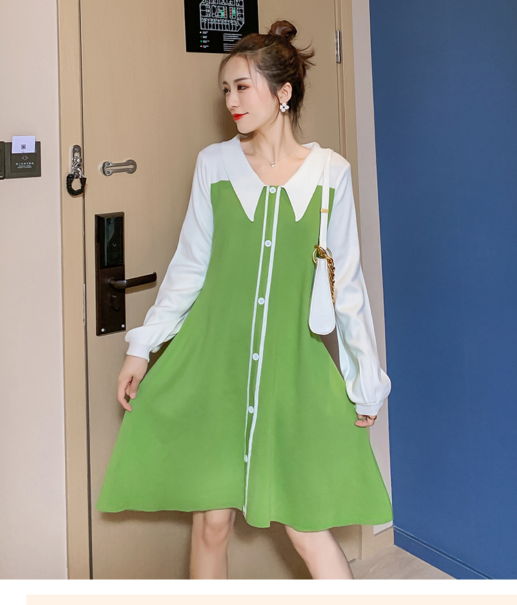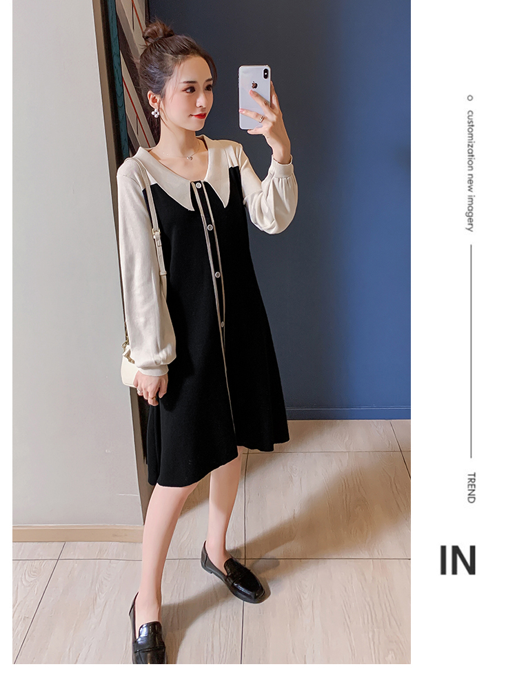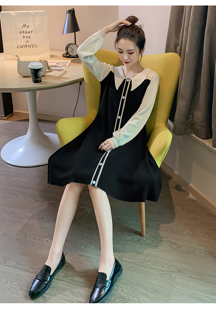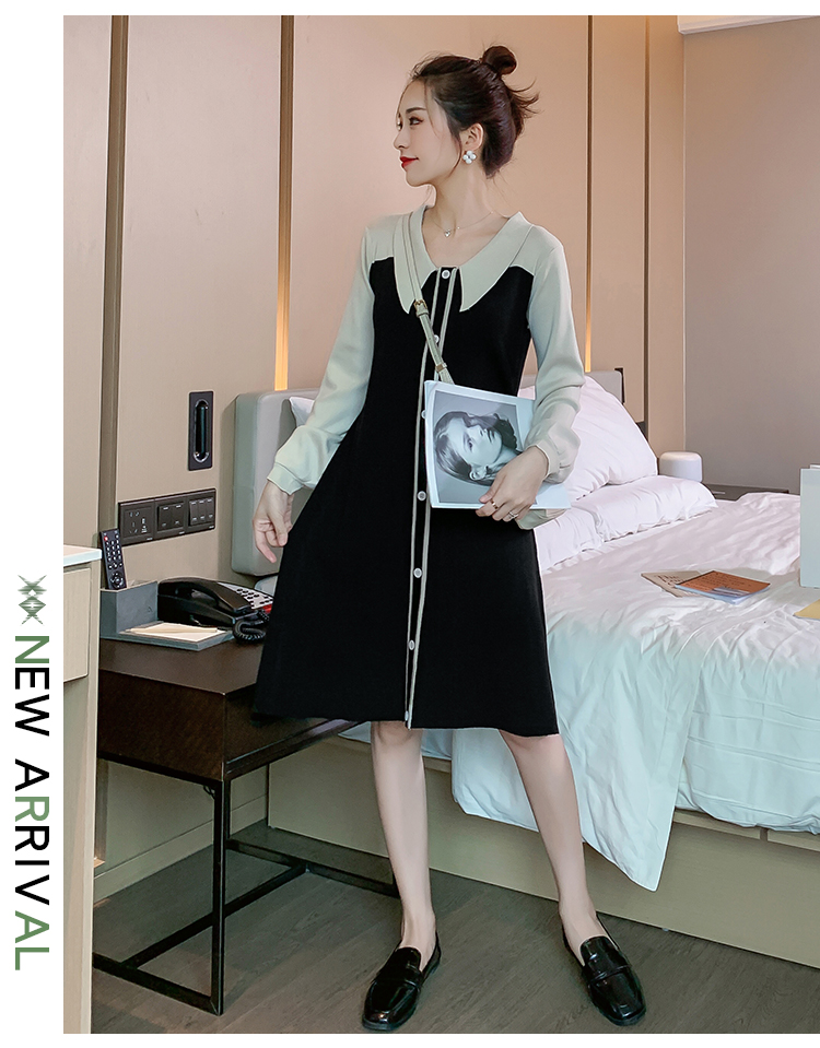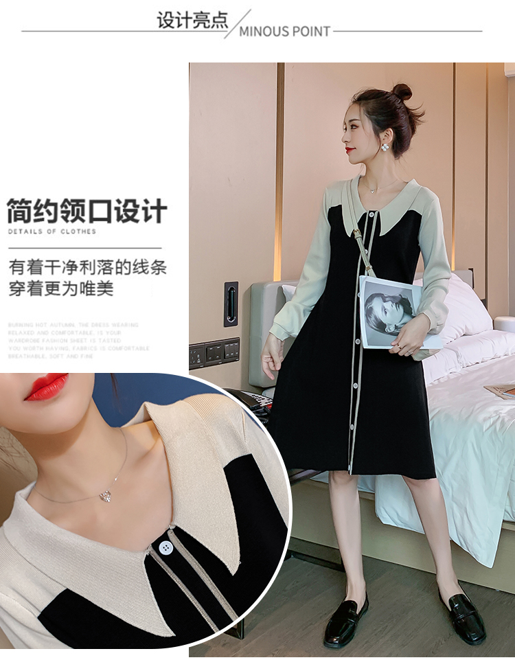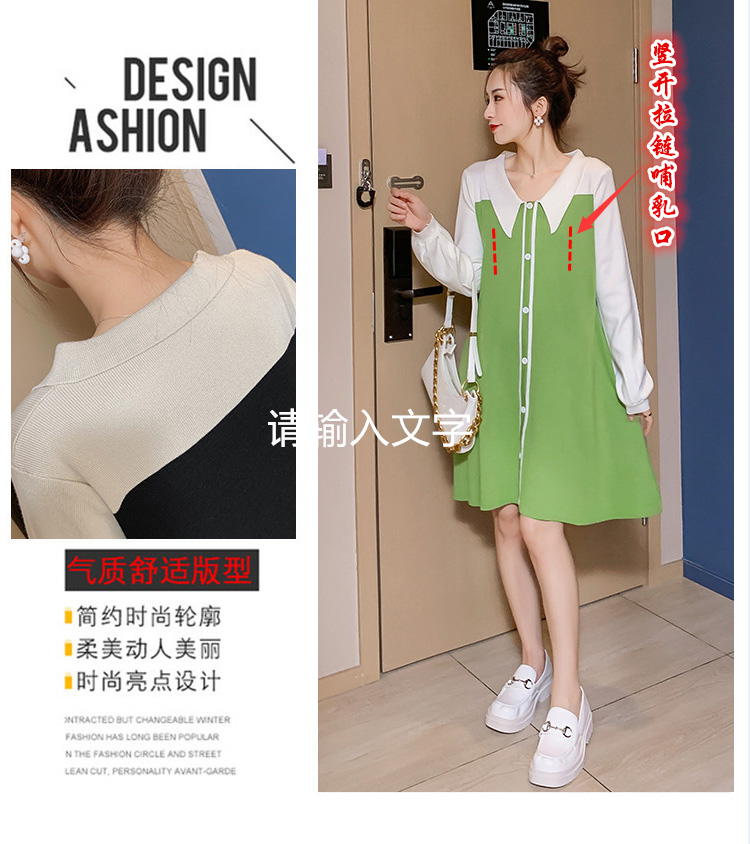 实拍9936#秋冬哺乳毛衣外出撞色拼接针织连衣裙产后显瘦喂奶衣服
