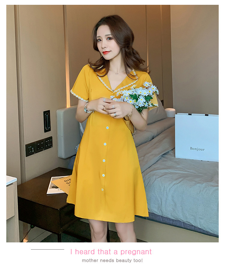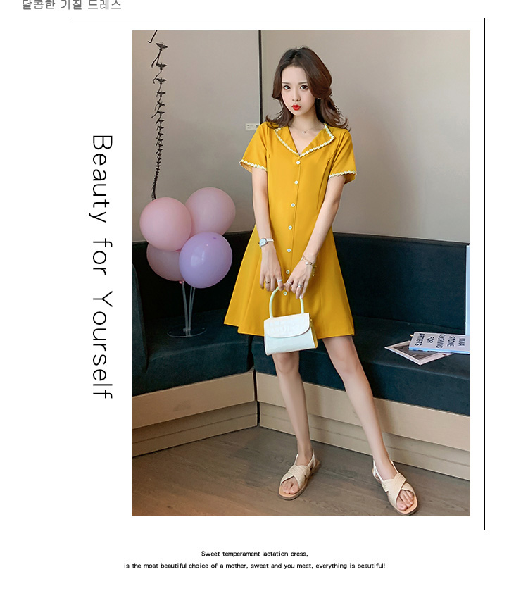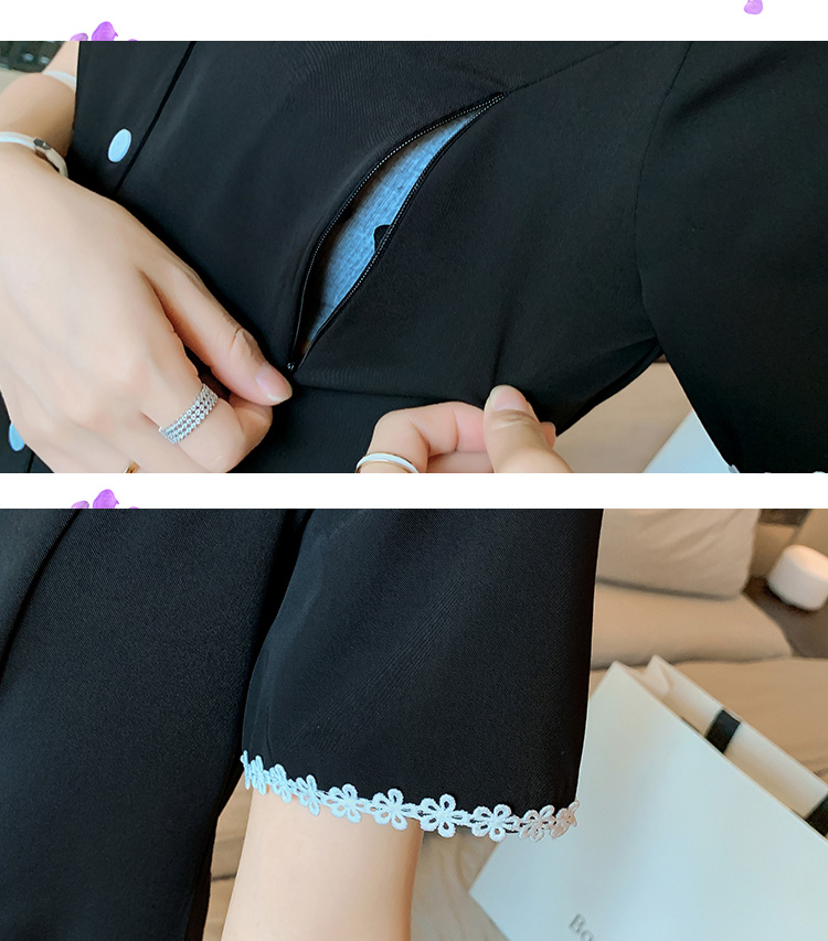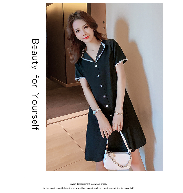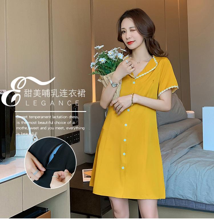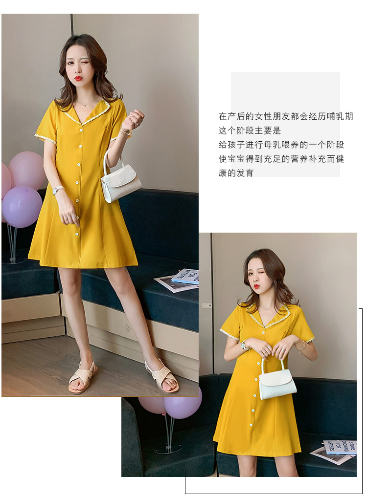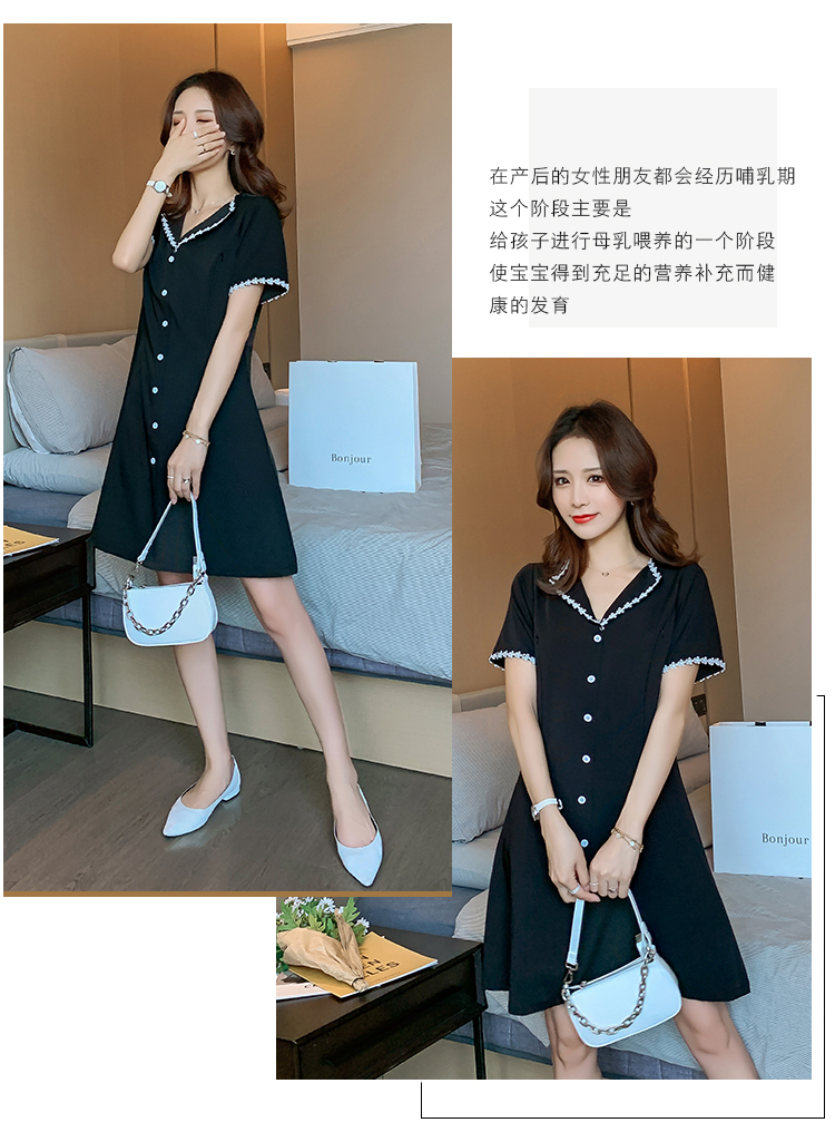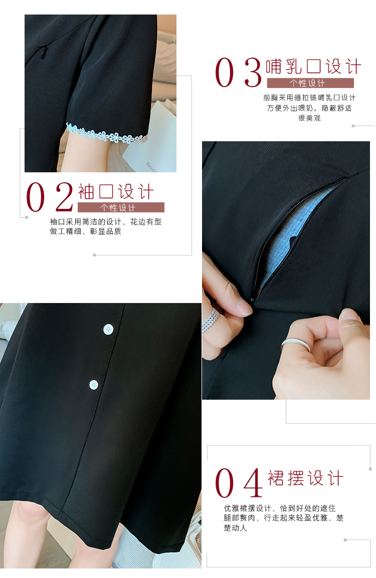 实拍哺乳装外出时尚V领雪纺连衣裙潮妈产后修身显瘦喂奶衣服