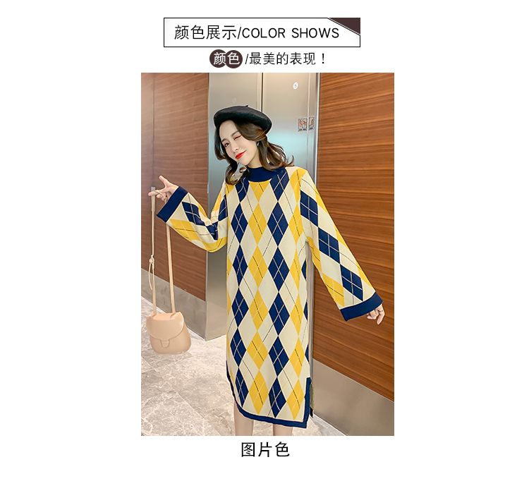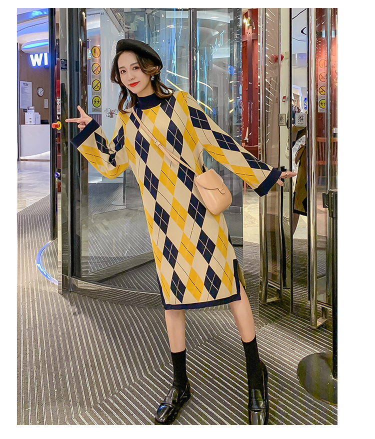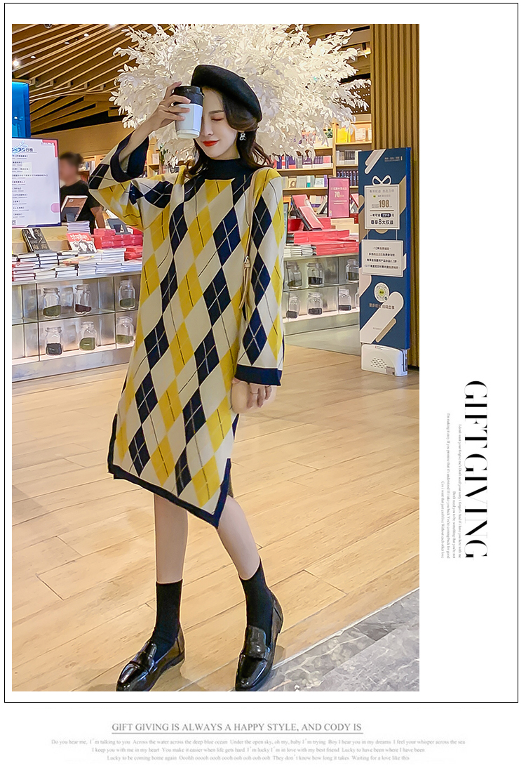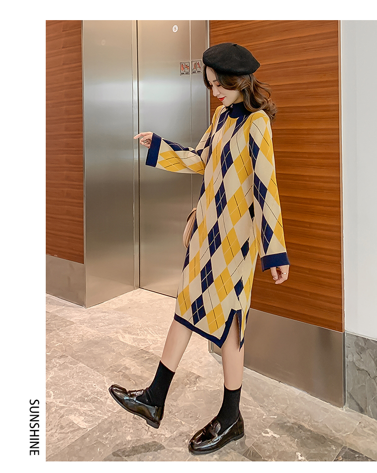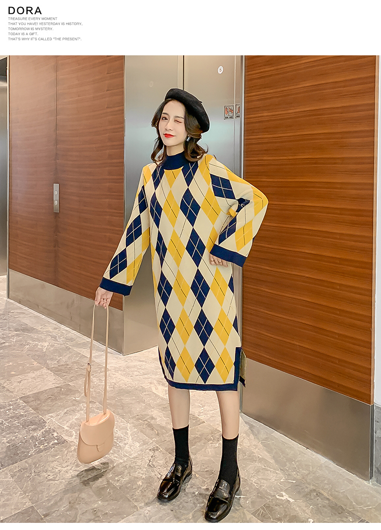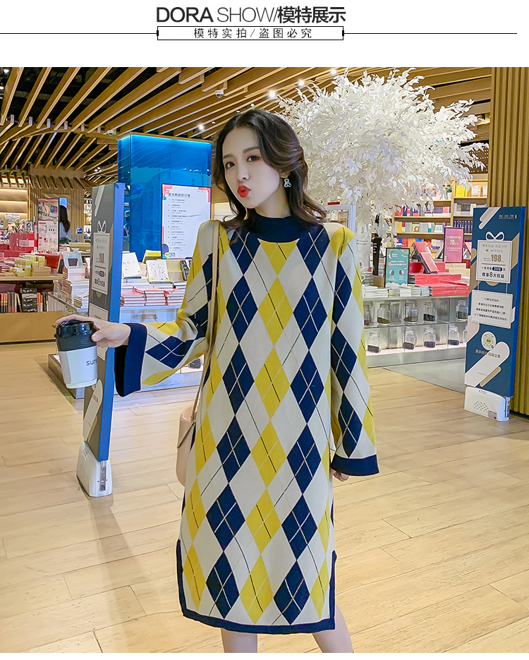 实拍9923秋冬包芯纱哺乳毛衣潮妈产后网红港风格子喂奶针织连衣裙