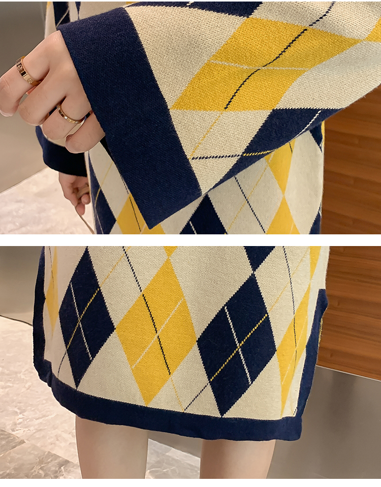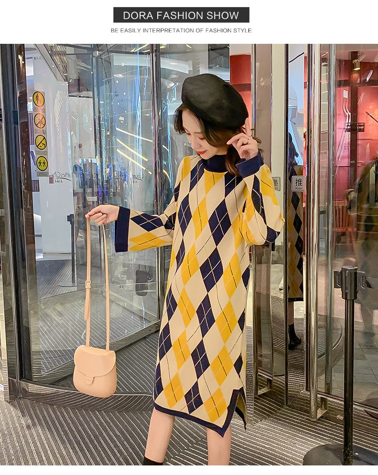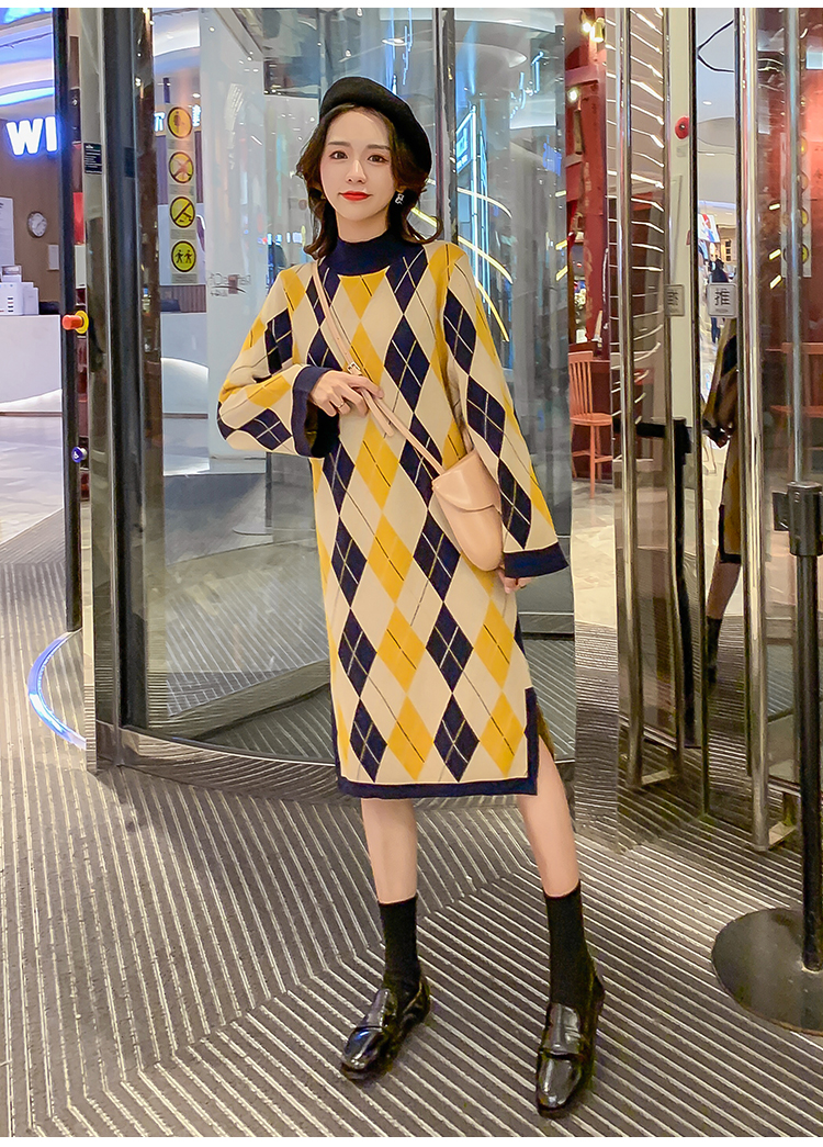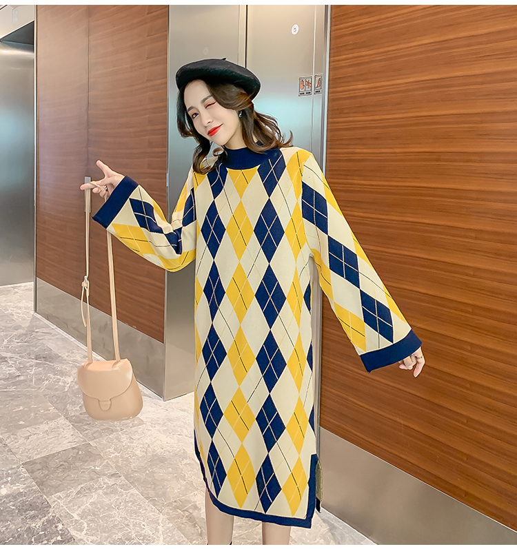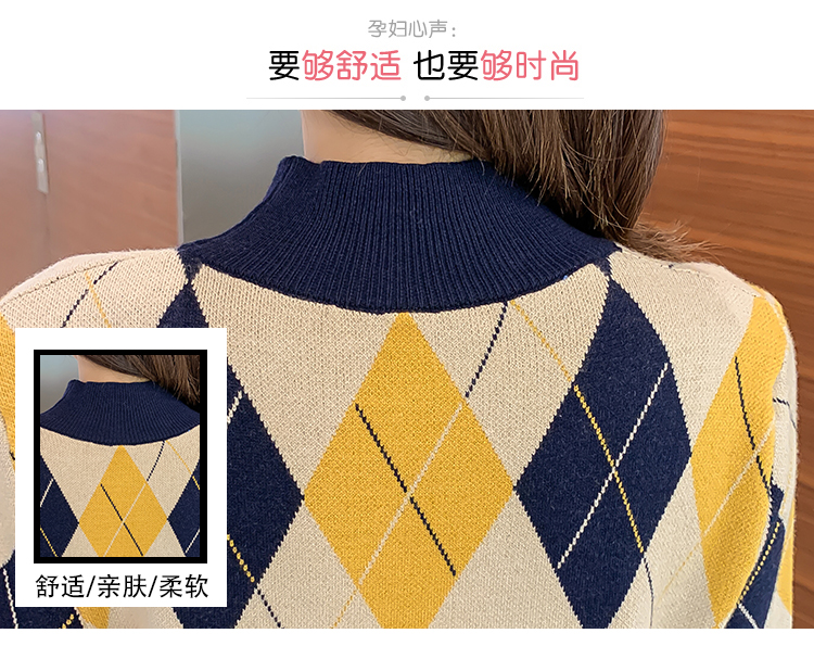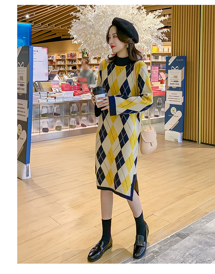 实拍9923秋冬包芯纱哺乳毛衣潮妈产后网红港风格子喂奶针织连衣裙