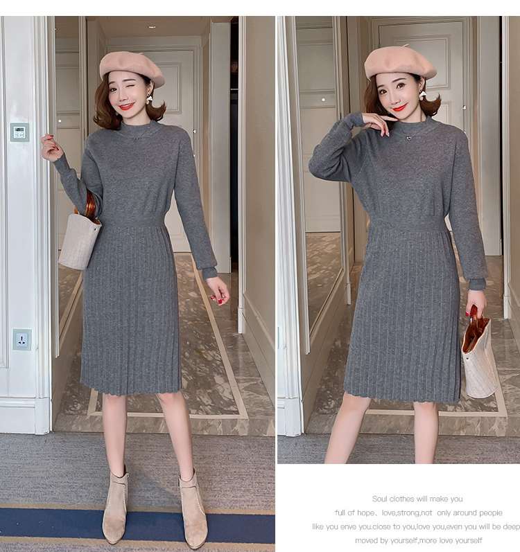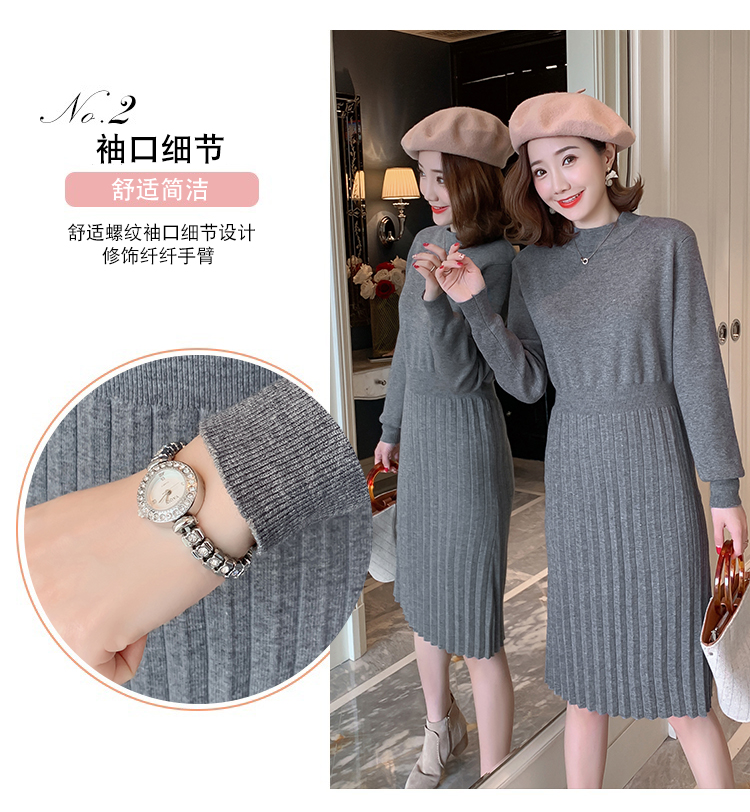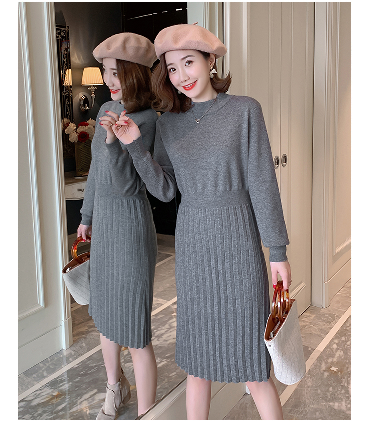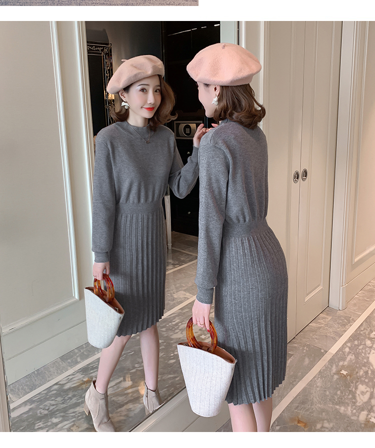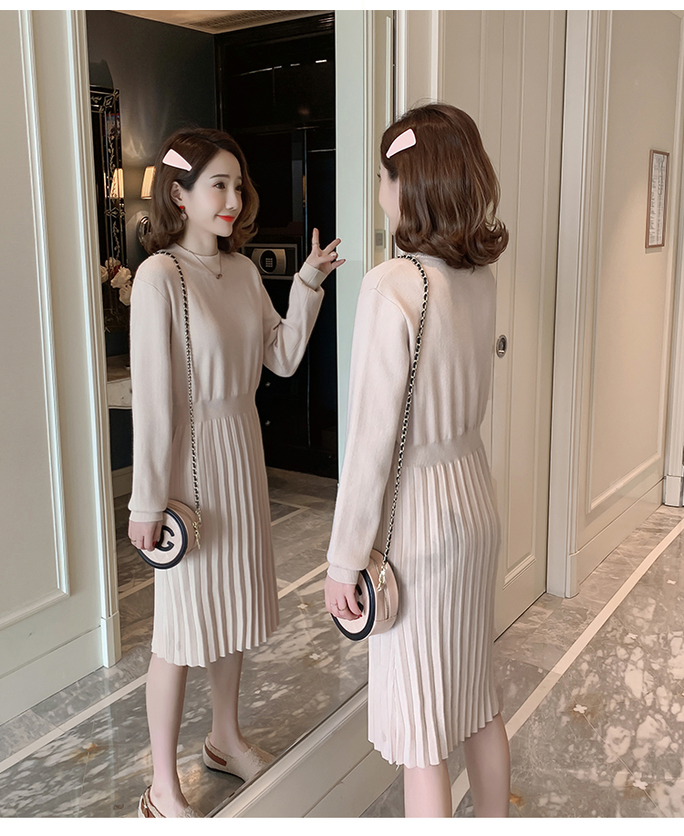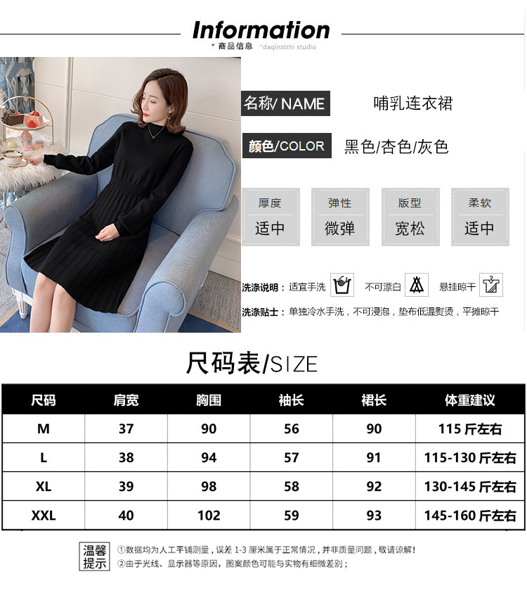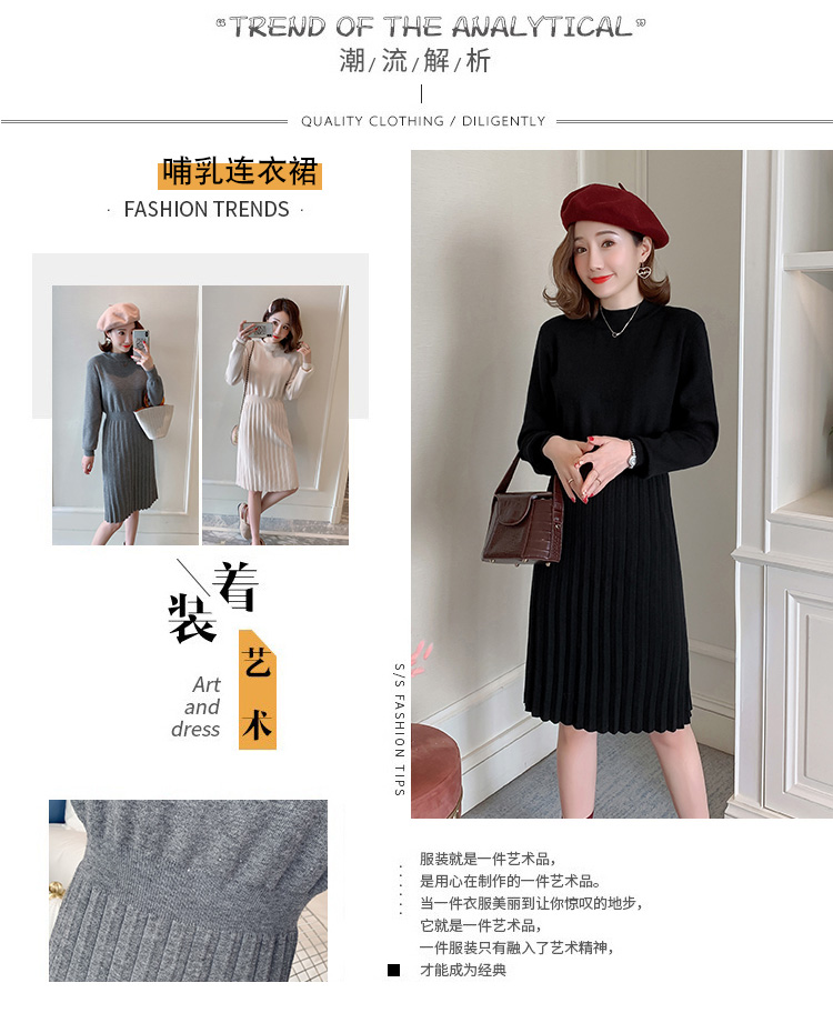 实拍9913#秋冬哺乳毛衣外出包芯纱百褶针织连衣裙产后喂奶打底衫