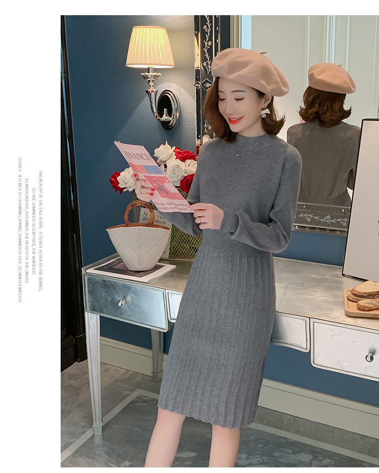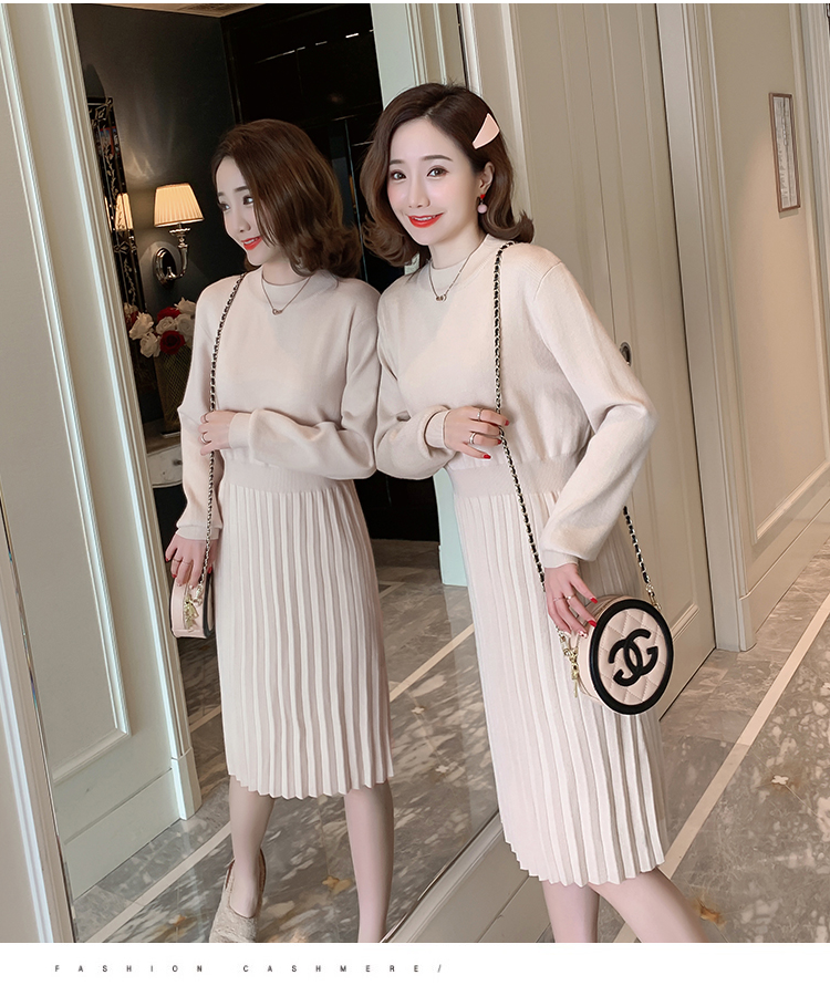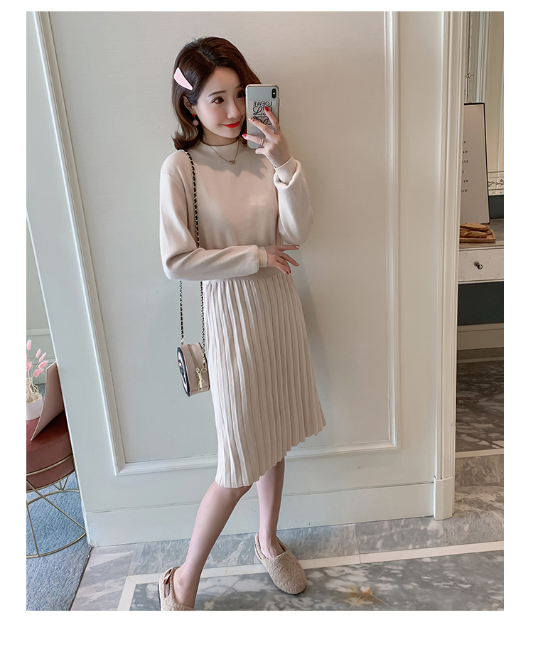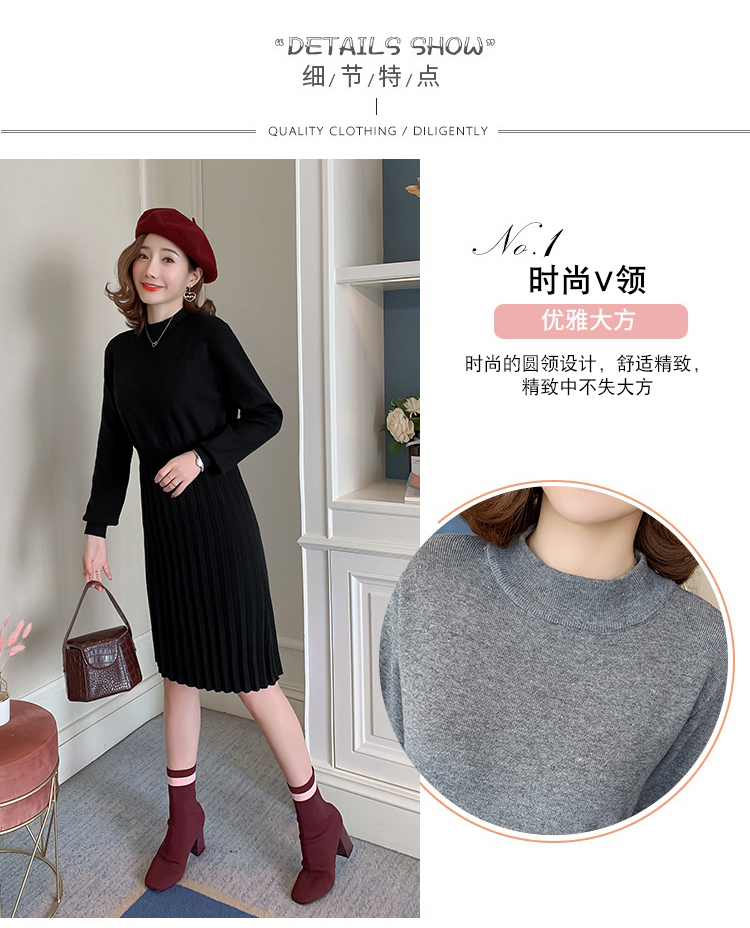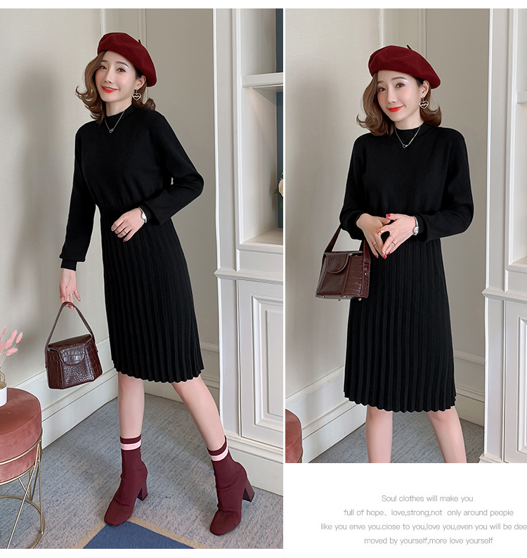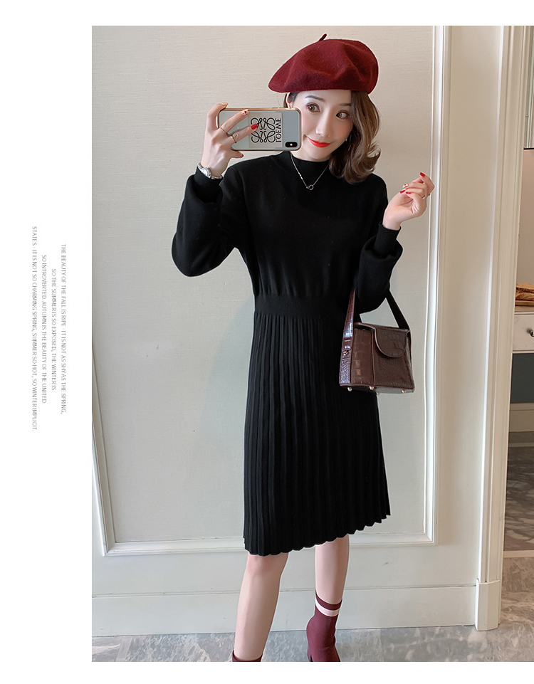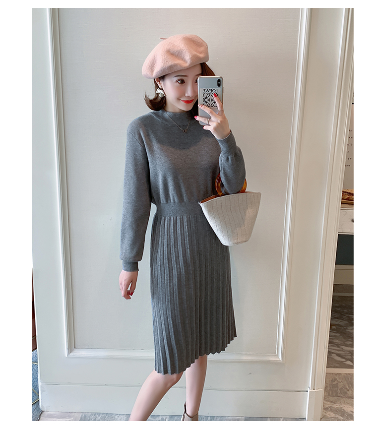 实拍9913#秋冬哺乳毛衣外出包芯纱百褶针织连衣裙产后喂奶打底衫