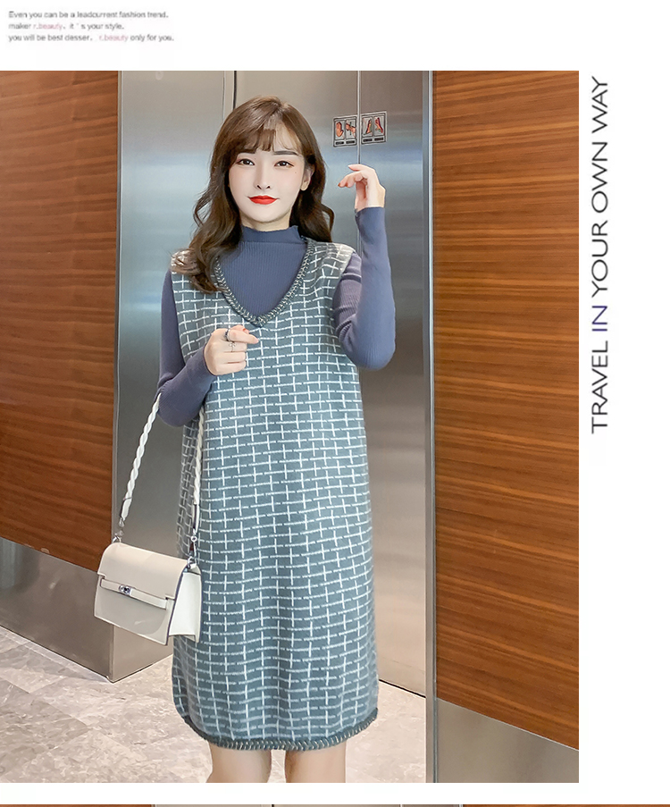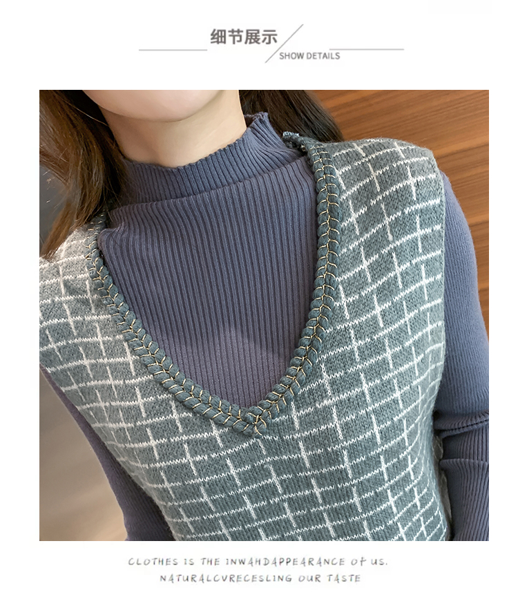 实拍9941#秋冬哺乳毛衣套装时尚高领喂奶打底衫两件套针织马甲潮
