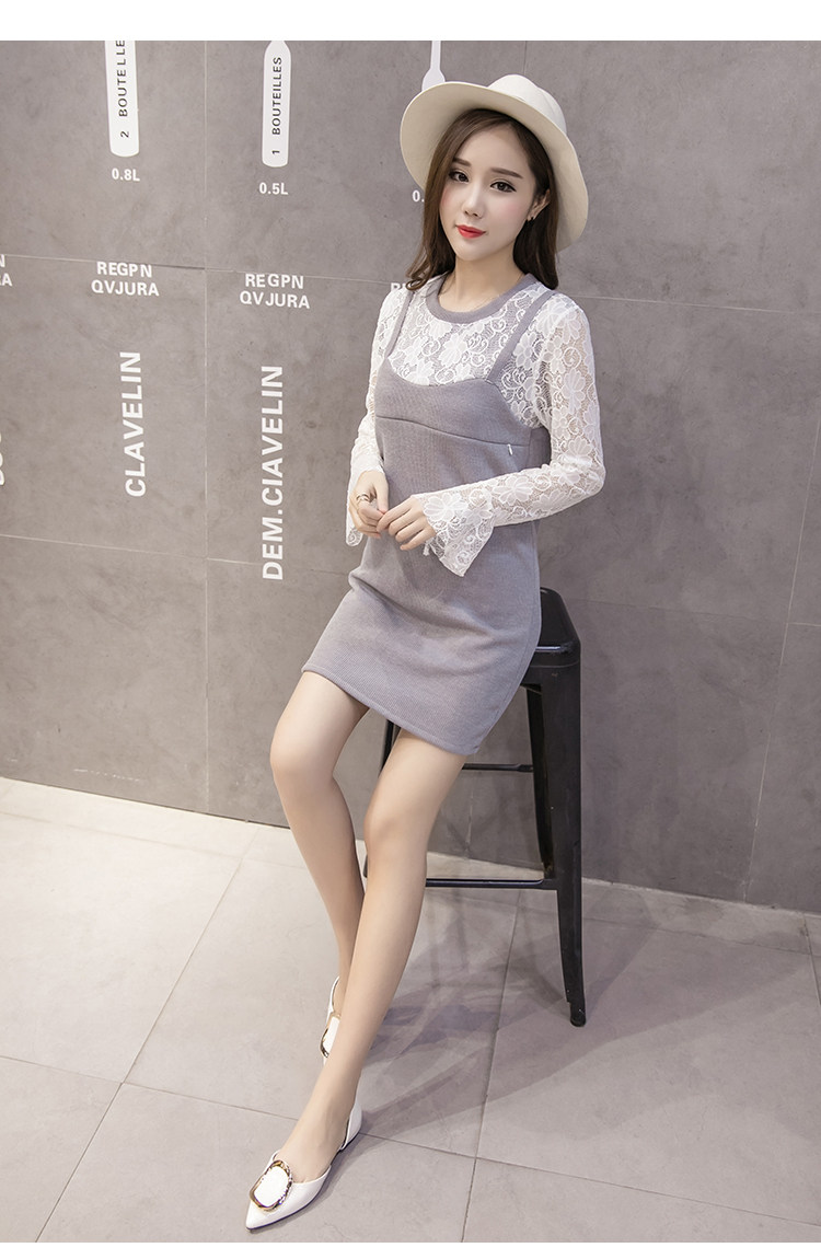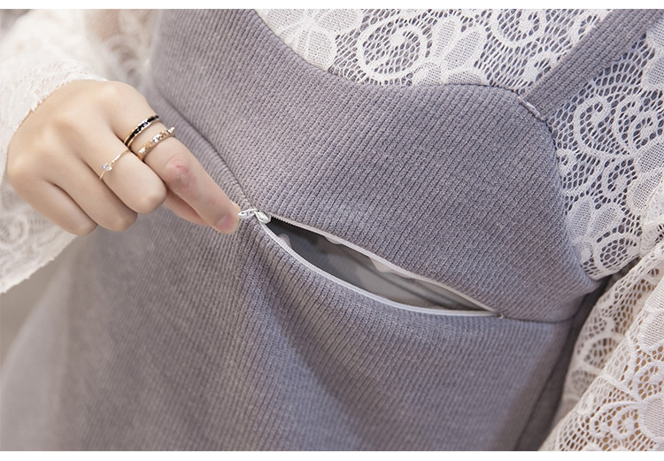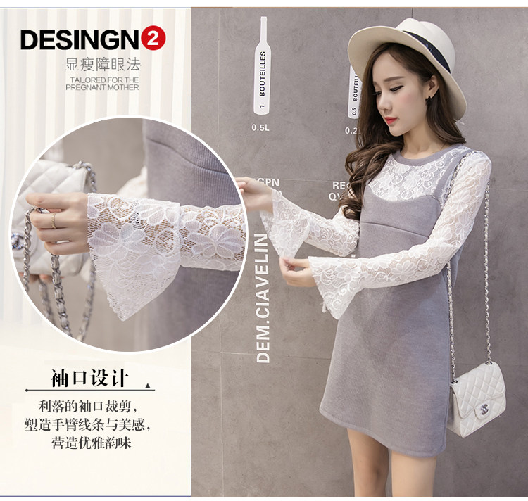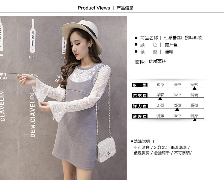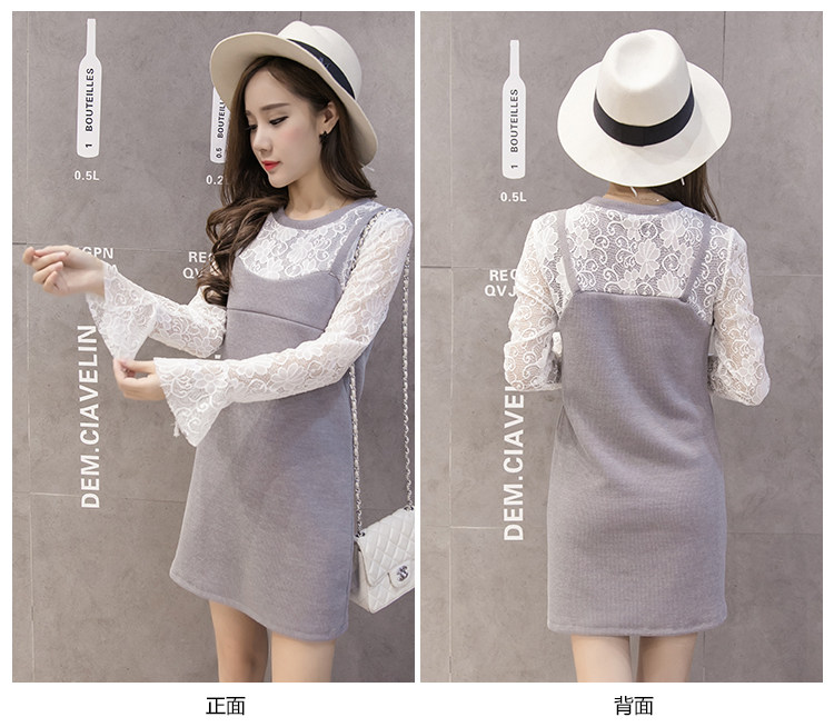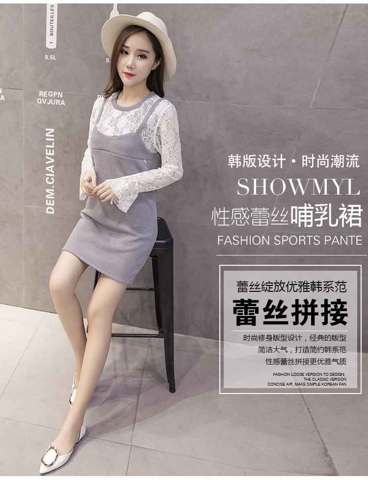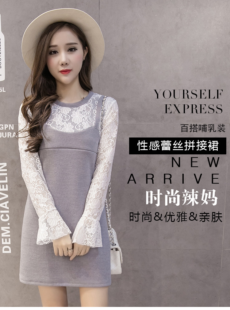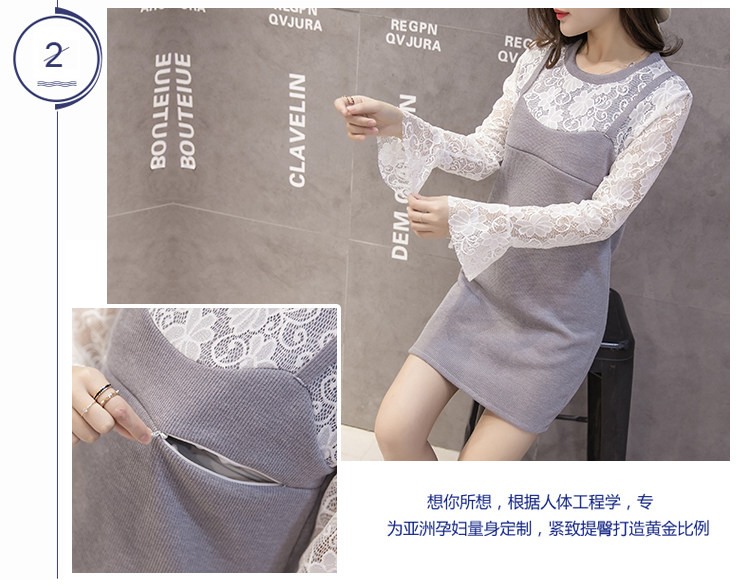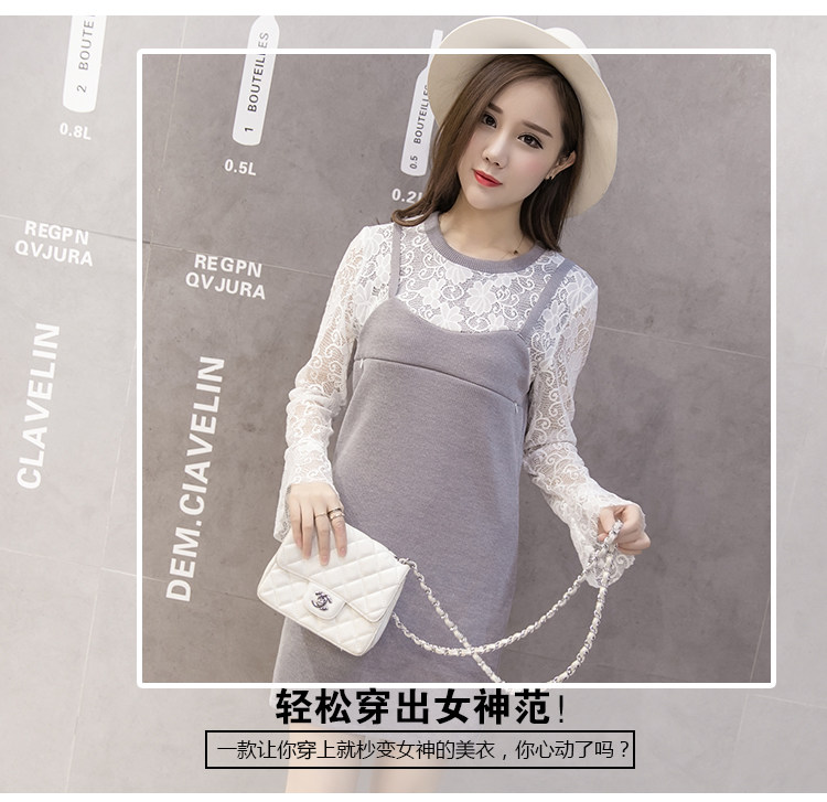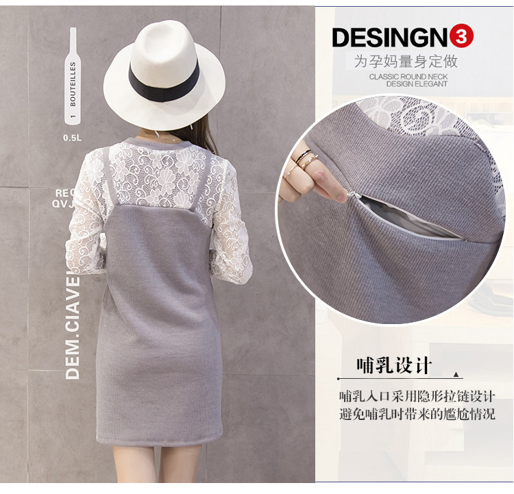 实拍秋冬韩版 假两件孕妇装 外出喂奶衣 哺乳连衣裙