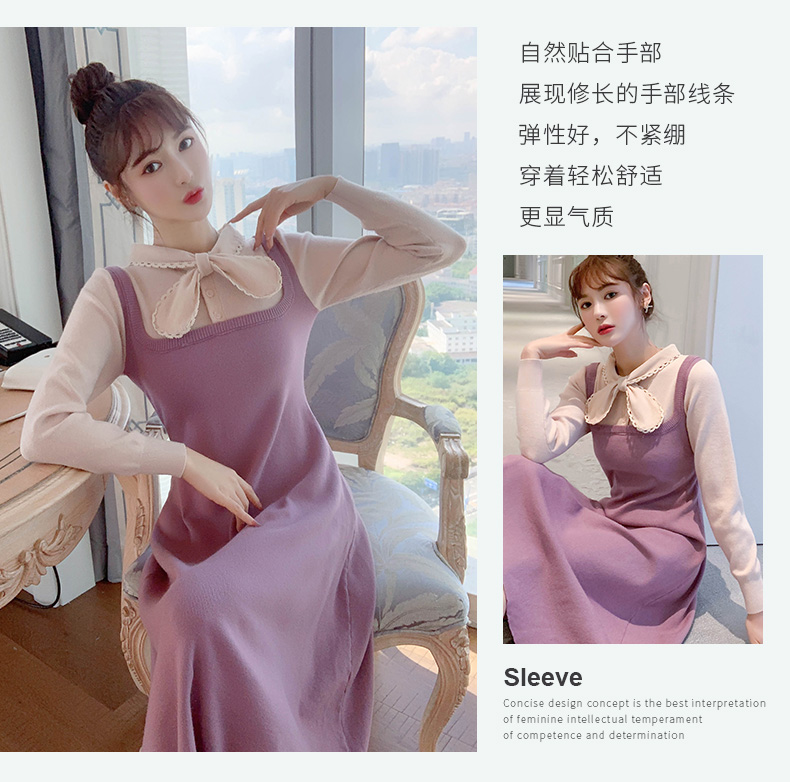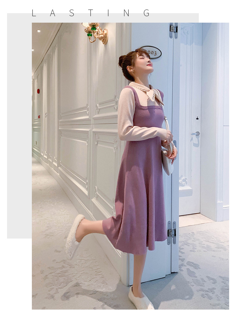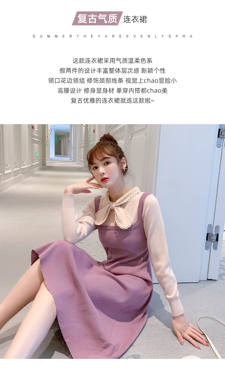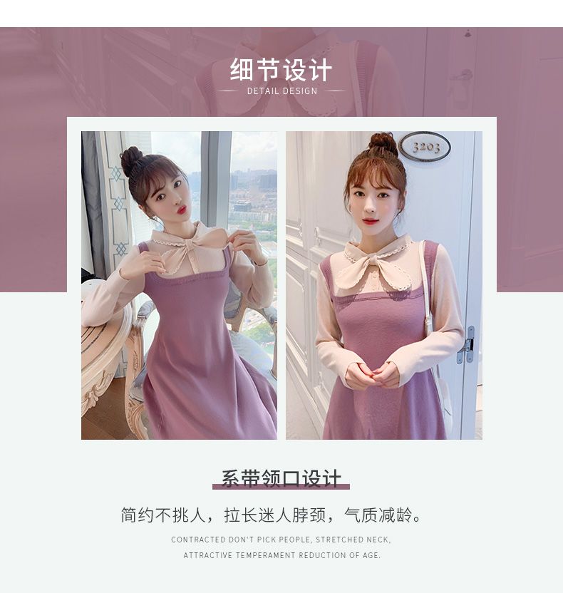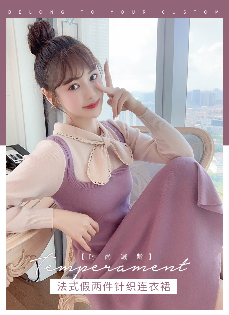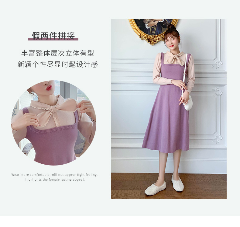 8013#秋冬哺乳毛衣外出甜美假两件辣妈产后喂奶针织打底连衣裙潮