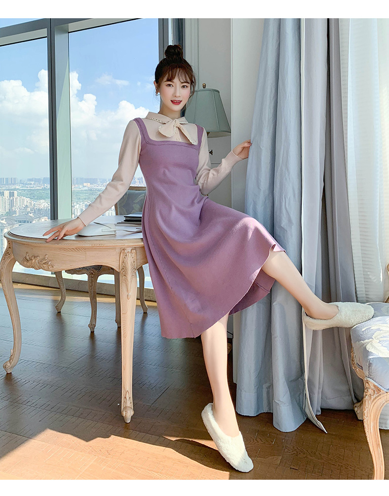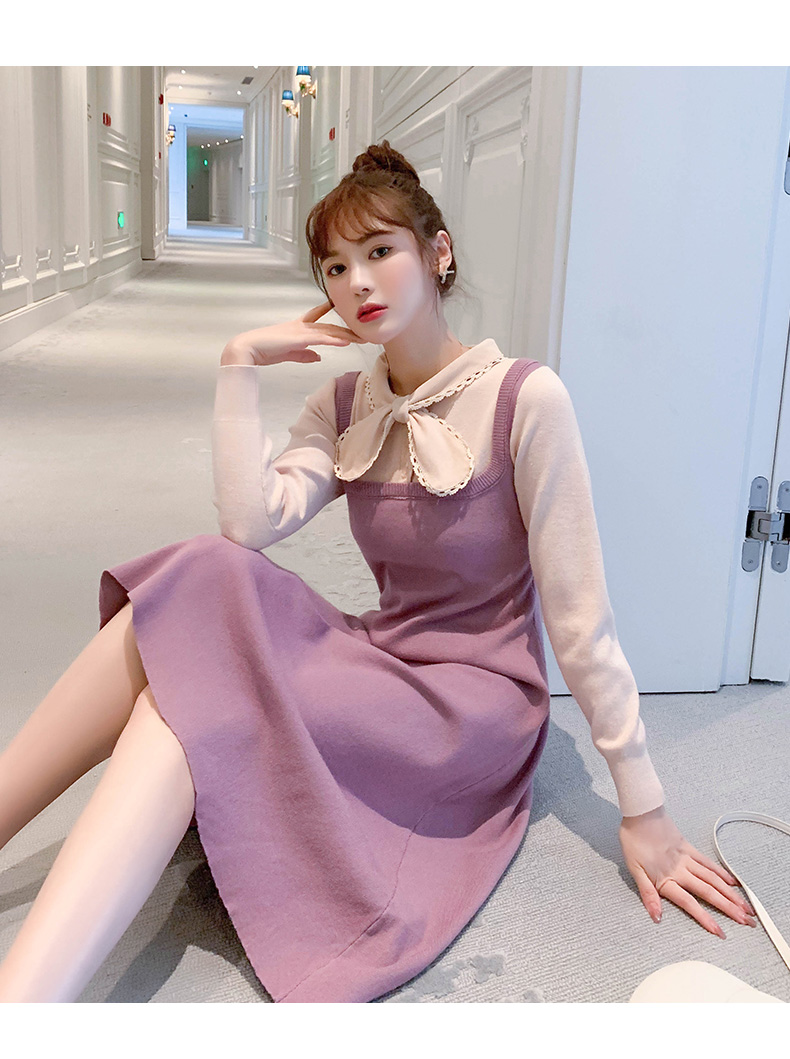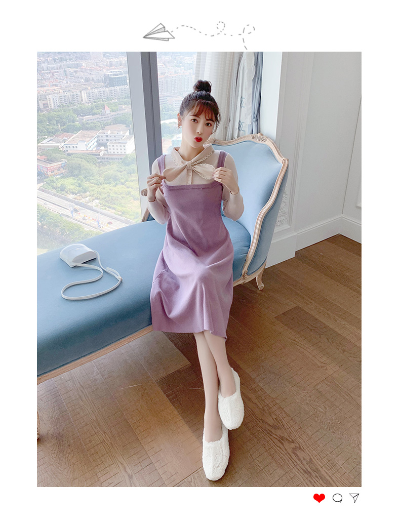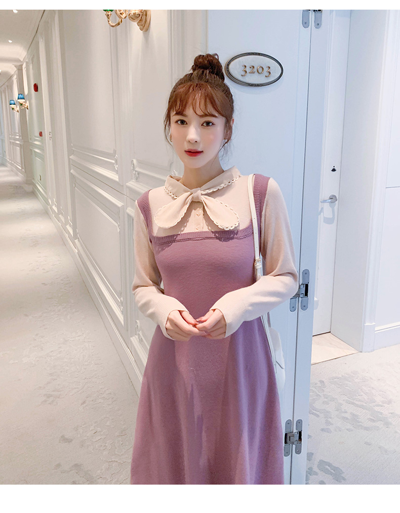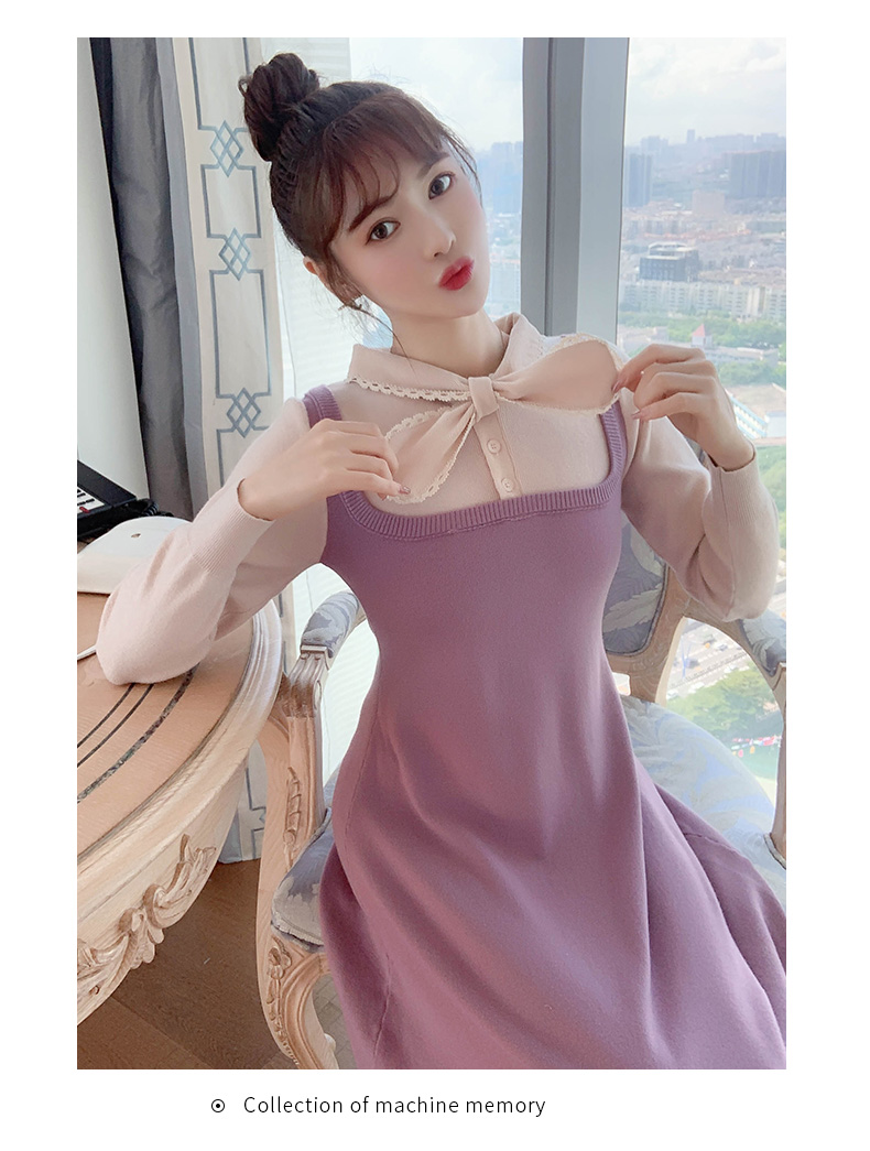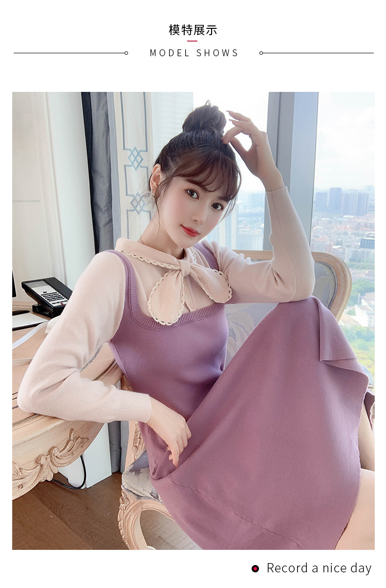 8013#秋冬哺乳毛衣外出甜美假两件辣妈产后喂奶针织打底连衣裙潮