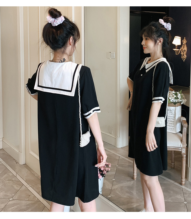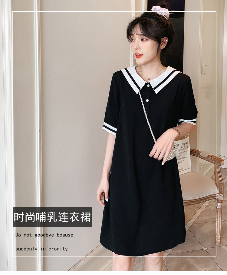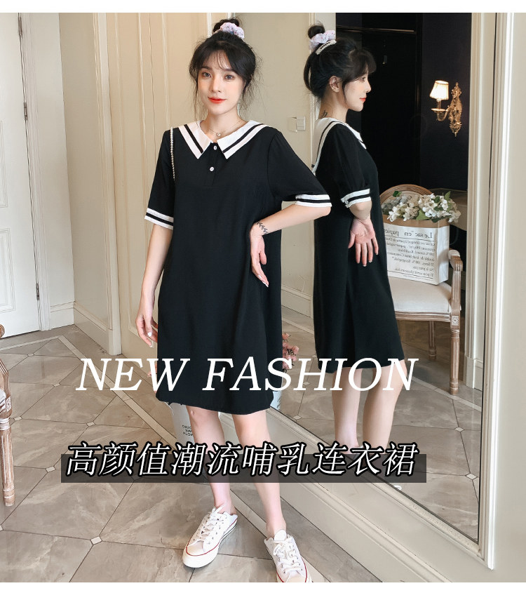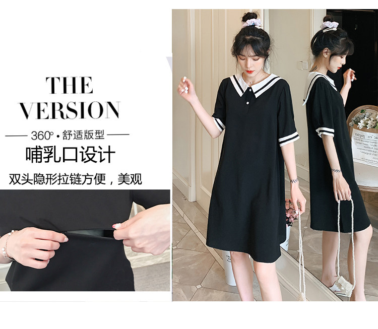 2021夏哺乳连衣裙外出学院风孕妈产后喂奶裙子遮肚显瘦短袖哺乳衣