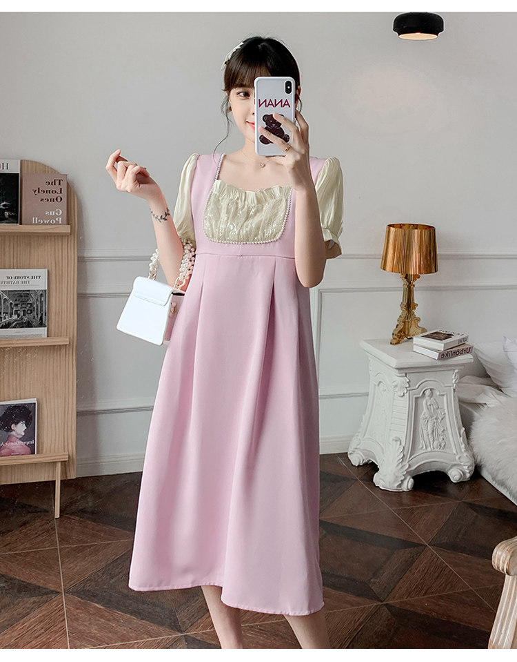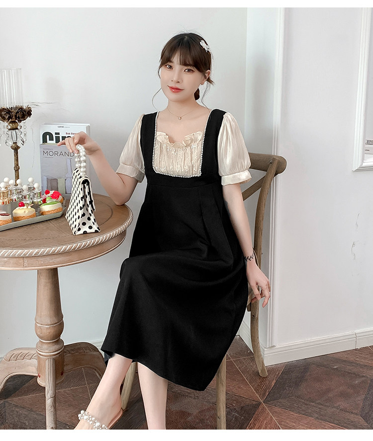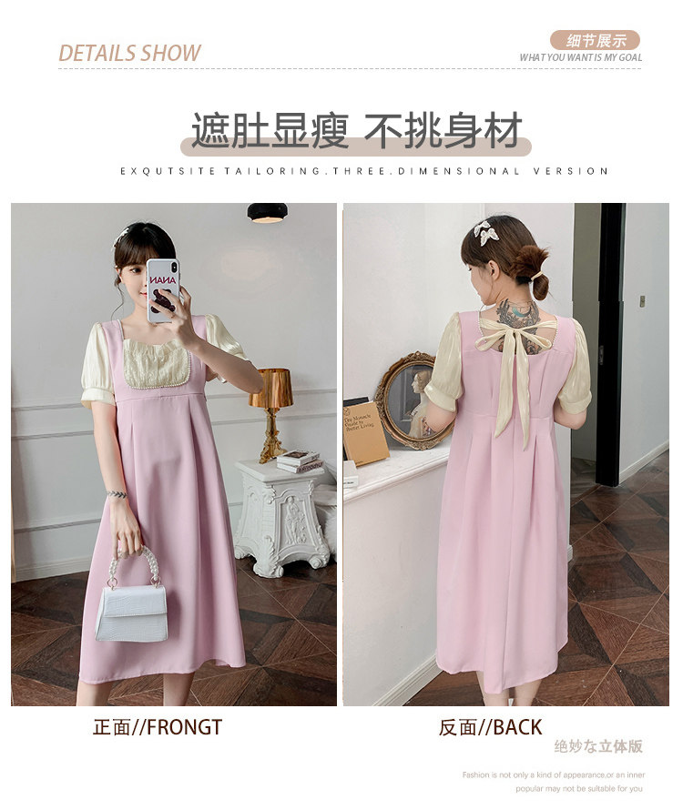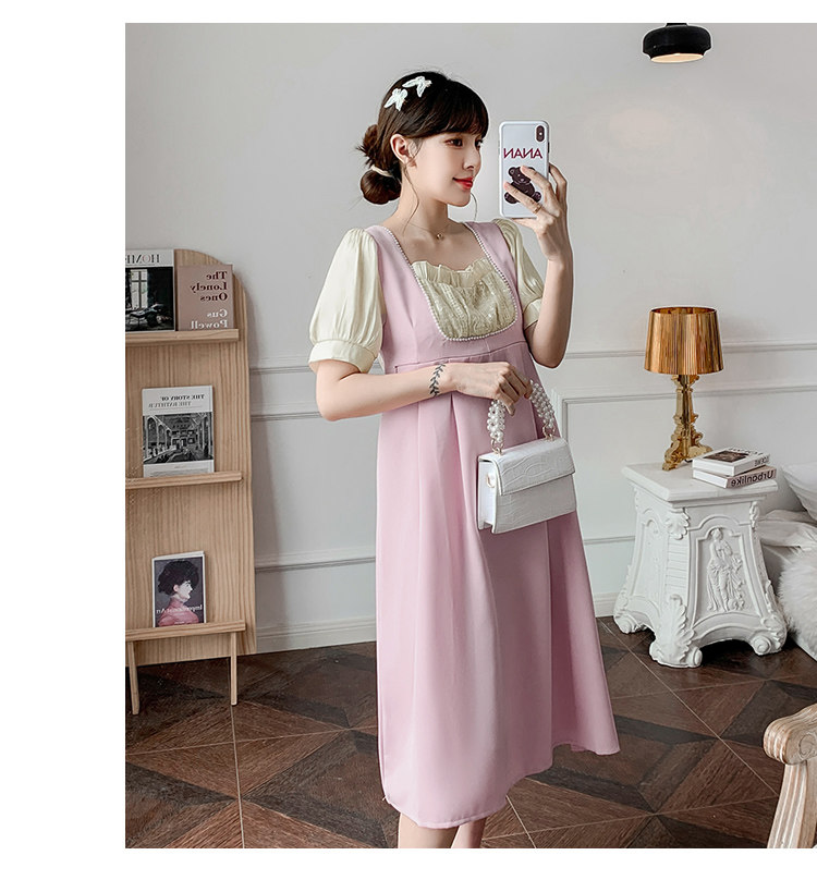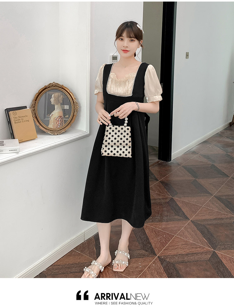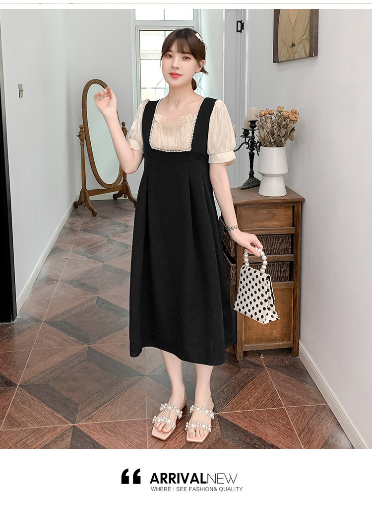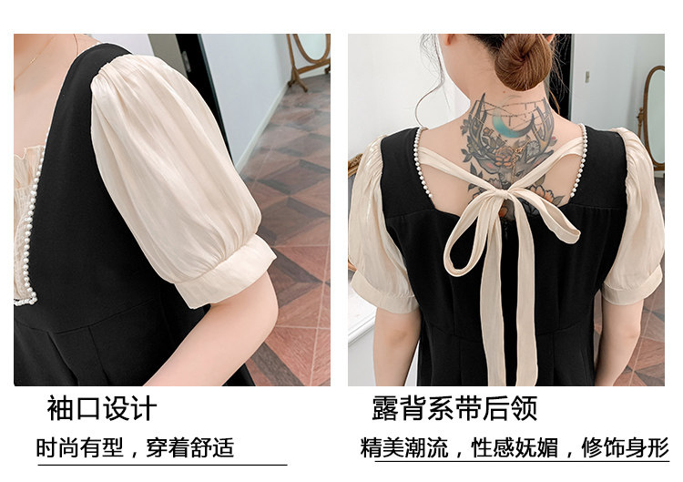 实拍法式方领孕妇连衣裙2021夏产后气质修身短袖小黑裙外出哺乳装