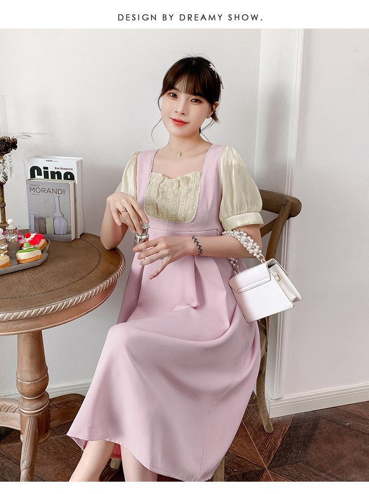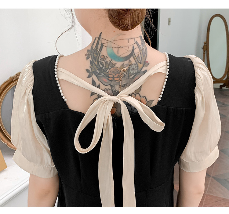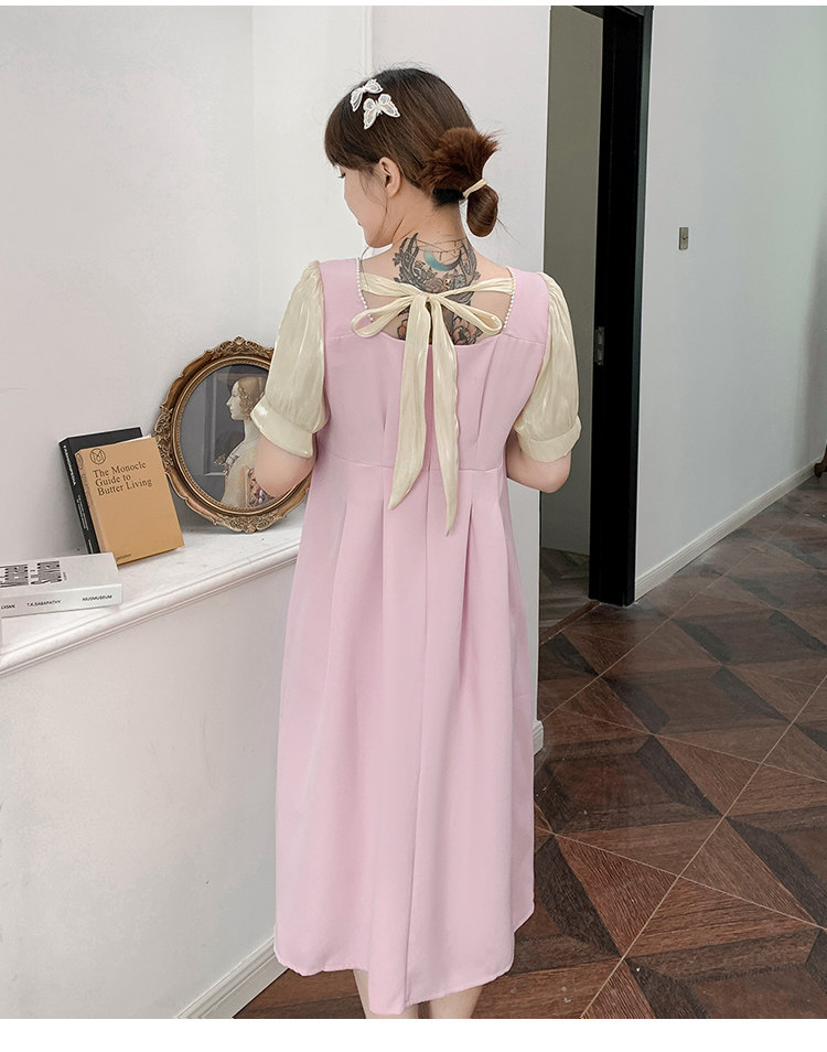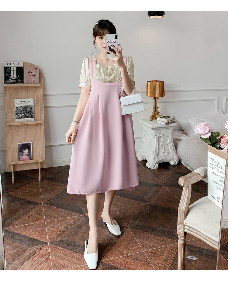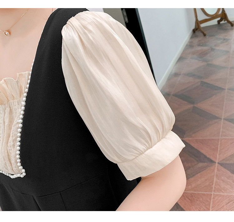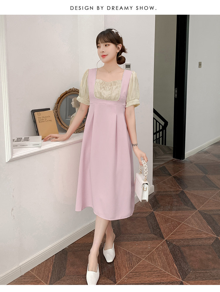 实拍法式方领孕妇连衣裙2021夏产后气质修身短袖小黑裙外出哺乳装