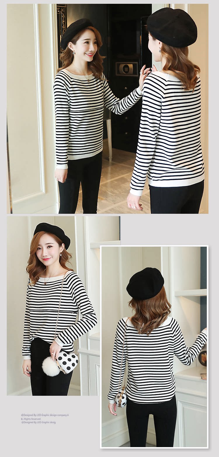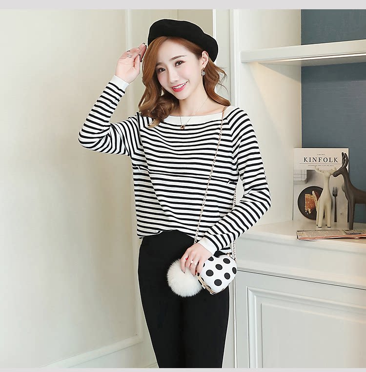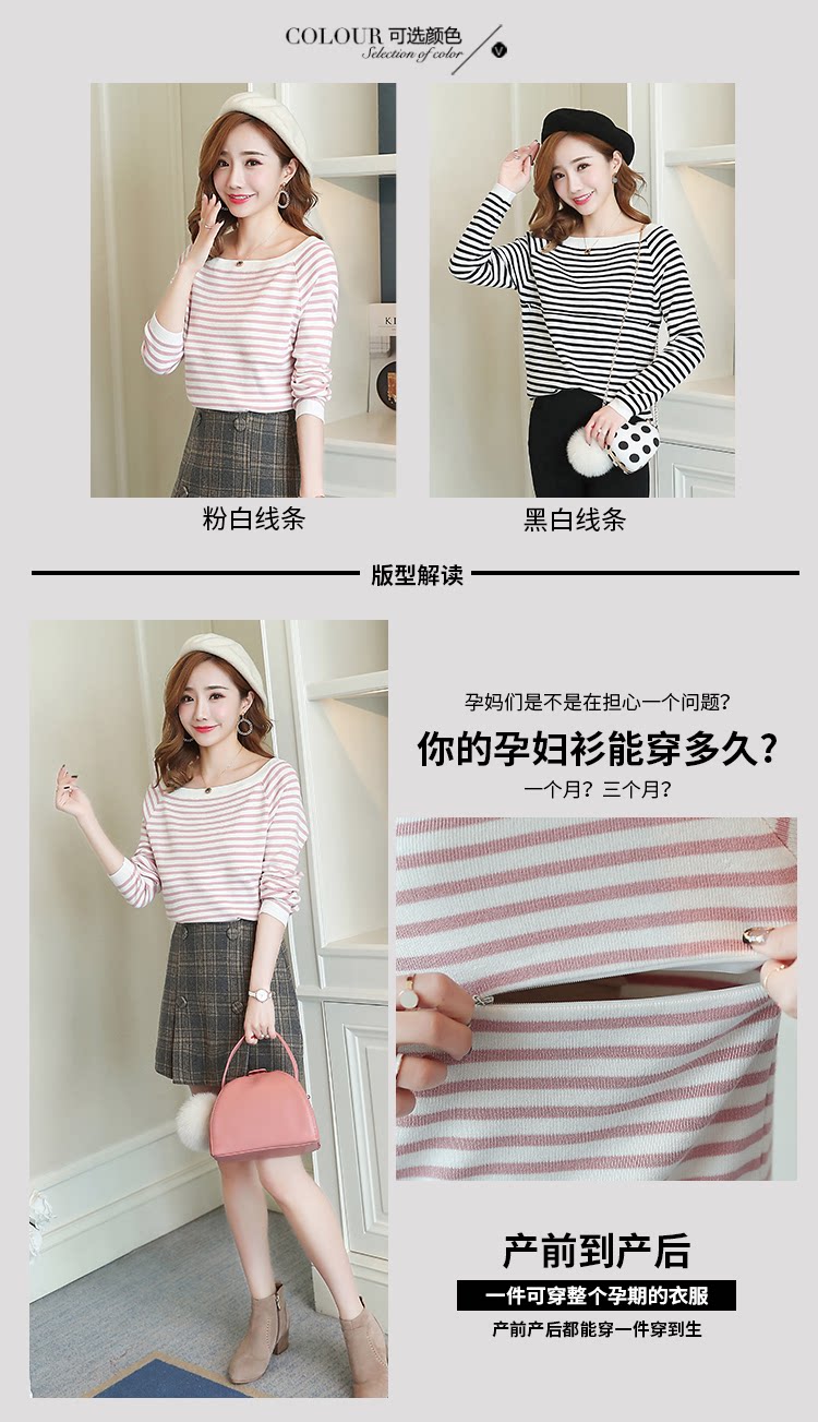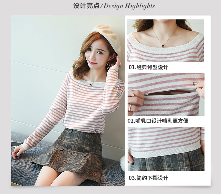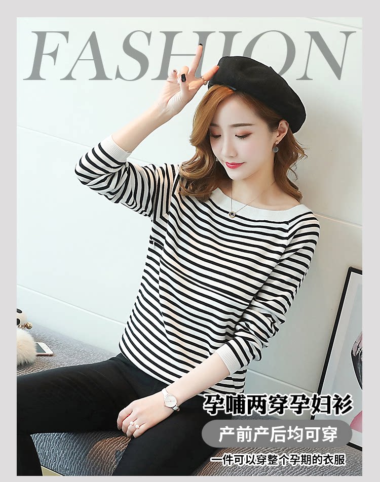 实拍2020孕妇装毛衣套头女条纹修身长袖打底外出哺乳t恤衫上衣服