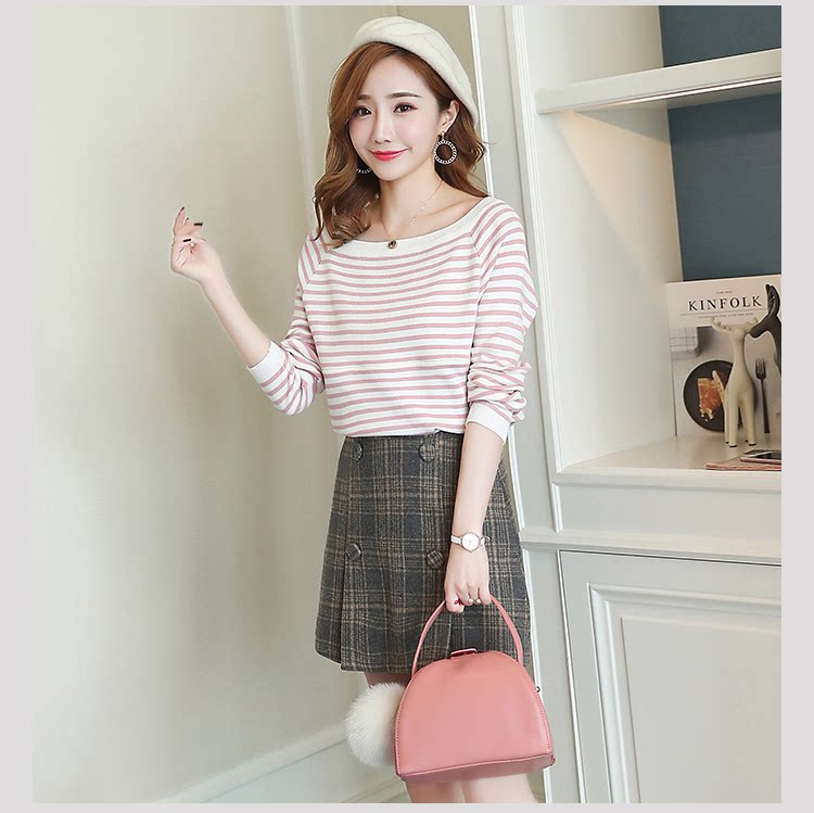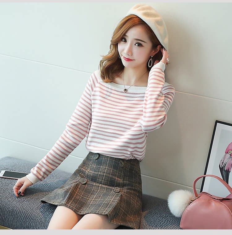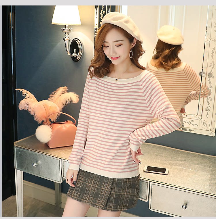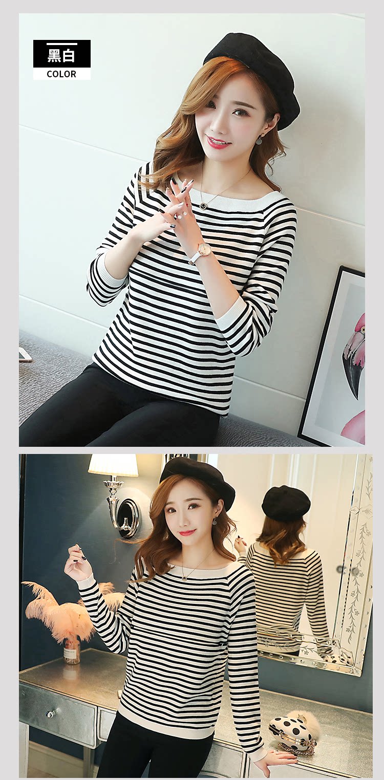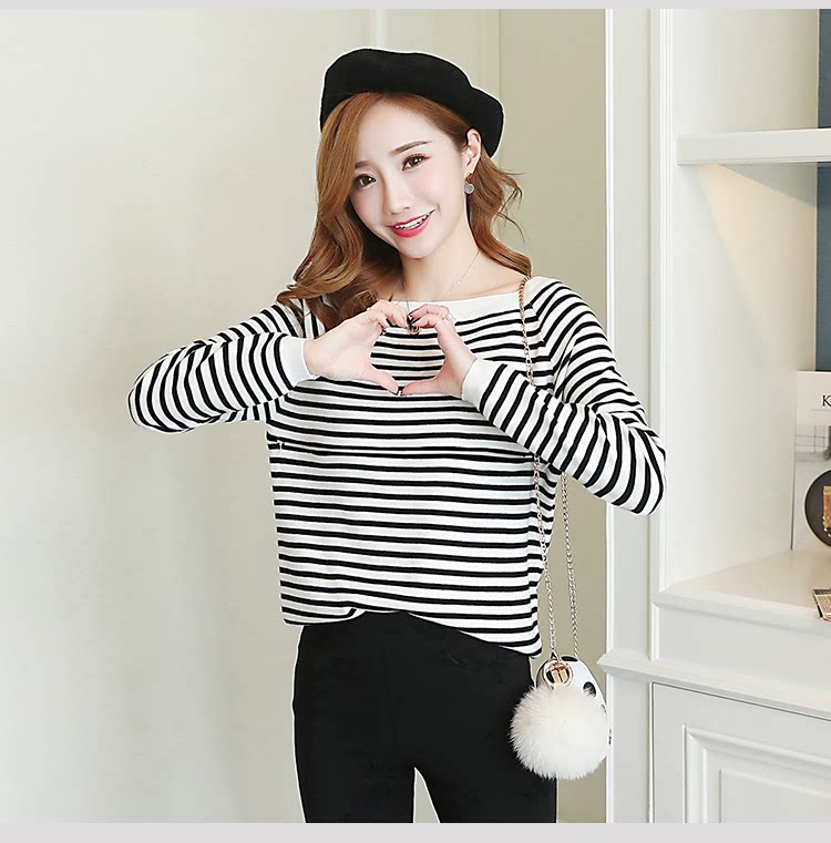 实拍2020孕妇装毛衣套头女条纹修身长袖打底外出哺乳t恤衫上衣服