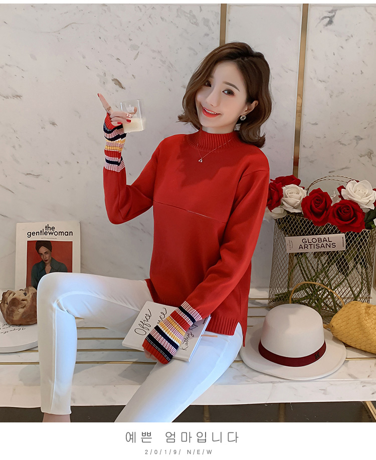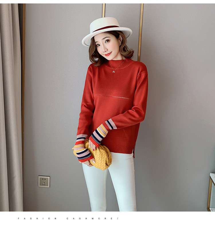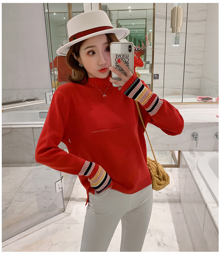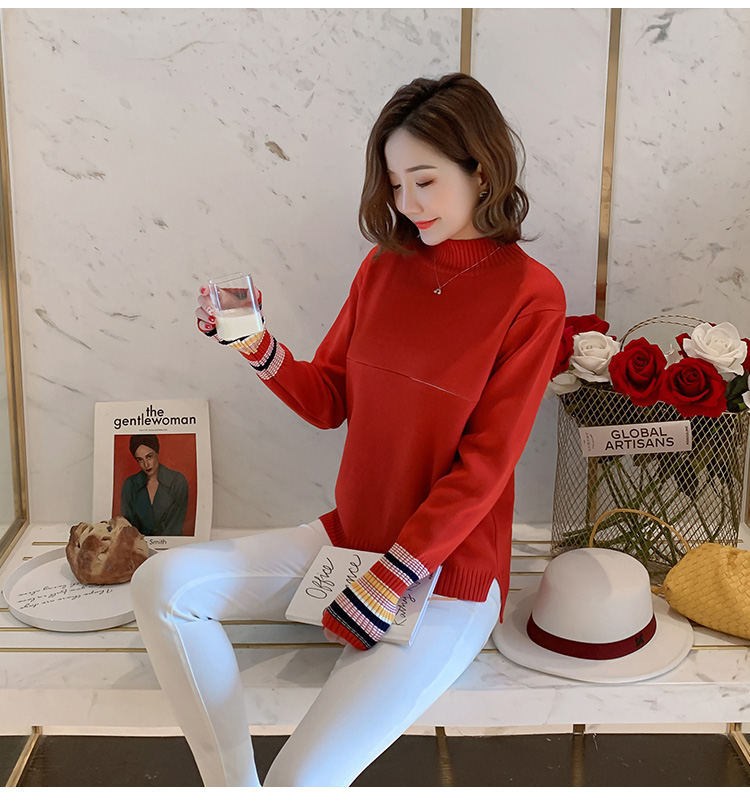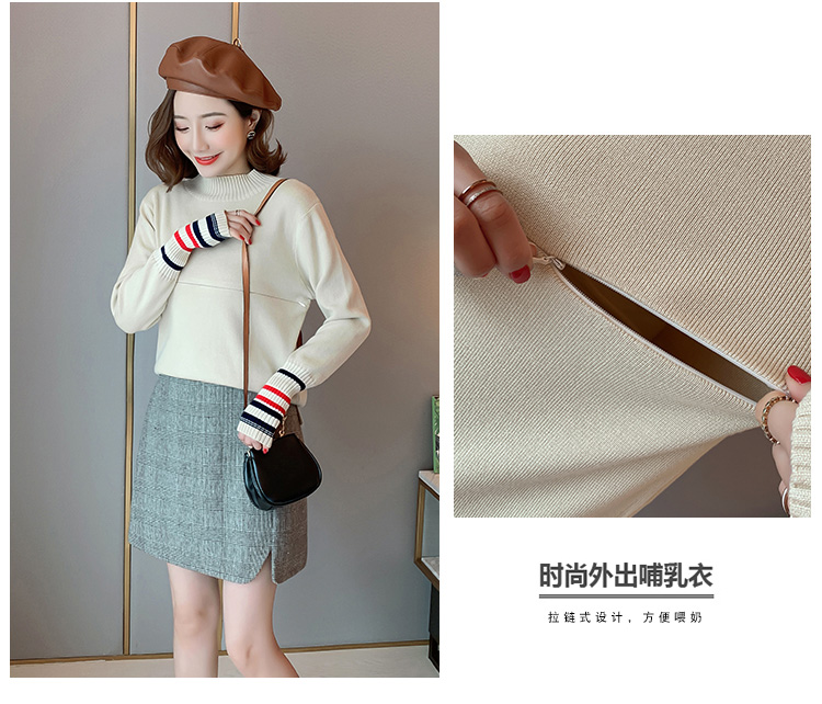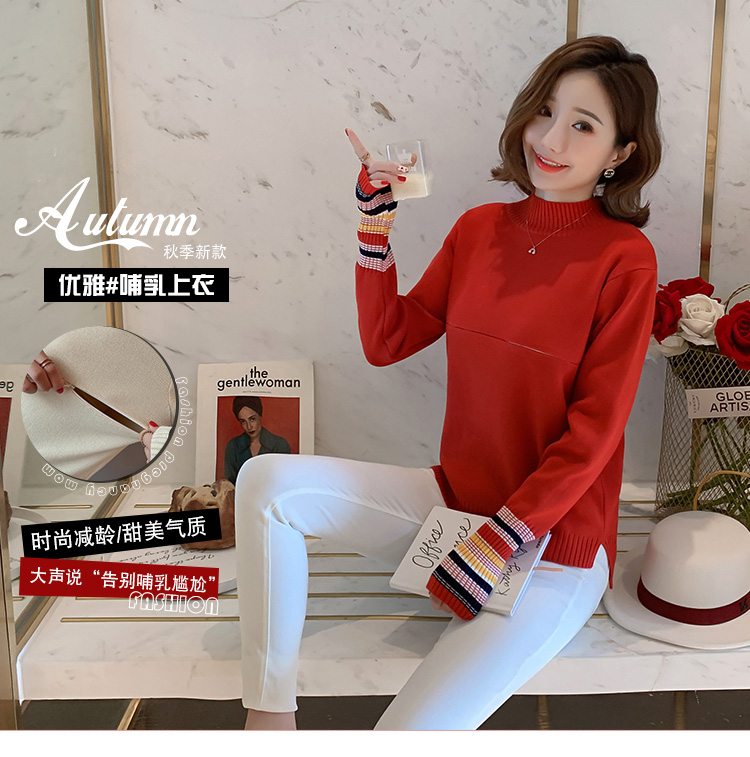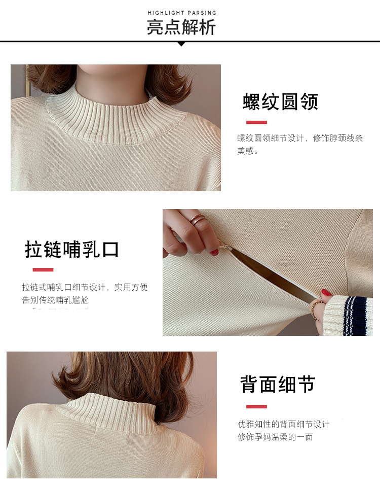 实拍9902#秋冬哺乳毛衣时尚宽松显瘦打底针织衫辣妈产后喂奶上衣
