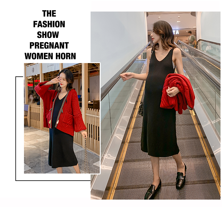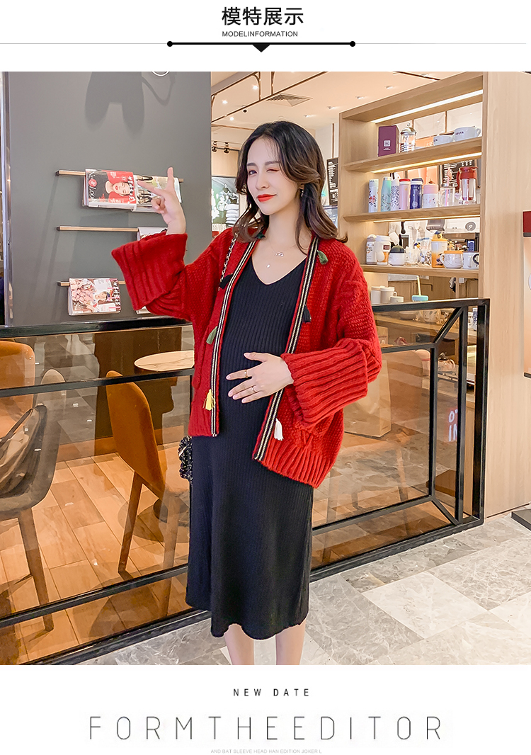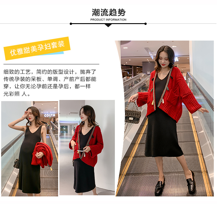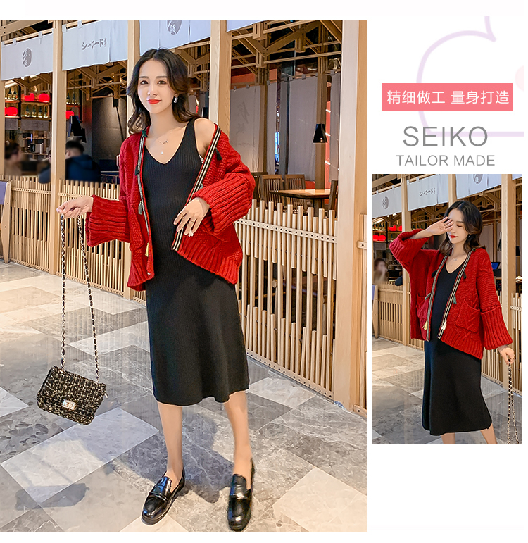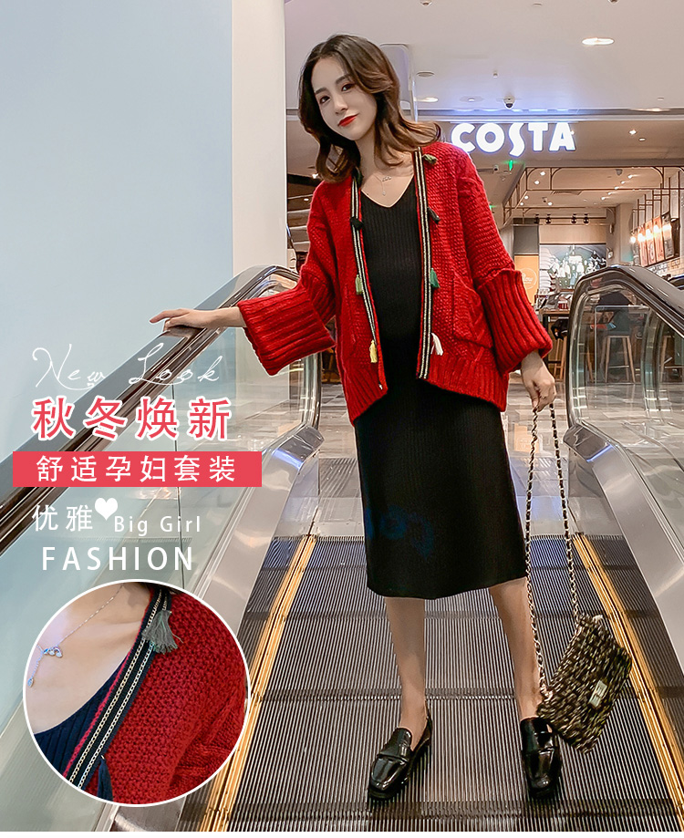 实拍1938#孕妇装秋冬套装网红毛衣开衫外套洋气针织连衣裙两件套