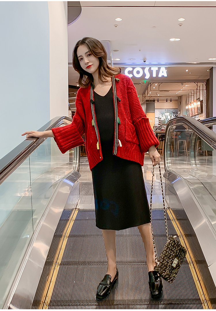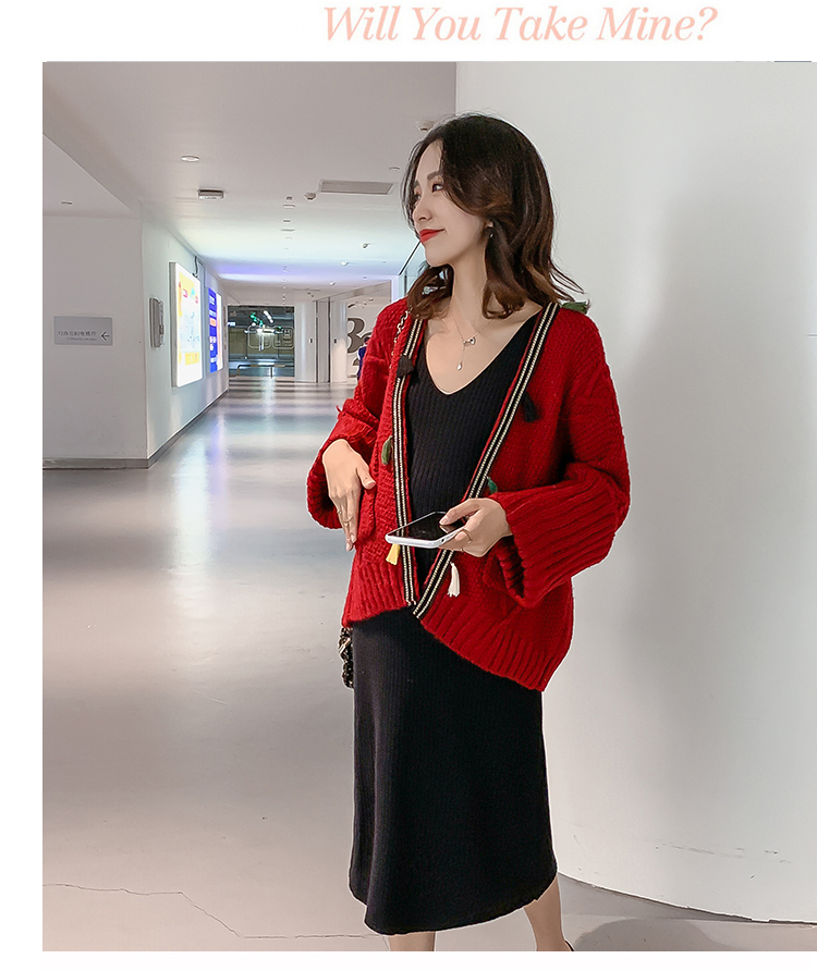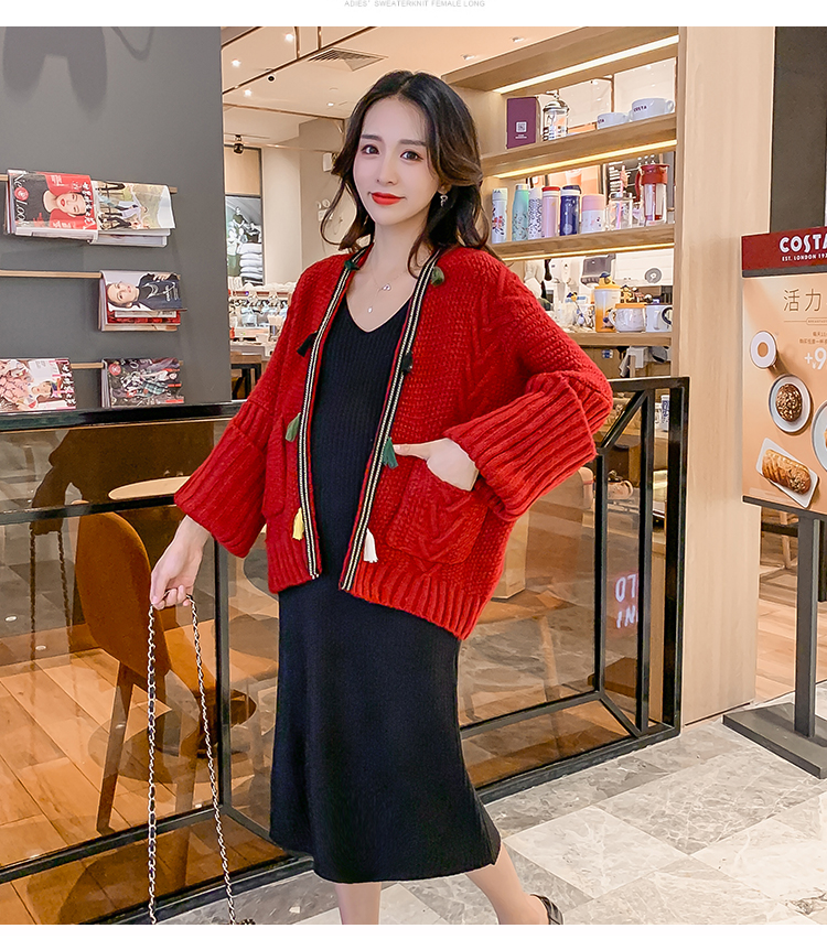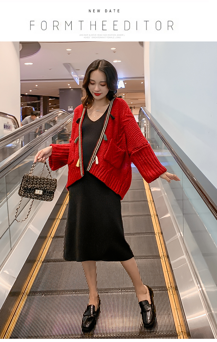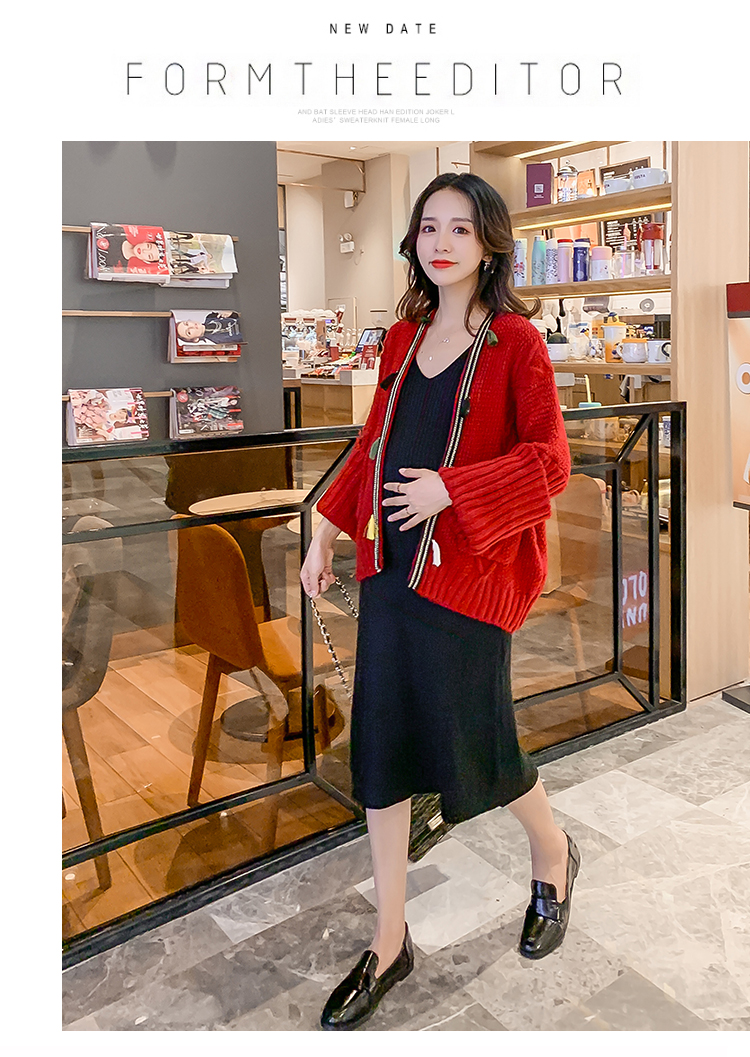 实拍1938#孕妇装秋冬套装网红毛衣开衫外套洋气针织连衣裙两件套