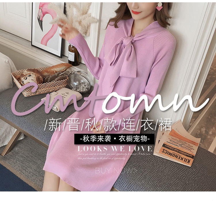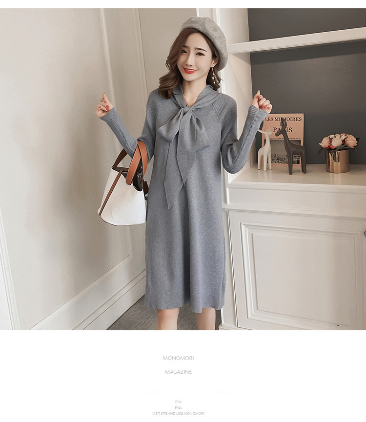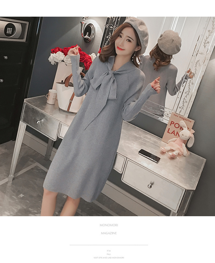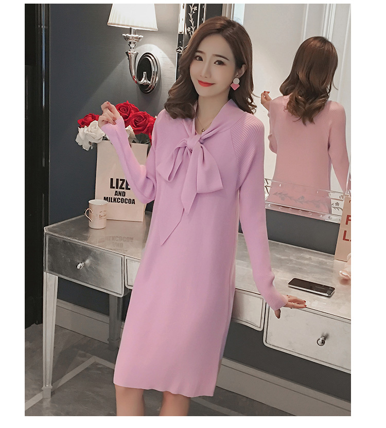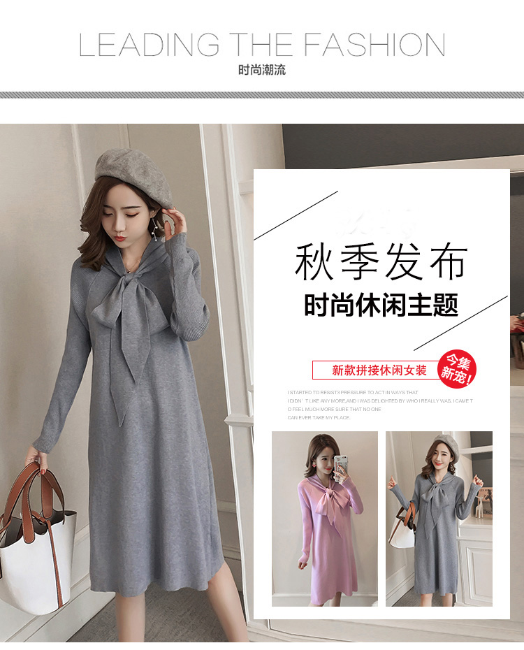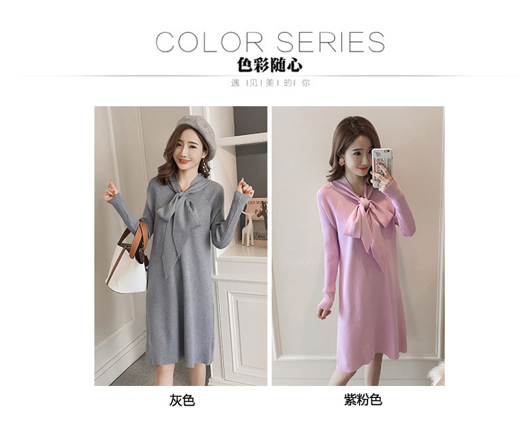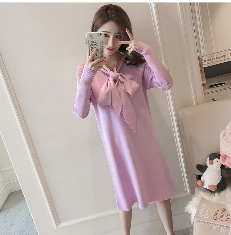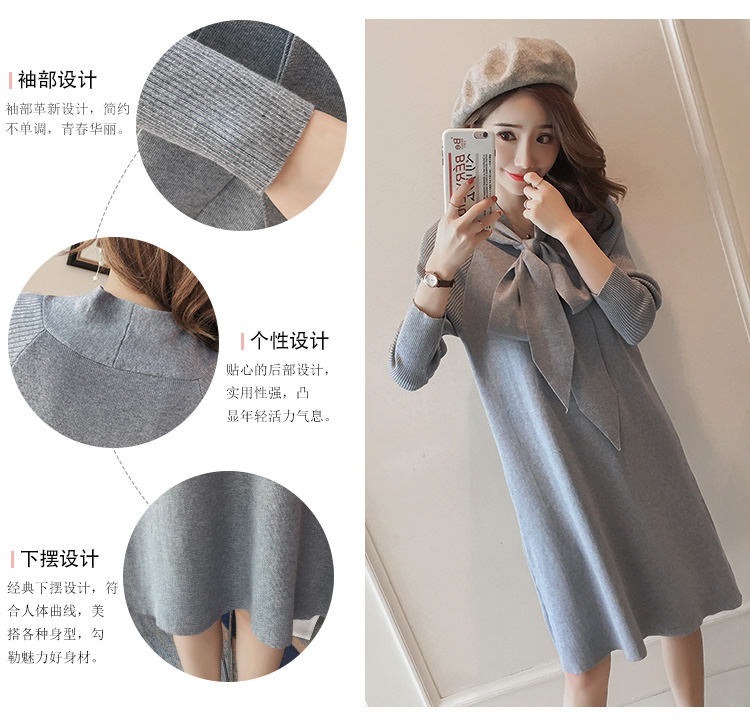 实拍7768#孕妇装毛衣甜美蝴蝶结针织连衣裙潮妈怀孕期显瘦打底衫