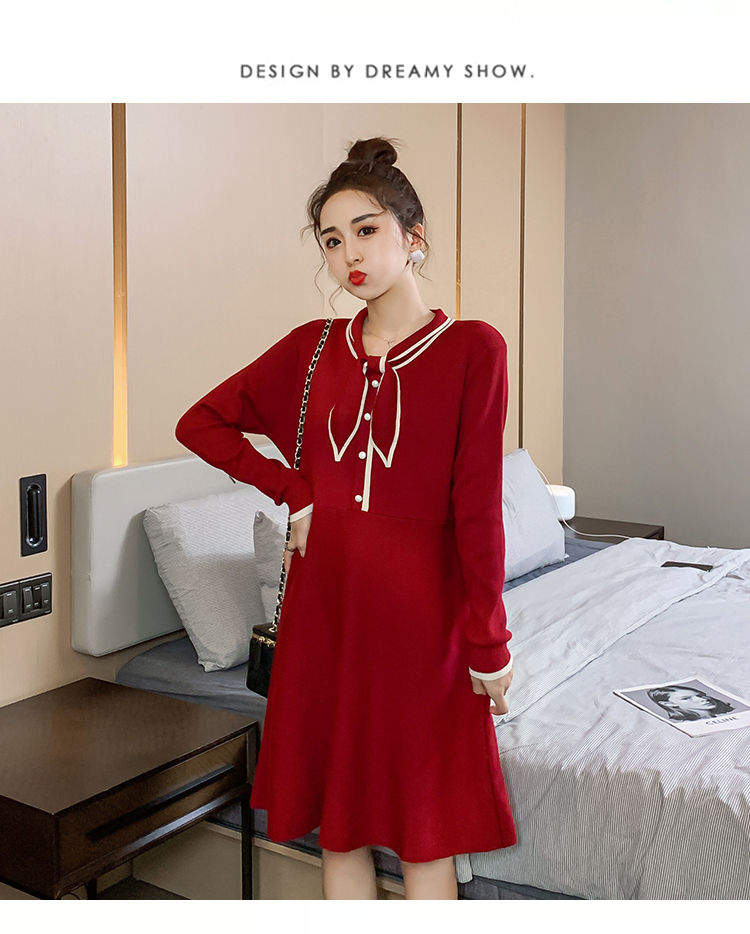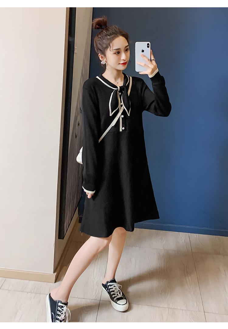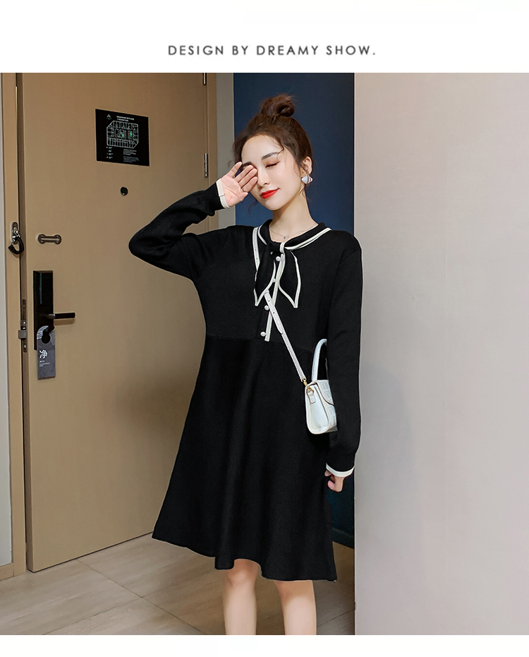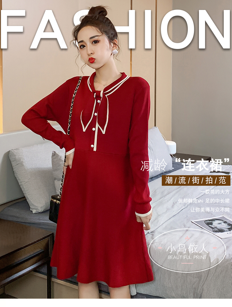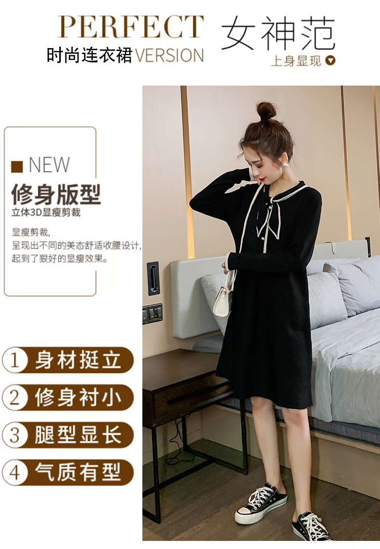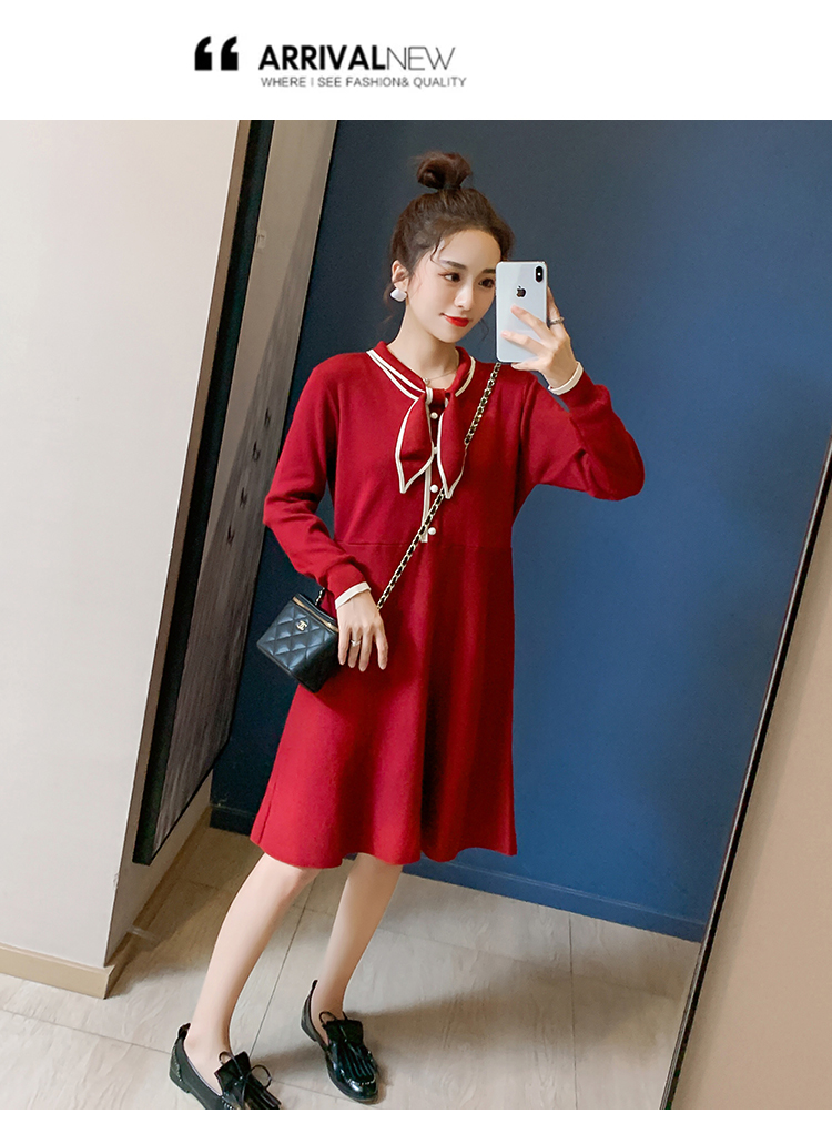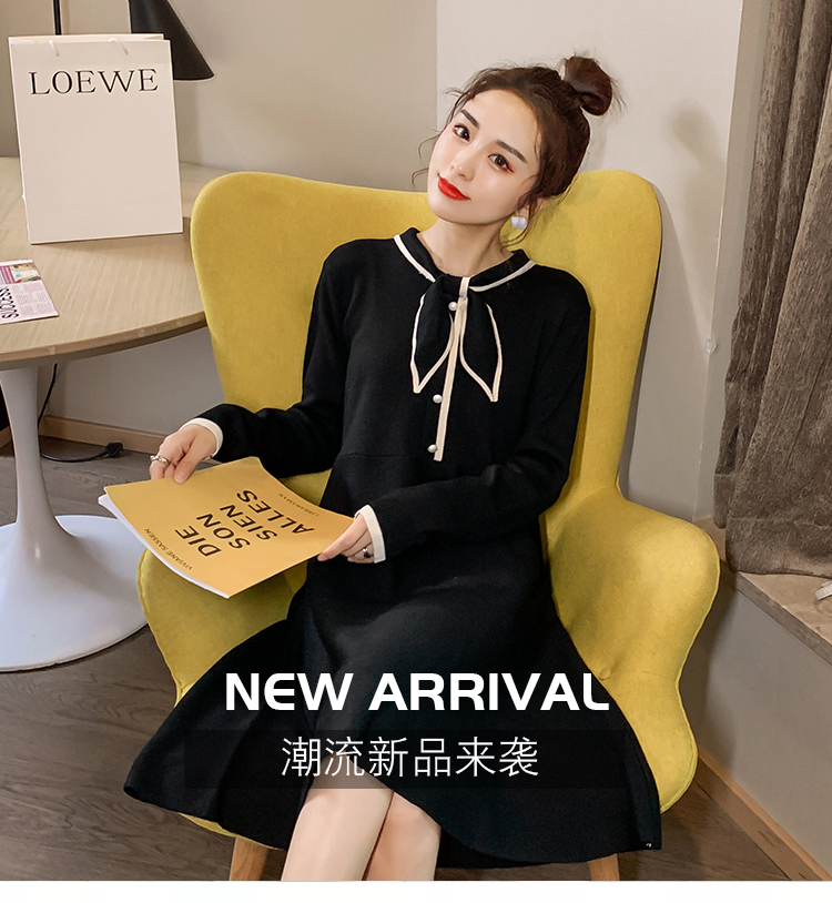 实拍6007#孕妇秋冬毛衣蝴蝶结针织连衣裙潮妈洋气收腰显瘦打底衫