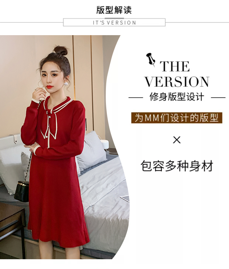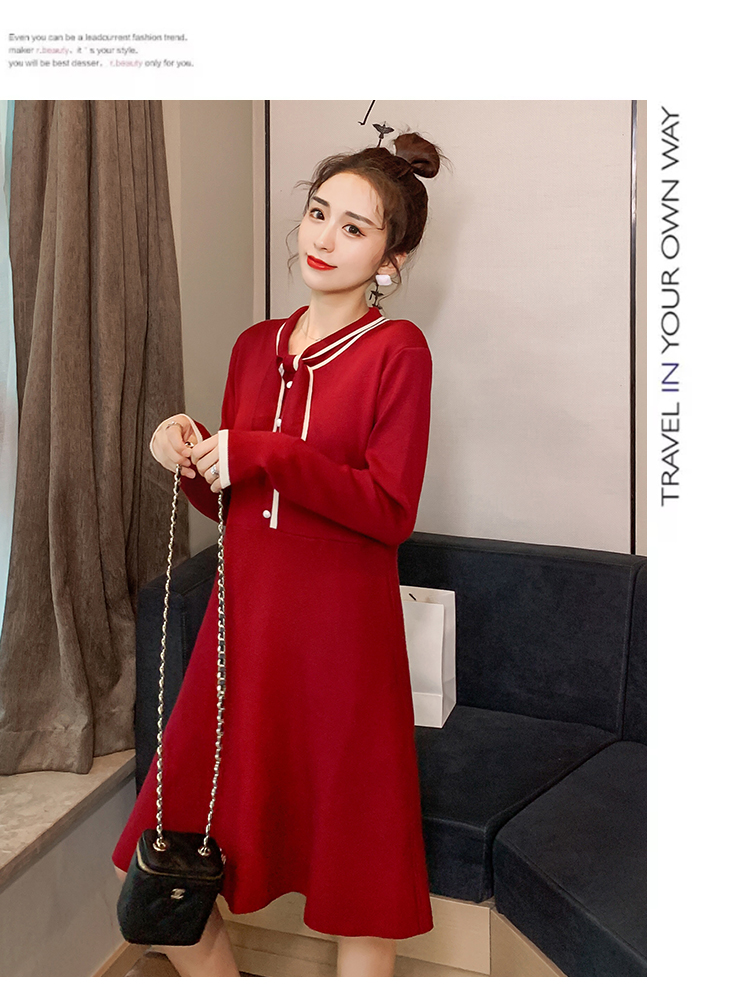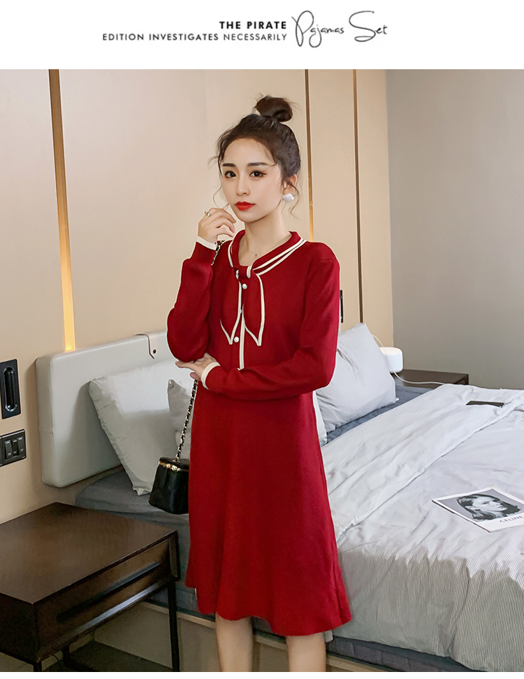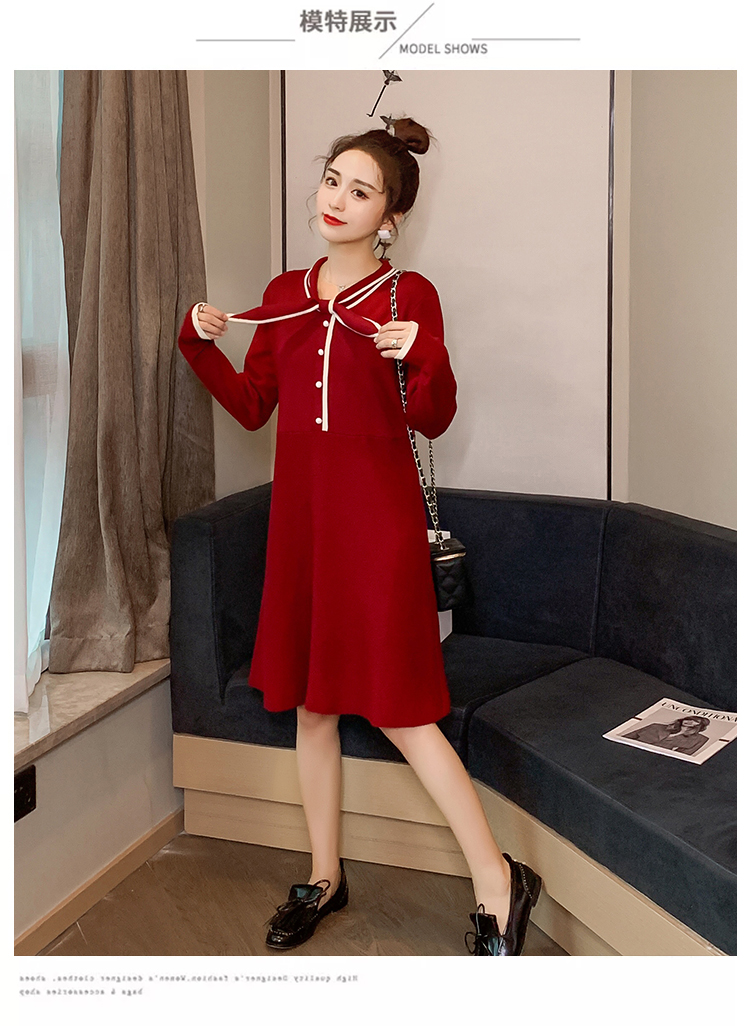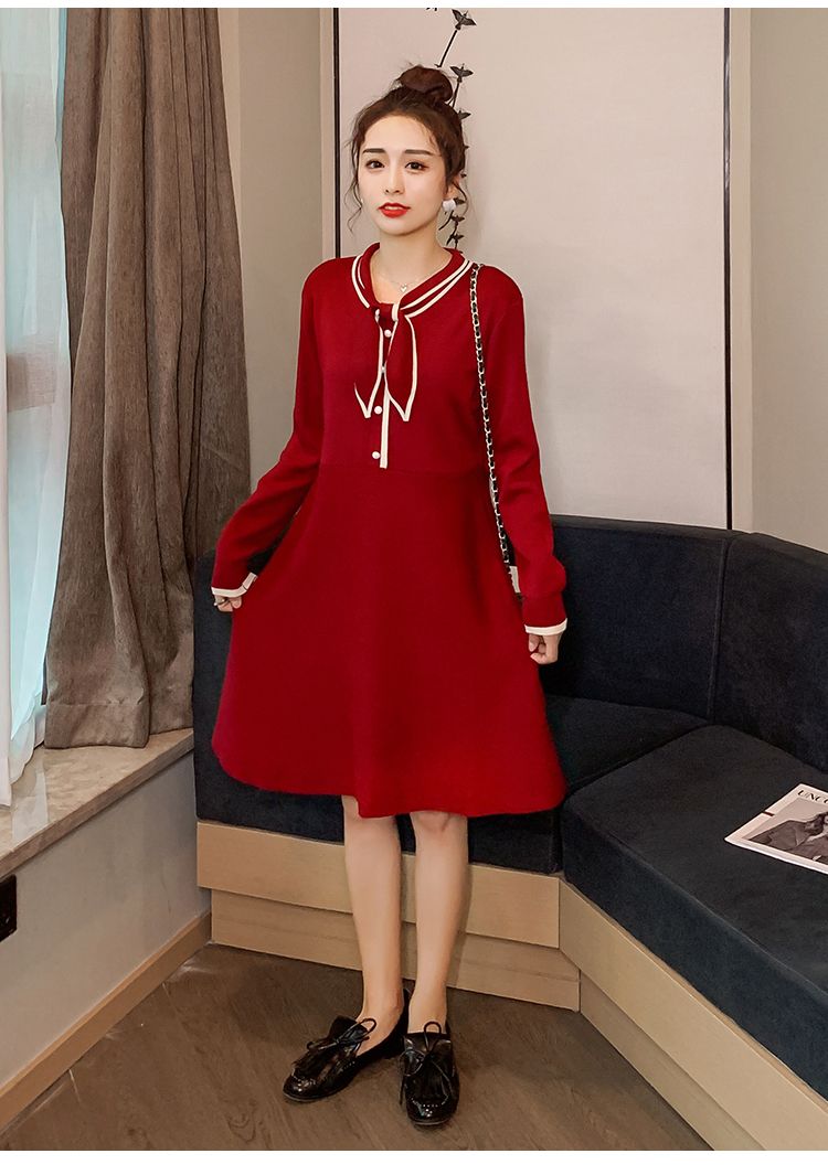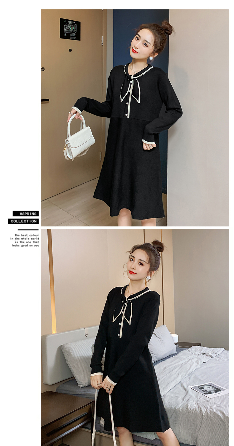 实拍6007#孕妇秋冬毛衣蝴蝶结针织连衣裙潮妈洋气收腰显瘦打底衫