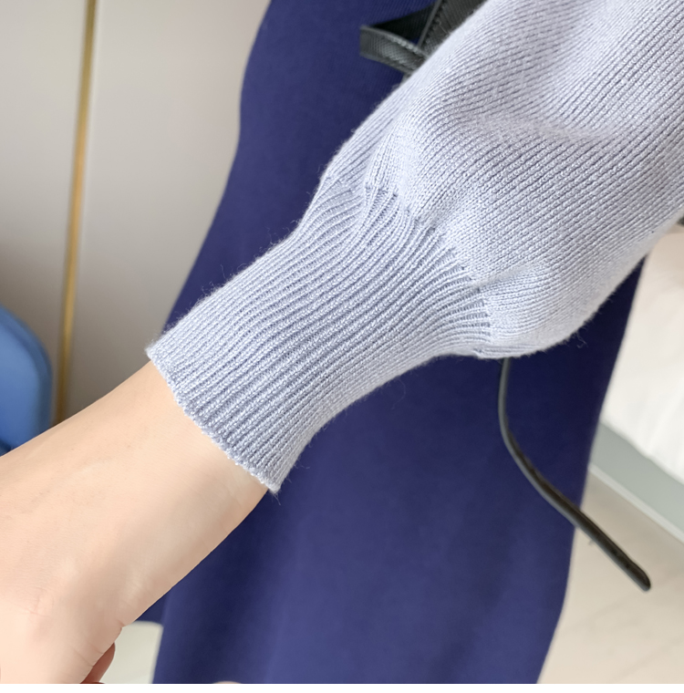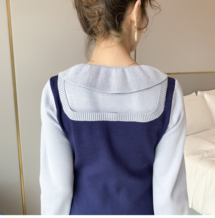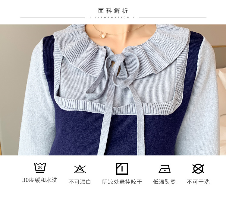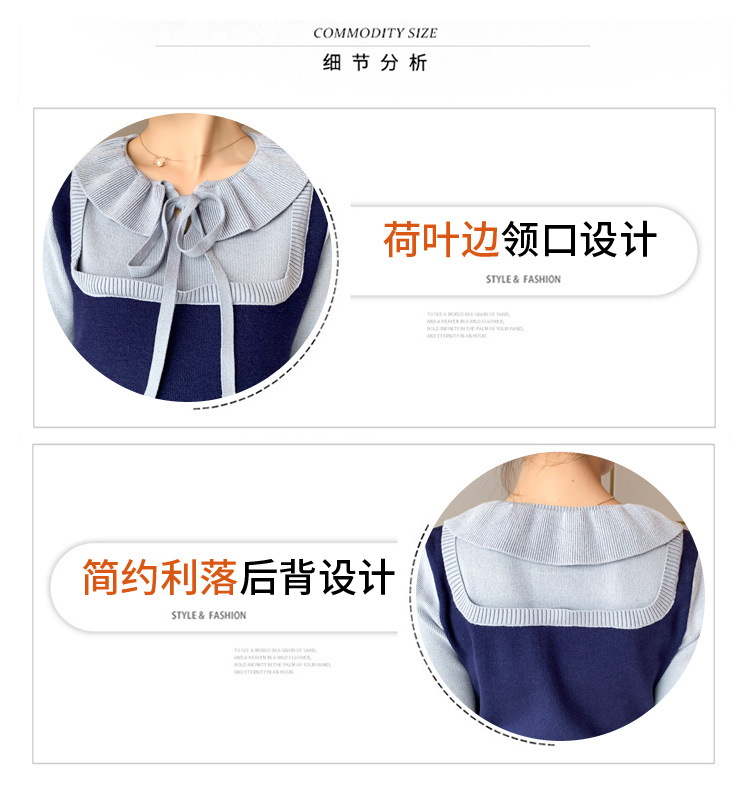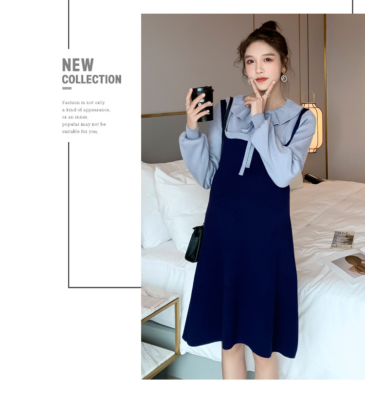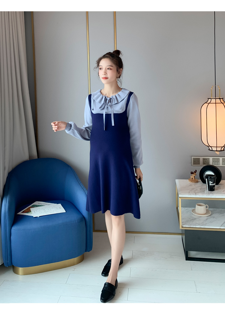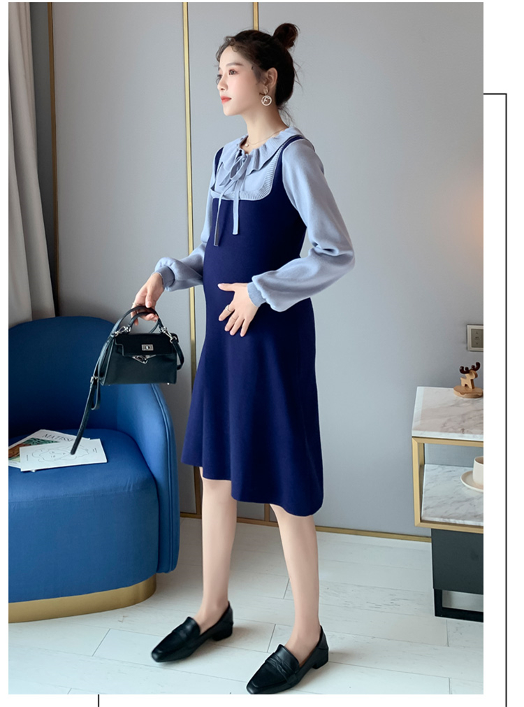 实拍现货2020秋冬新款孕妇法式小众木耳边系带胖mm针织拼接假两件大码连衣裙