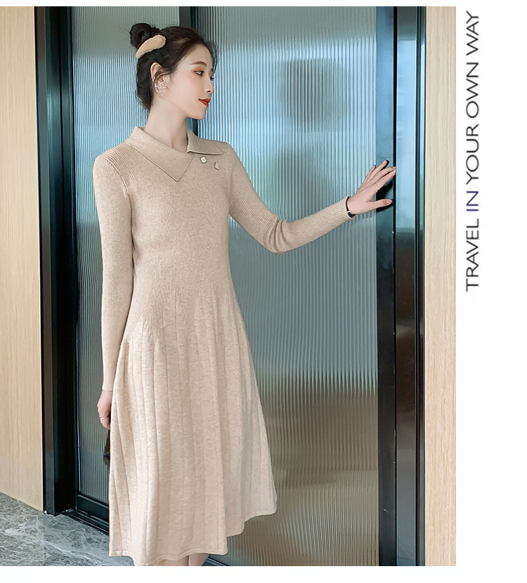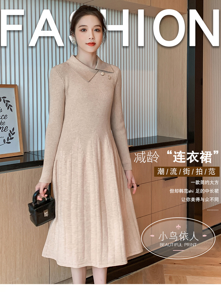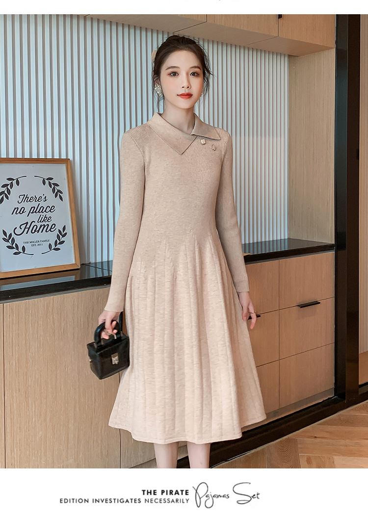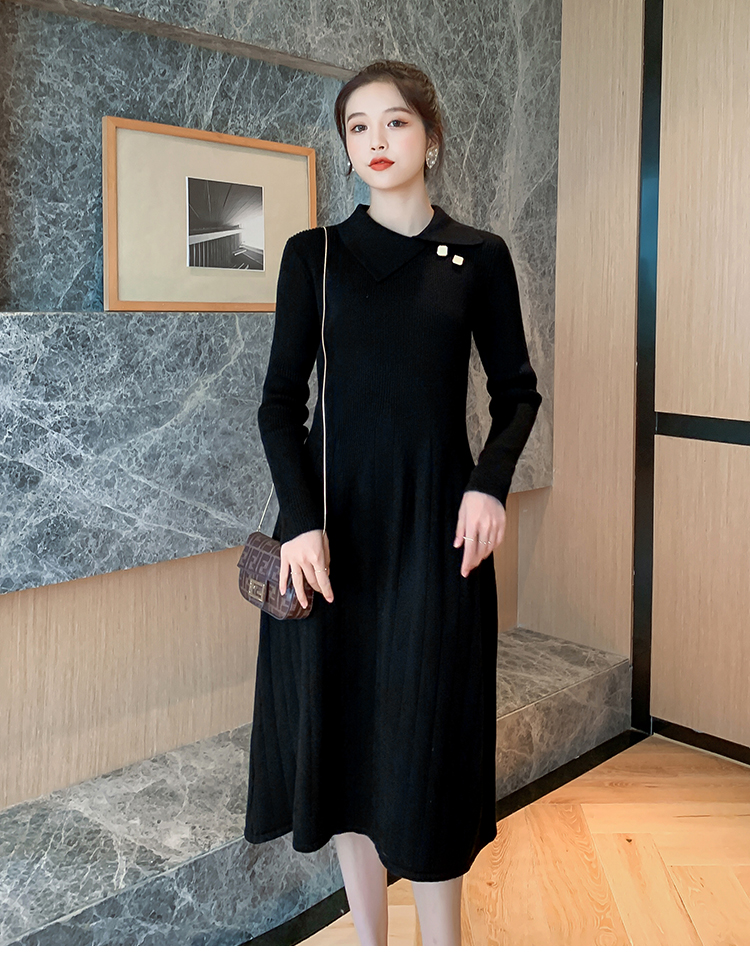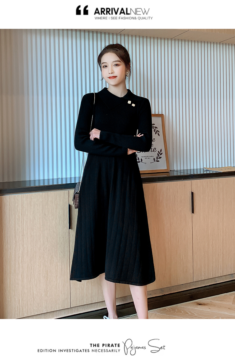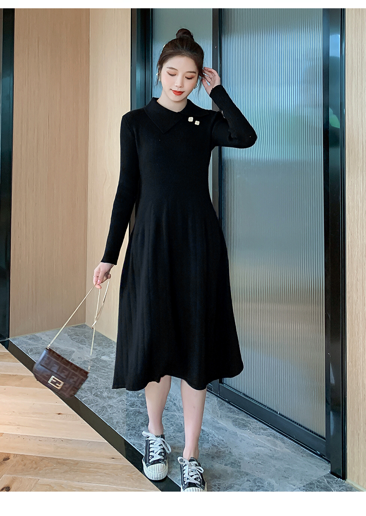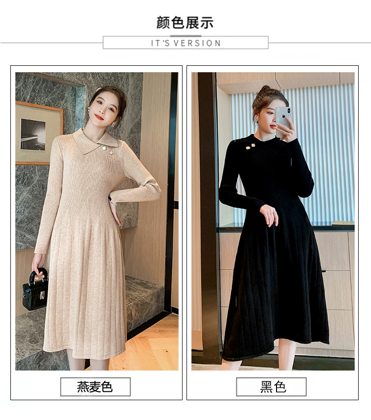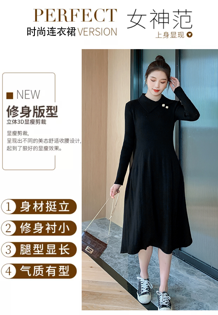 实拍1968#孕妇装秋冬毛衣修身针织连衣裙潮妈气质显瘦过膝打底衫