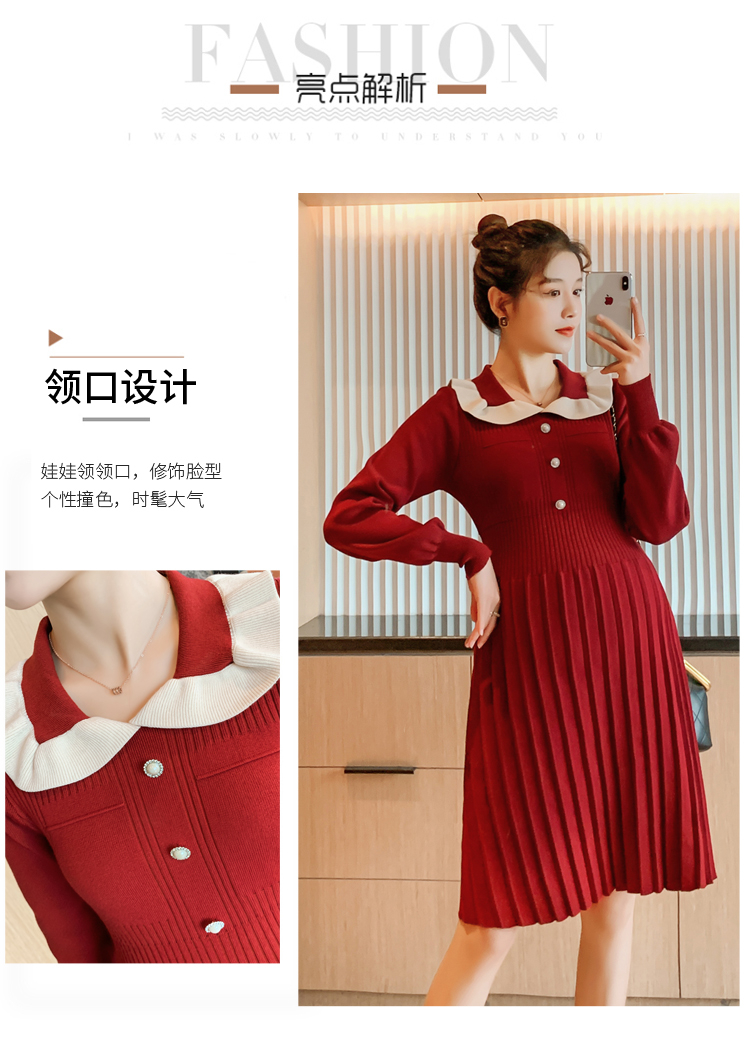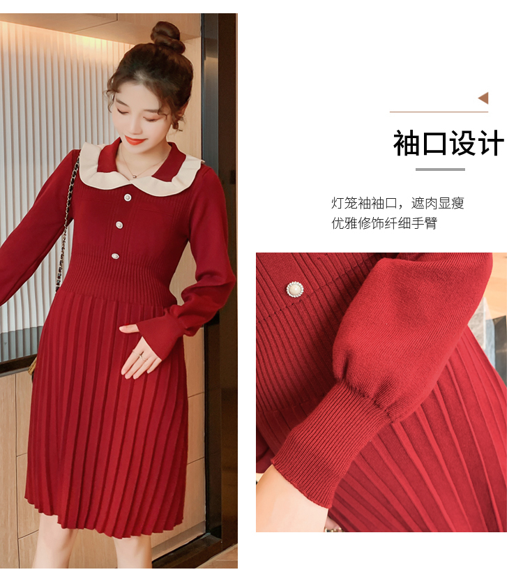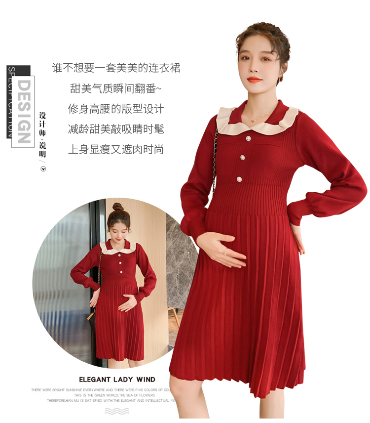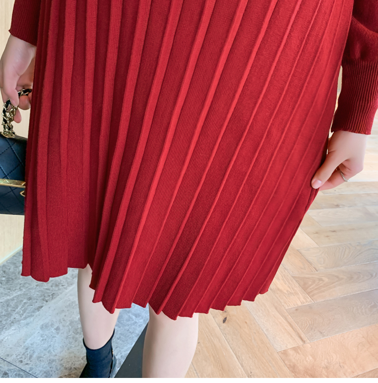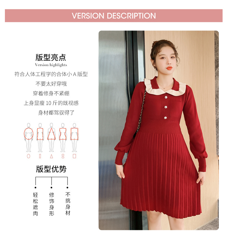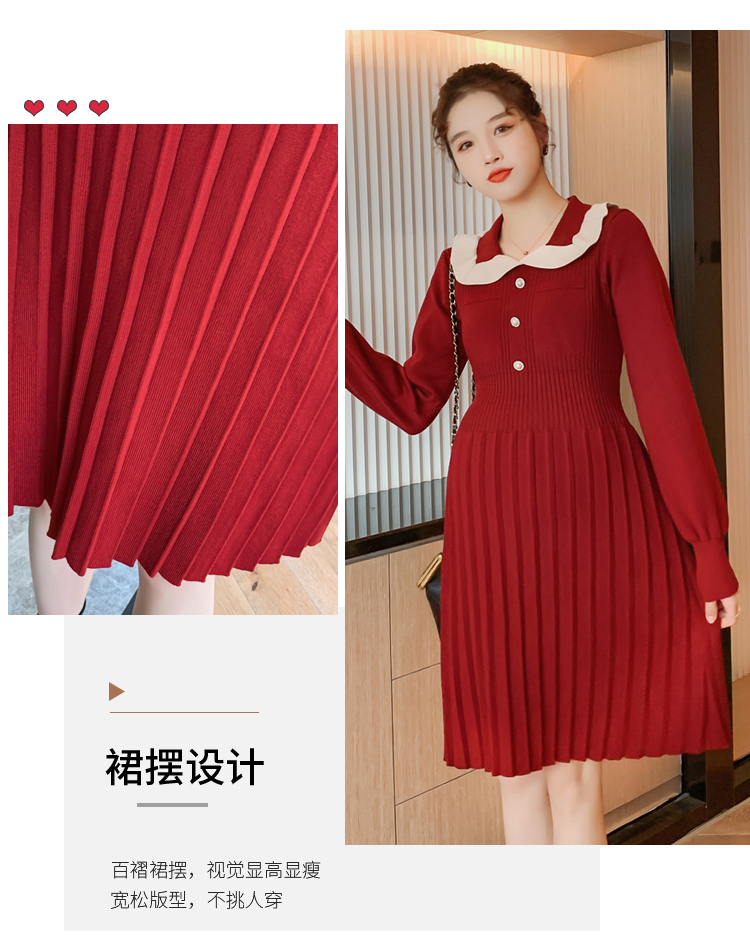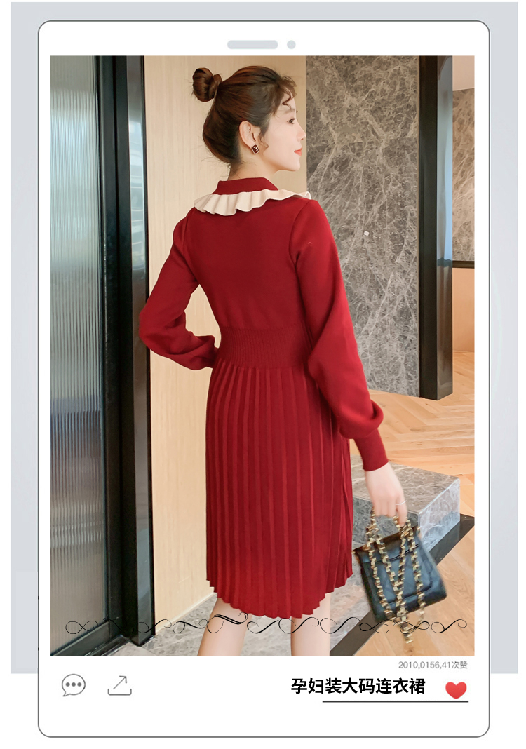 实拍现货2021新款孕妇圣诞红色高品质甜美公主范荷叶领百褶针织裙胖mm大码网红毛衣连衣裙