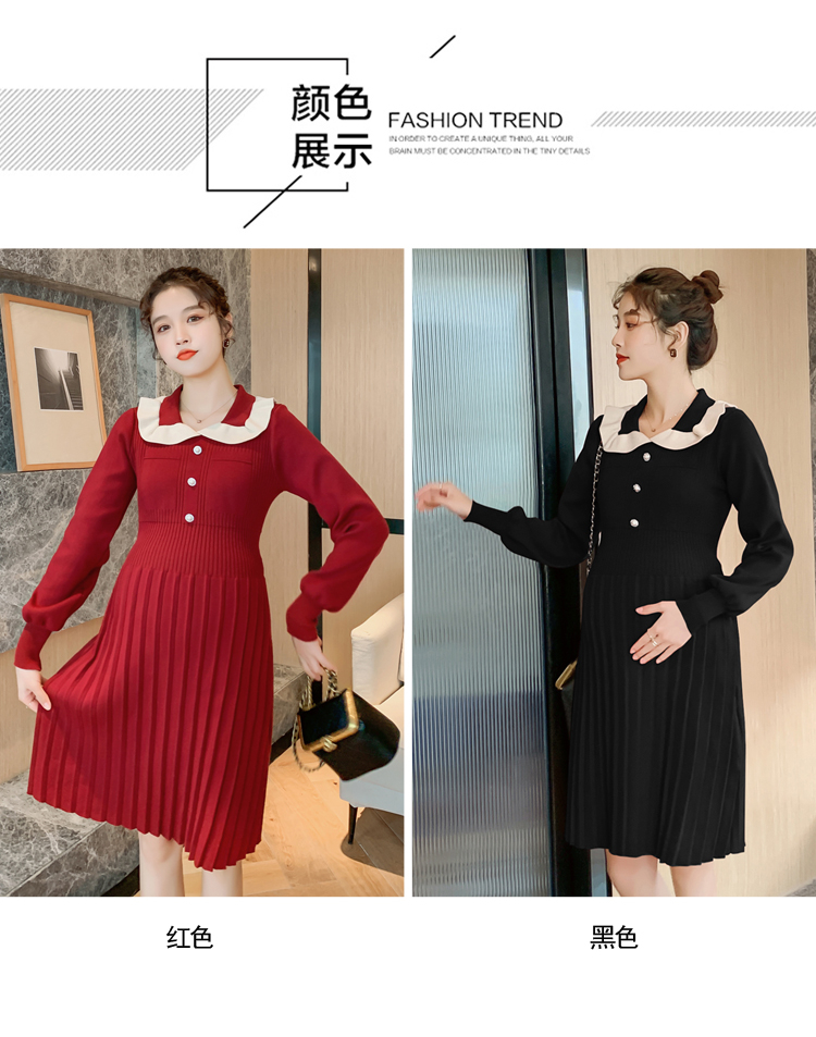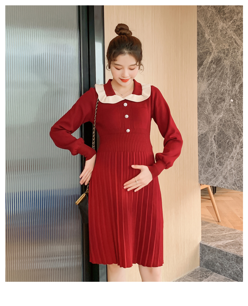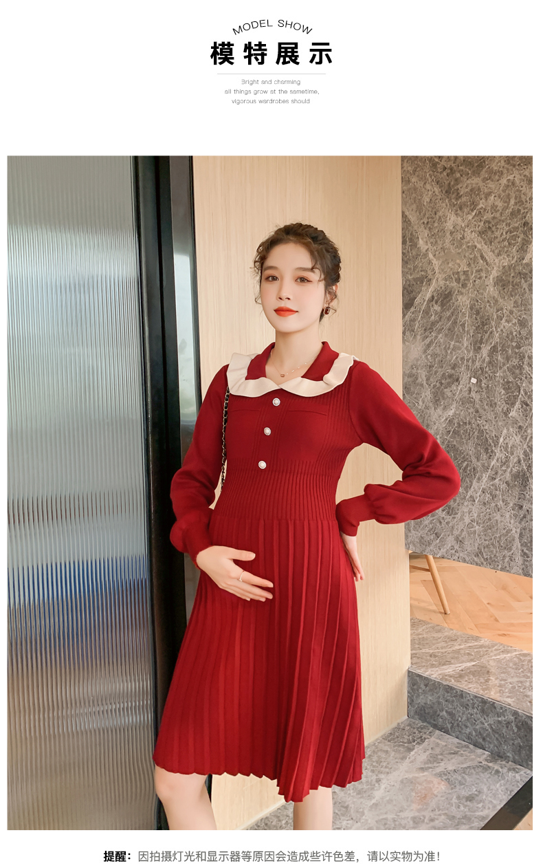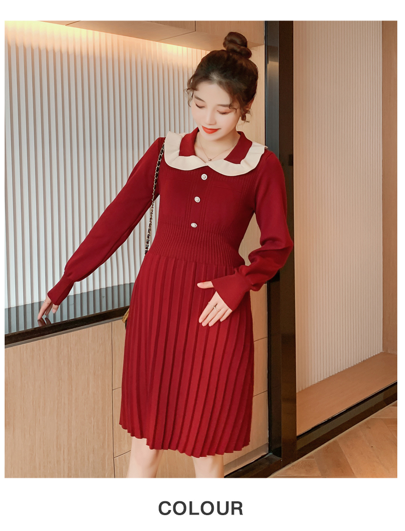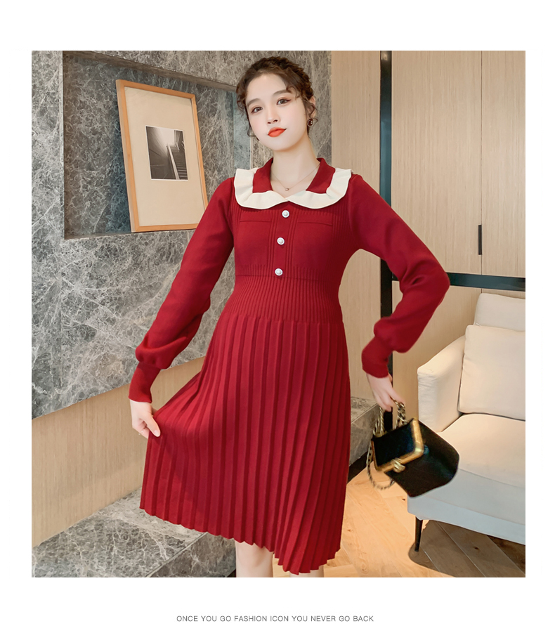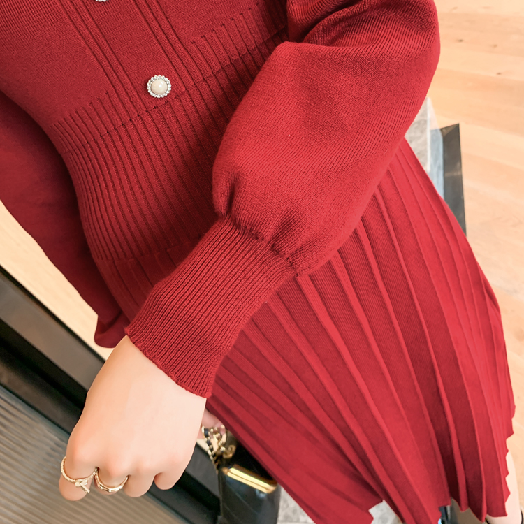 实拍现货2021新款孕妇圣诞红色高品质甜美公主范荷叶领百褶针织裙胖mm大码网红毛衣连衣裙