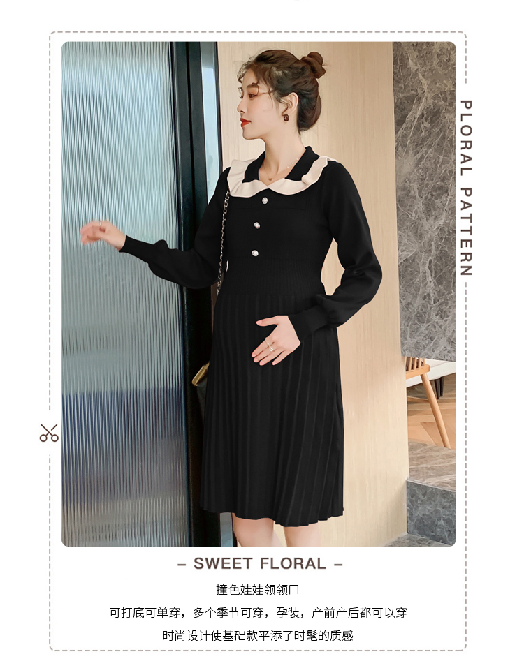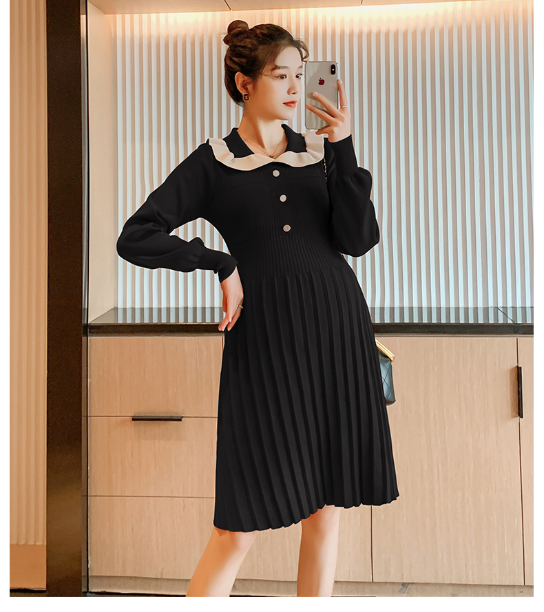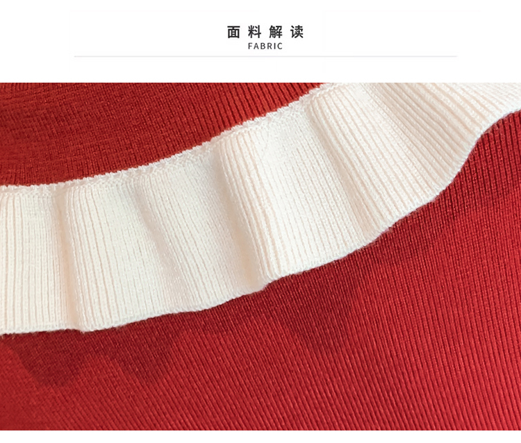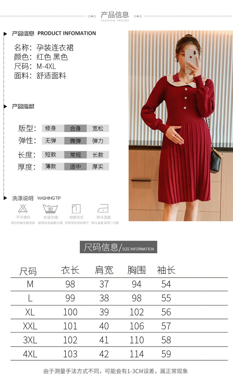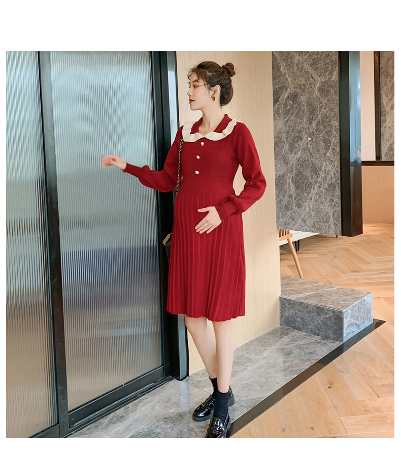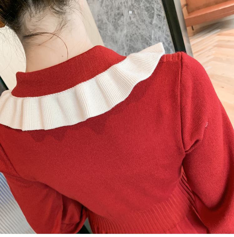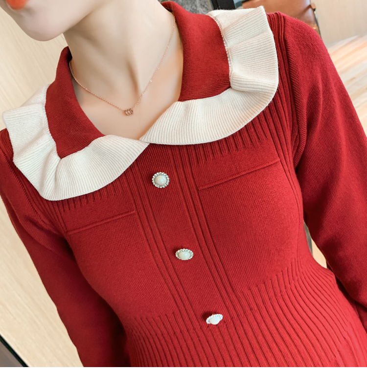 实拍现货2021新款孕妇圣诞红色高品质甜美公主范荷叶领百褶针织裙胖mm大码网红毛衣连衣裙