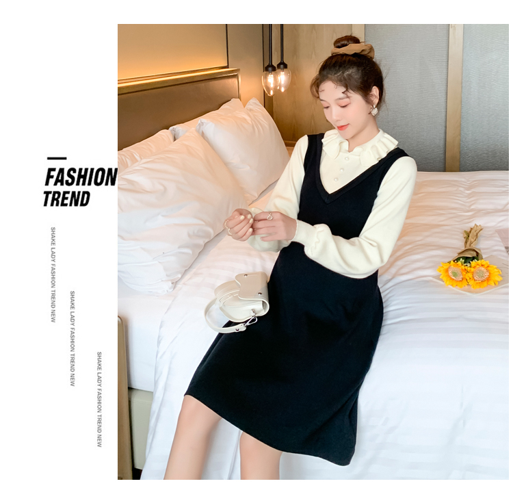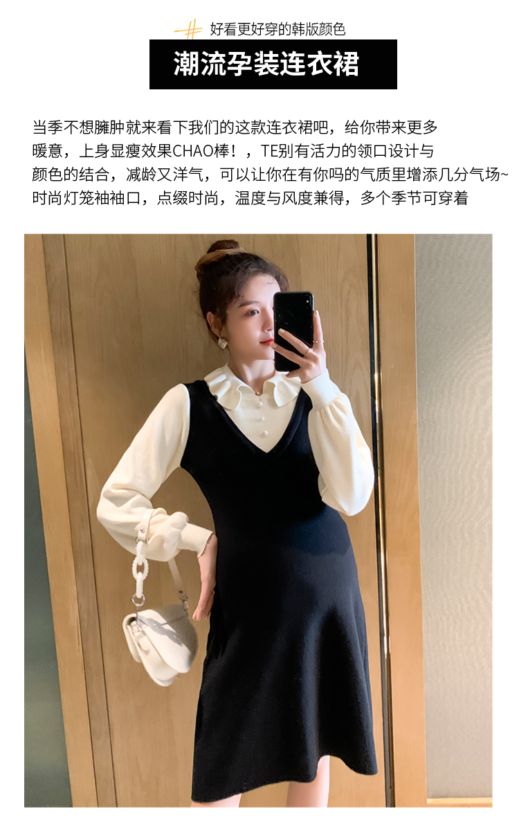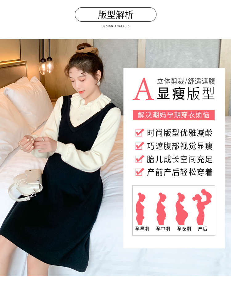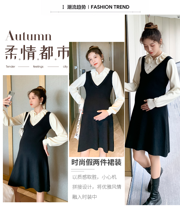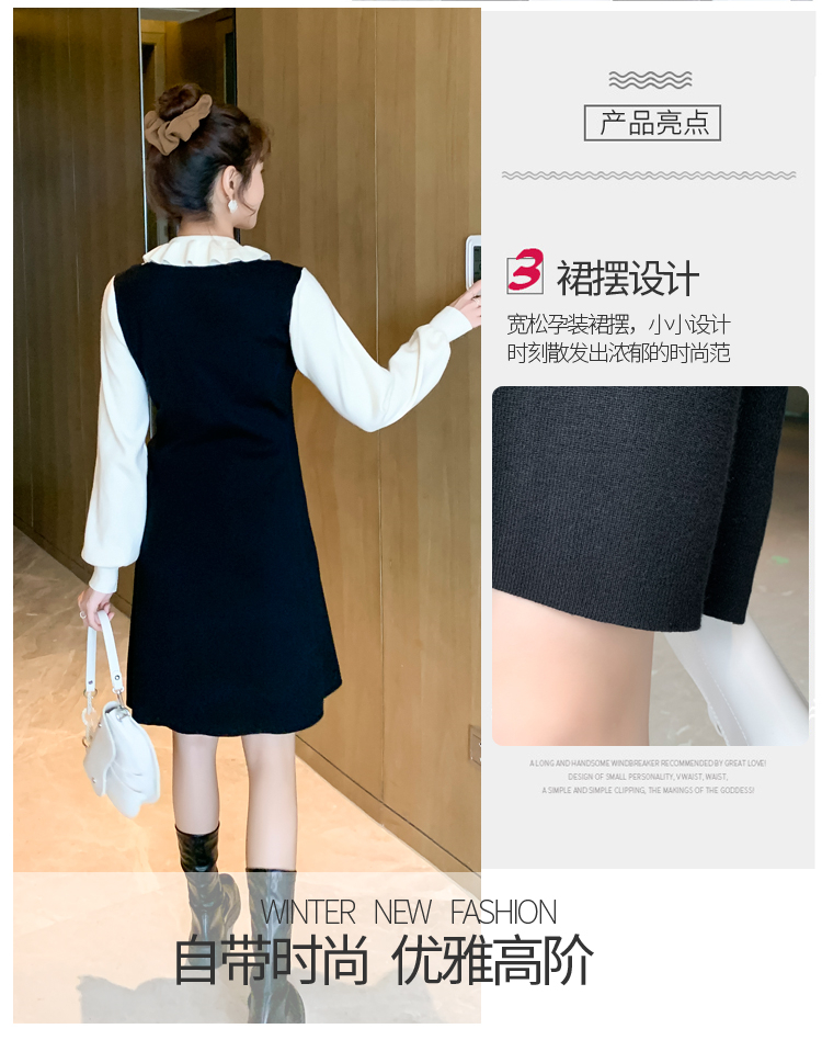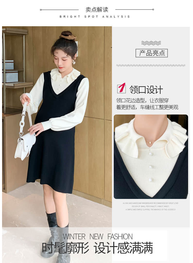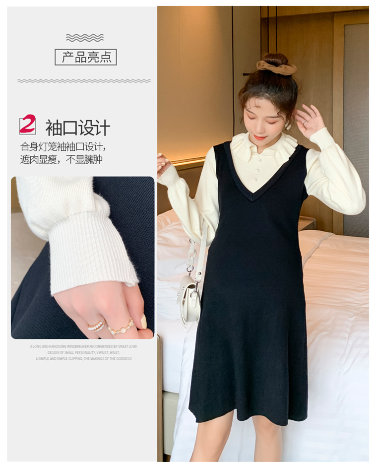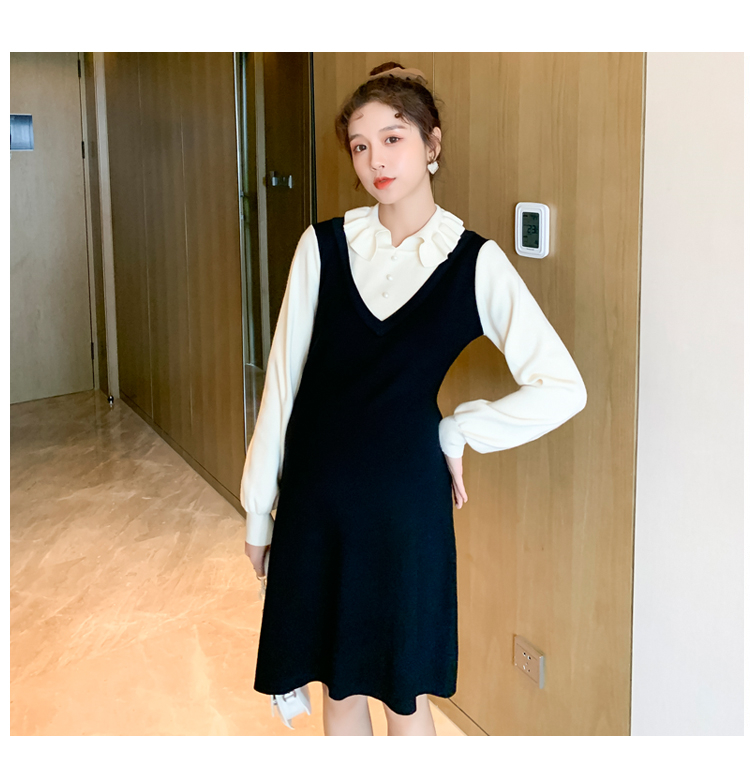 实拍现货2020秋冬新款孕妇法式小众胖mm仙女森系a字裙花朵领针织假两件大码毛衣裙