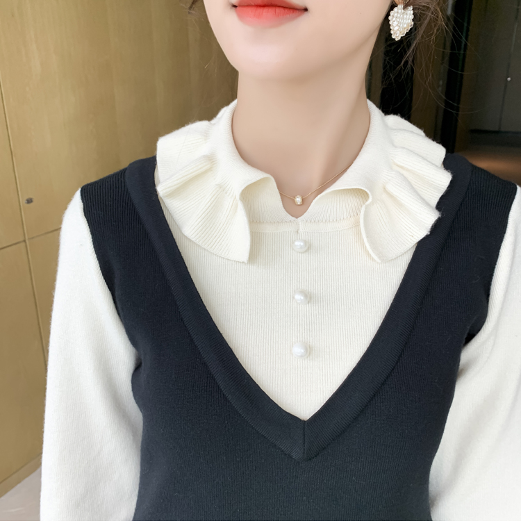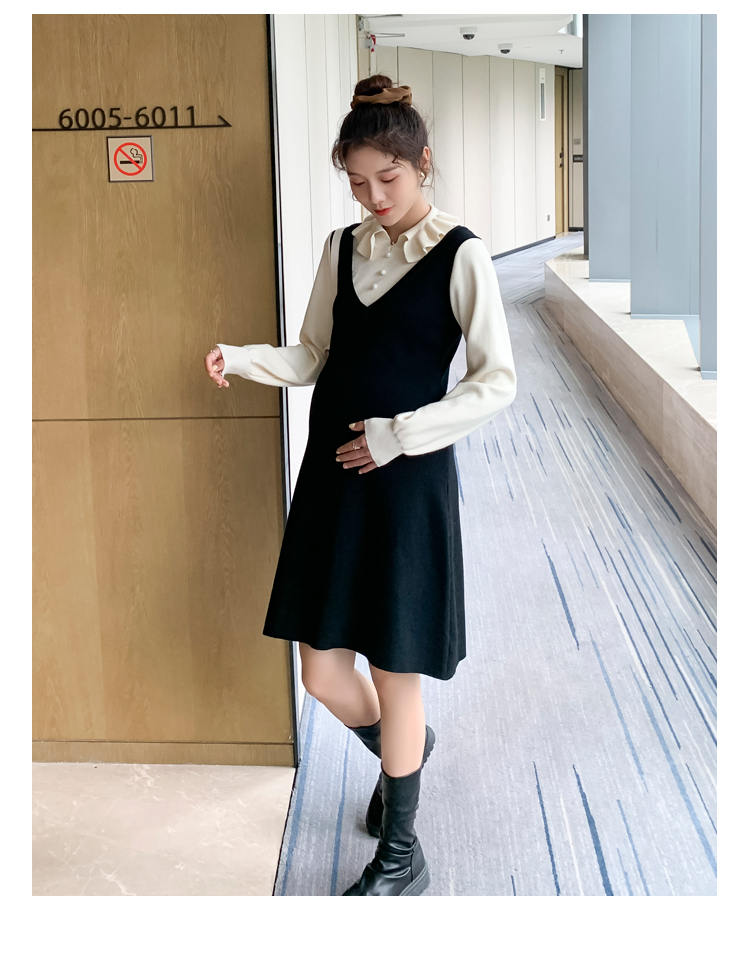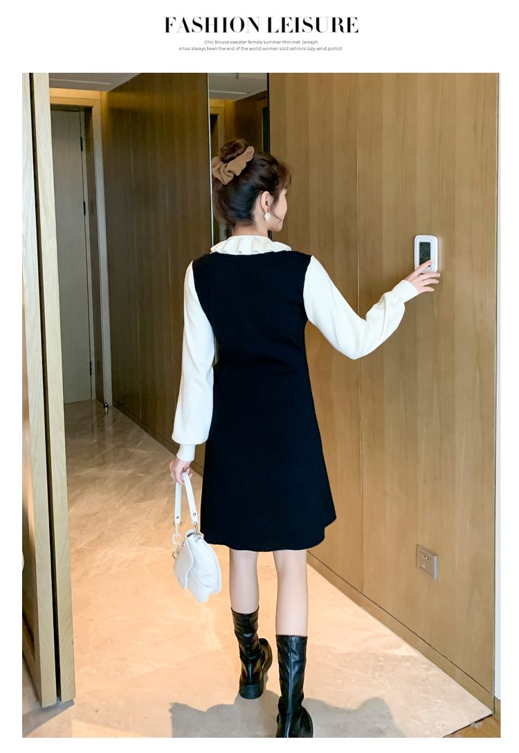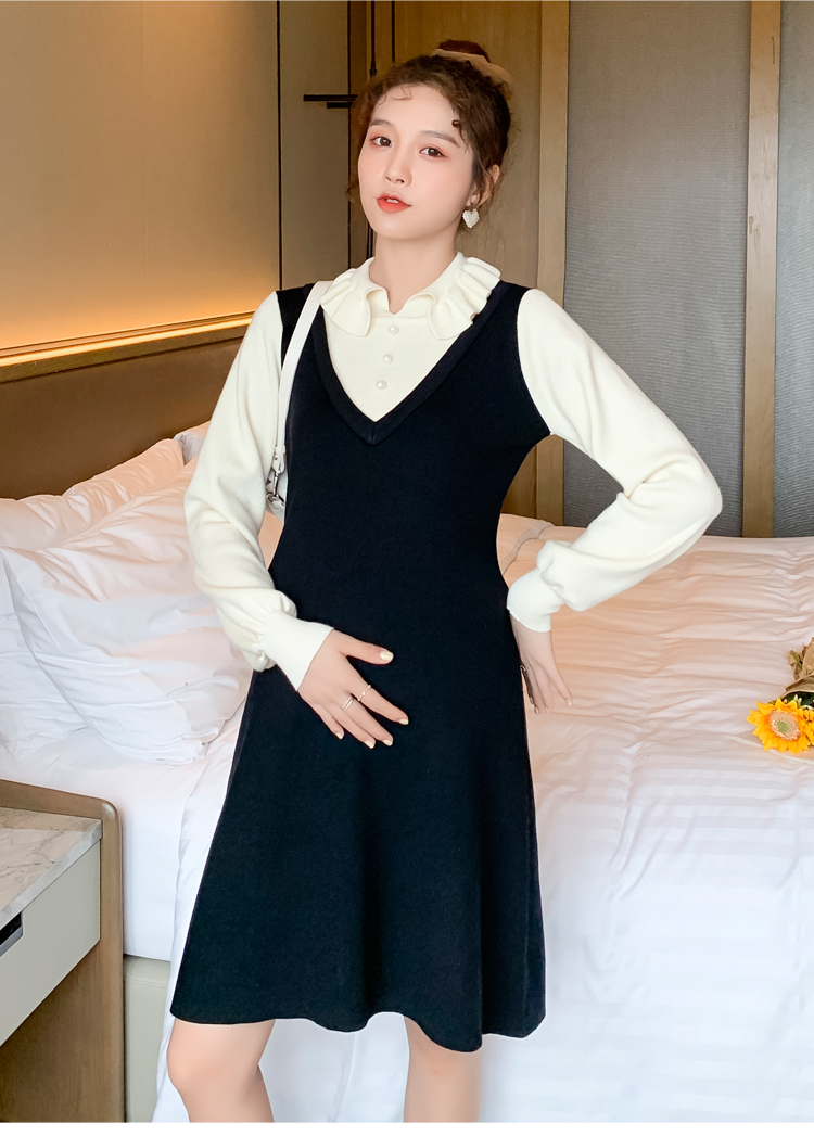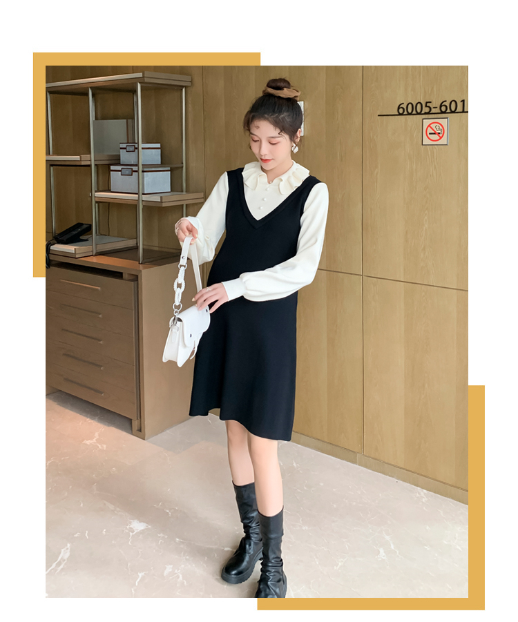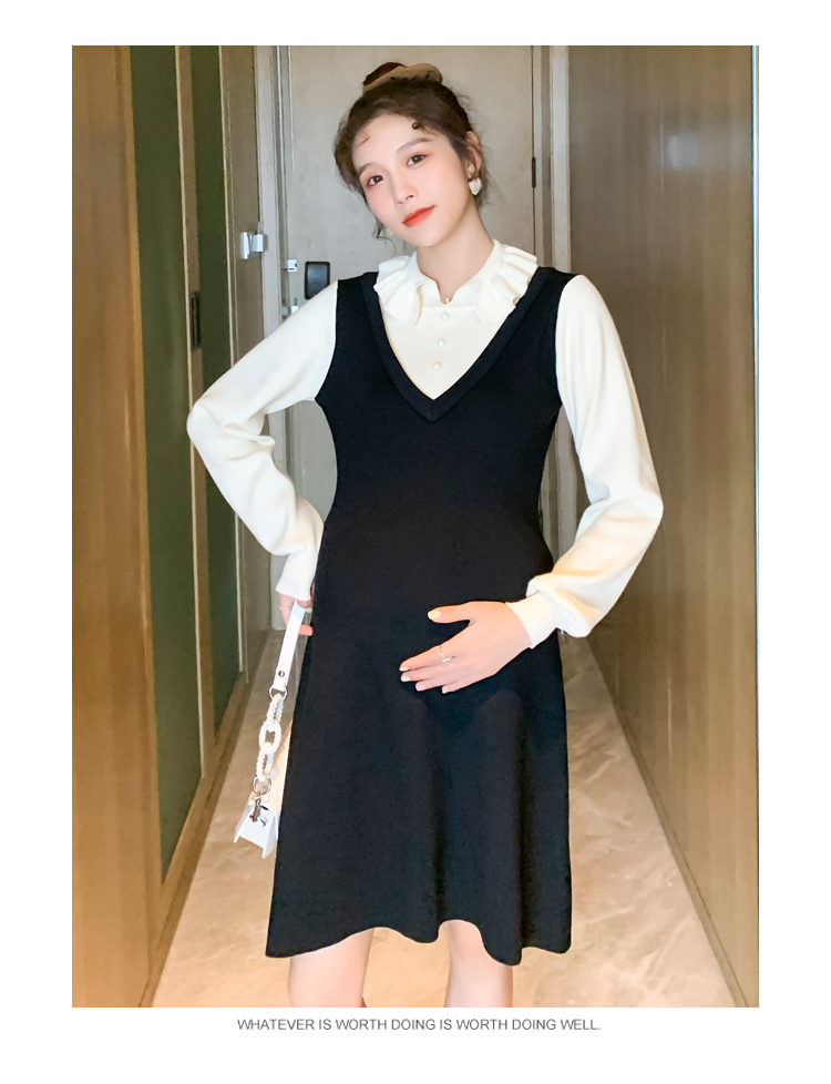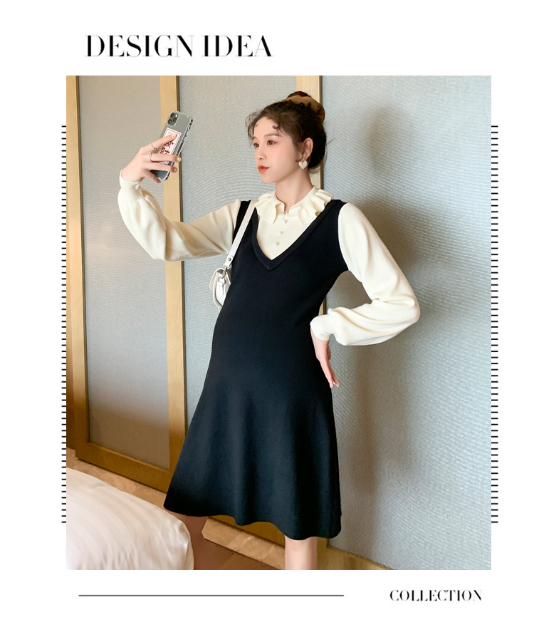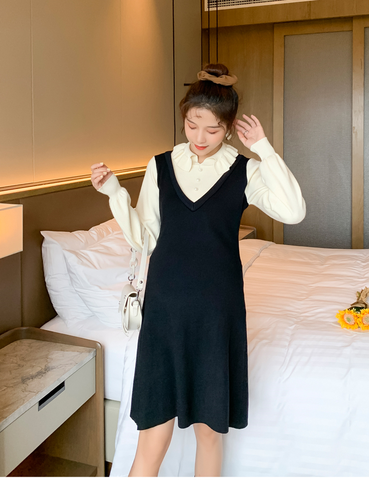 实拍现货2020秋冬新款孕妇法式小众胖mm仙女森系a字裙花朵领针织假两件大码毛衣裙