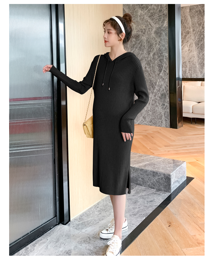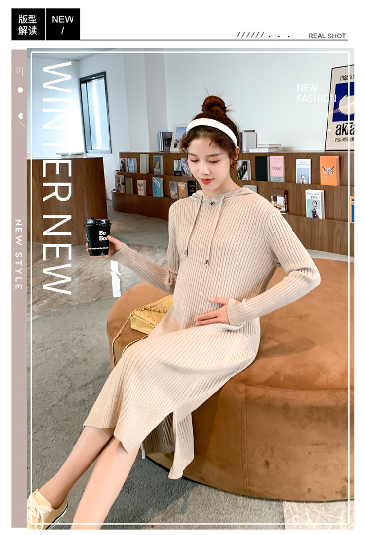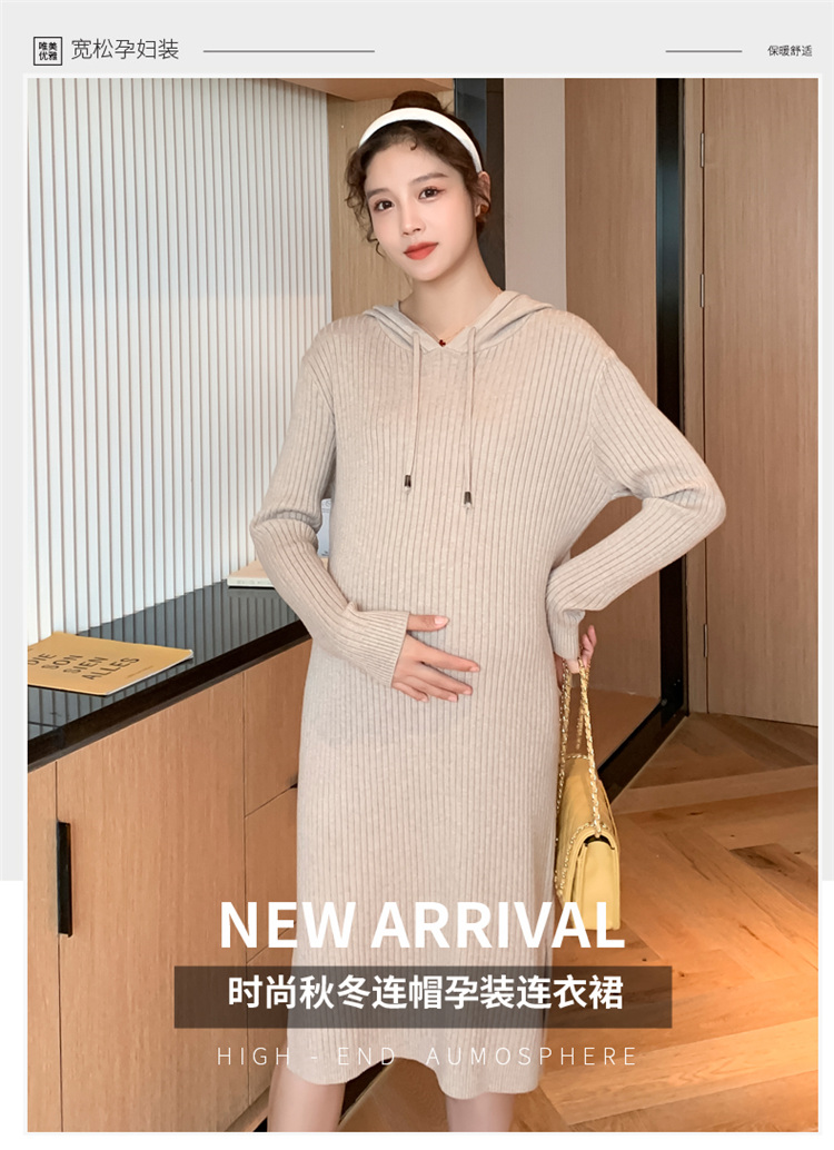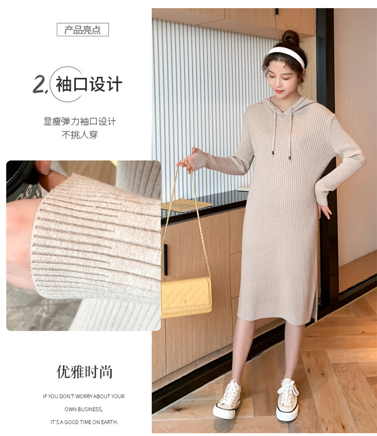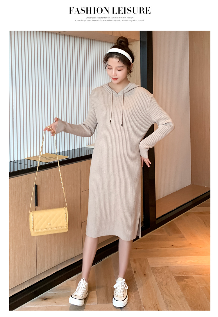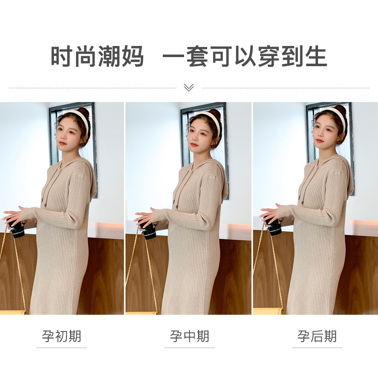 实拍现货2020秋冬新款孕妇过膝连帽针织宽松显瘦大码胖mm包芯纱连衣裙