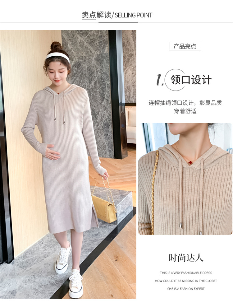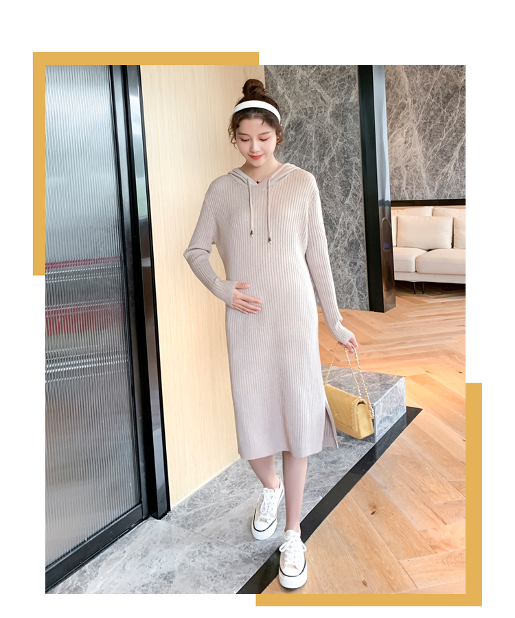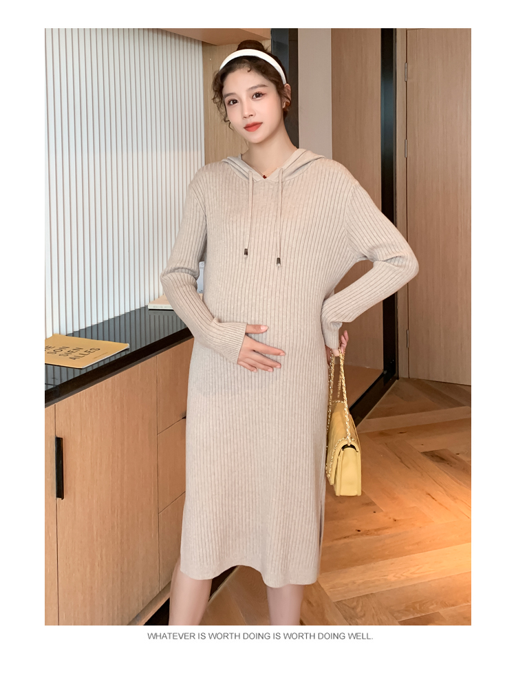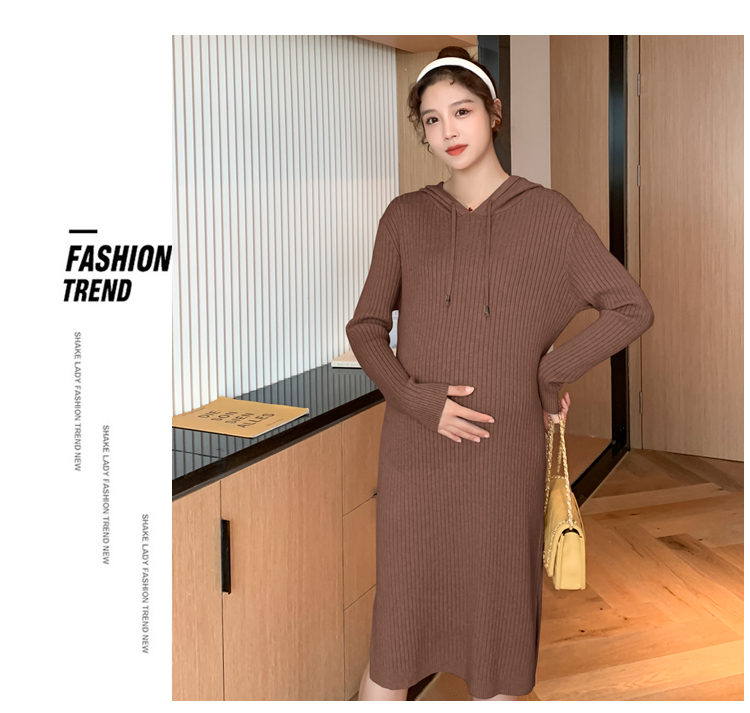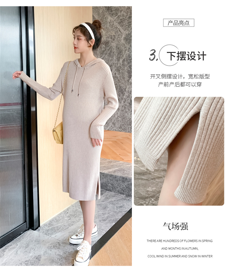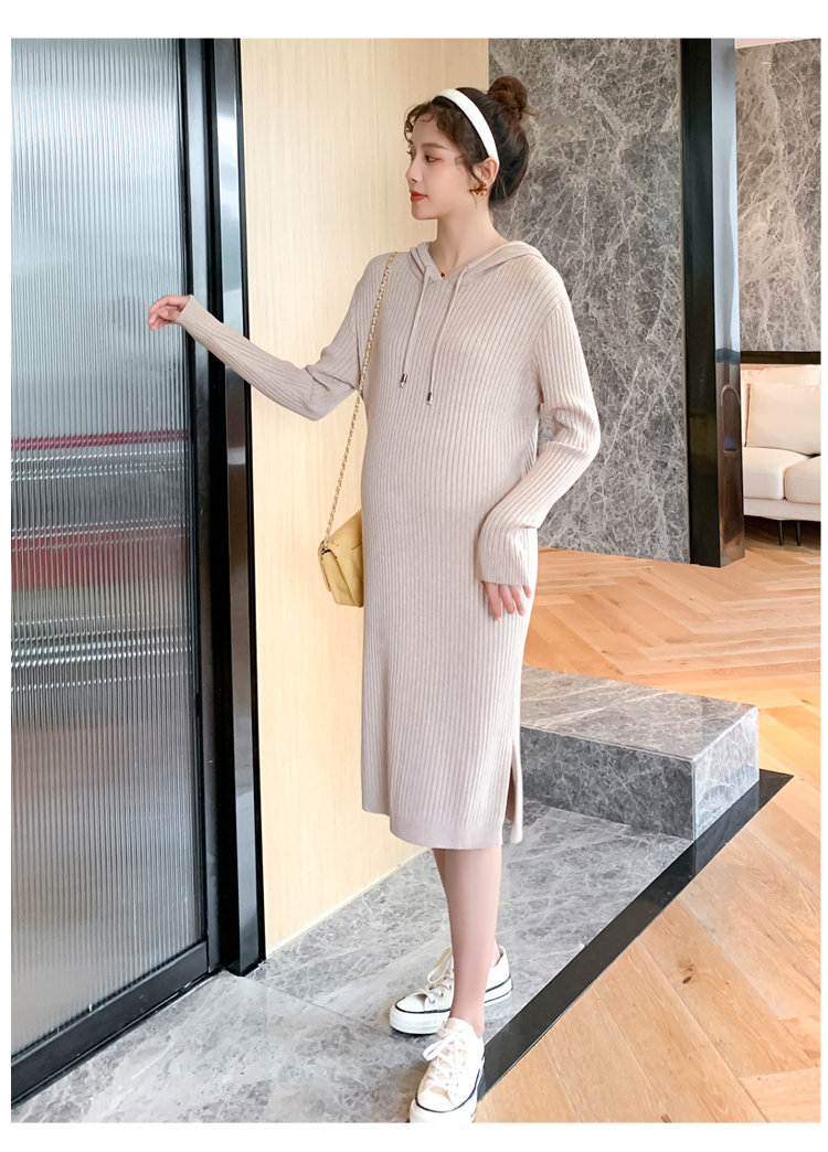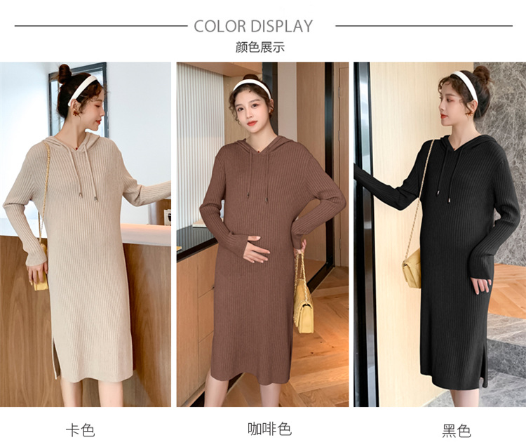 实拍现货2020秋冬新款孕妇过膝连帽针织宽松显瘦大码胖mm包芯纱连衣裙