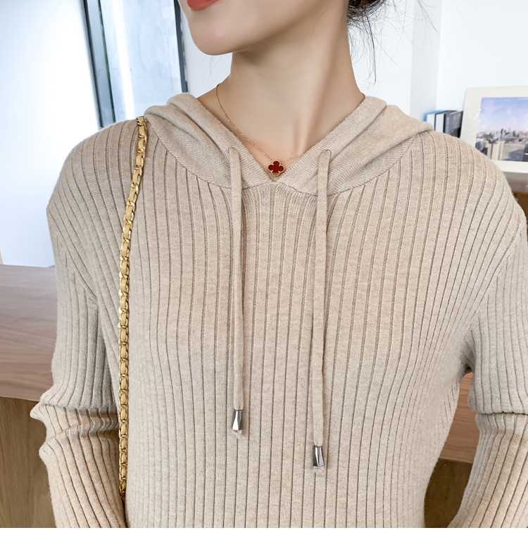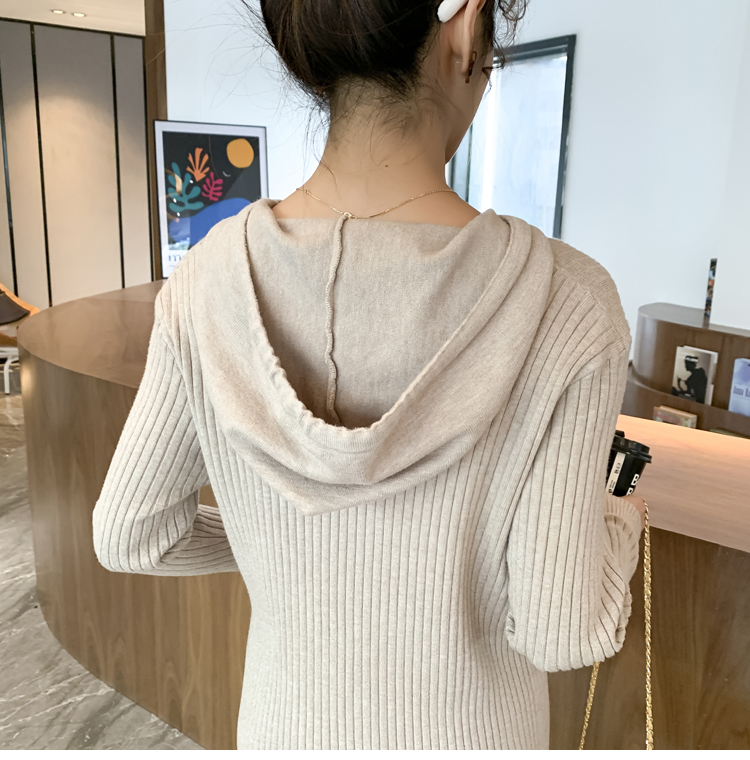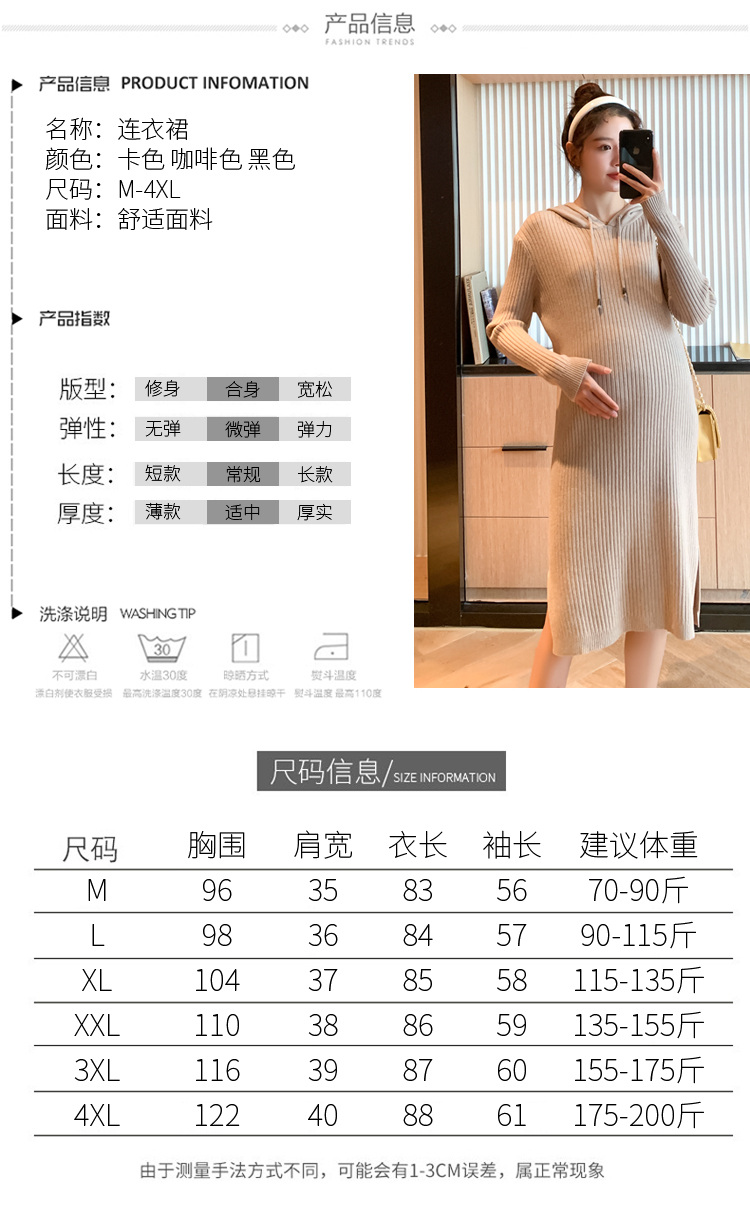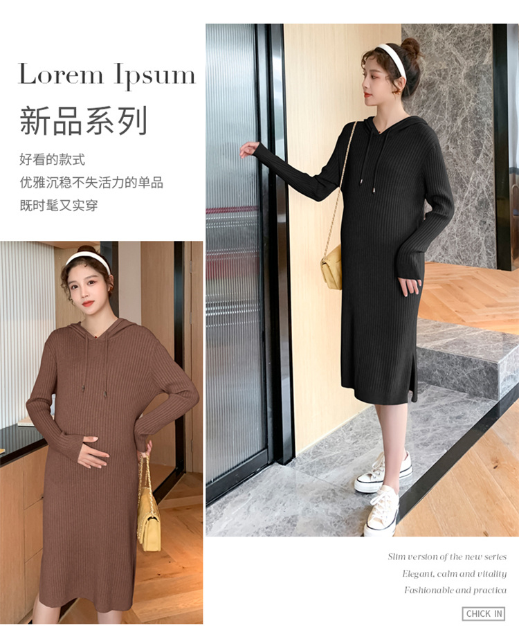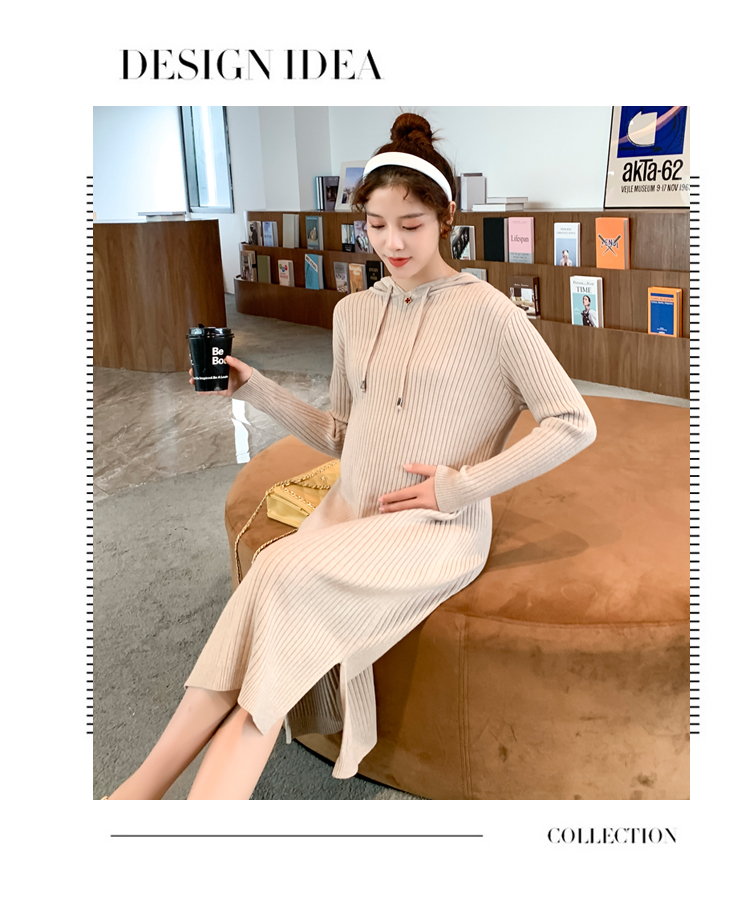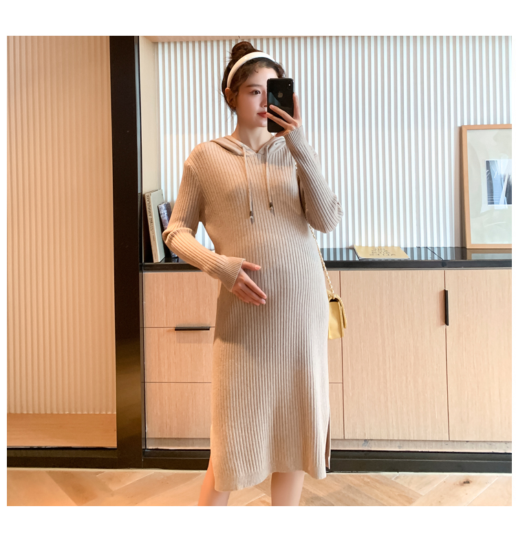 实拍现货2020秋冬新款孕妇过膝连帽针织宽松显瘦大码胖mm包芯纱连衣裙