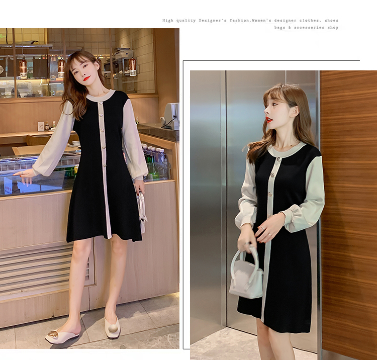 实拍1972#孕妇秋冬毛衣小香风针织连衣裙怀孕期收腰显瘦打底衫潮