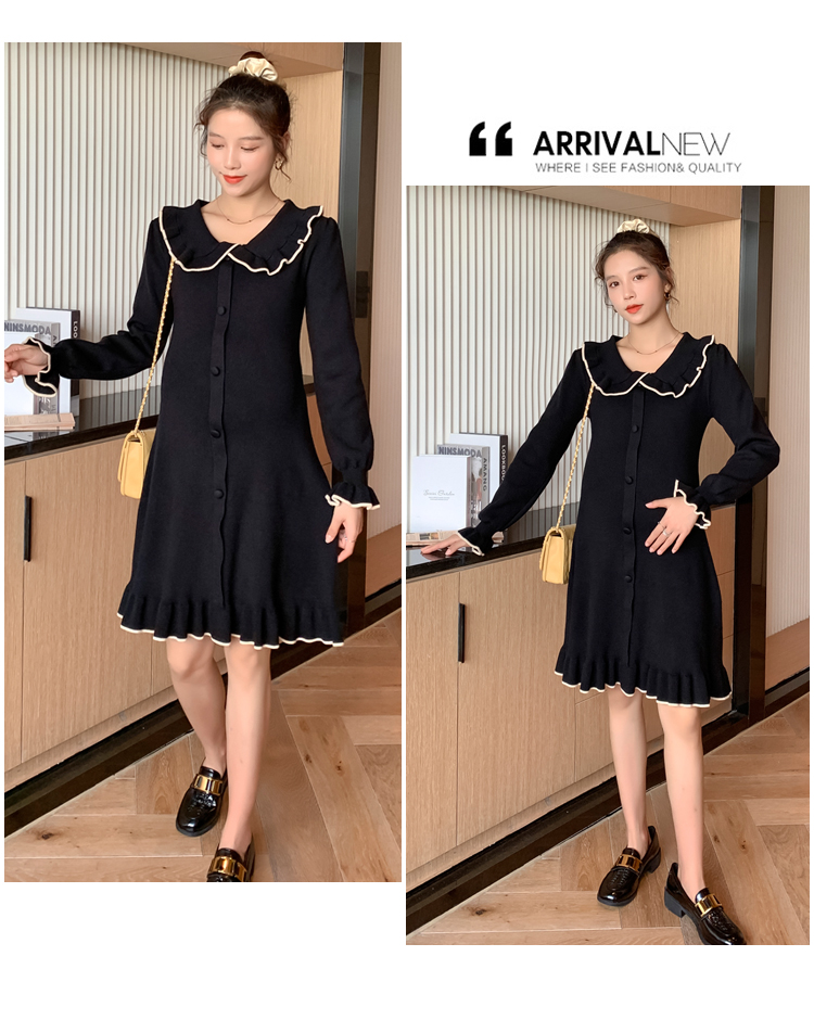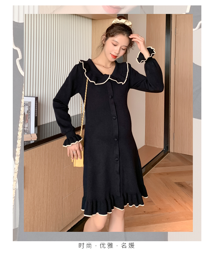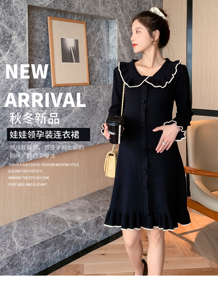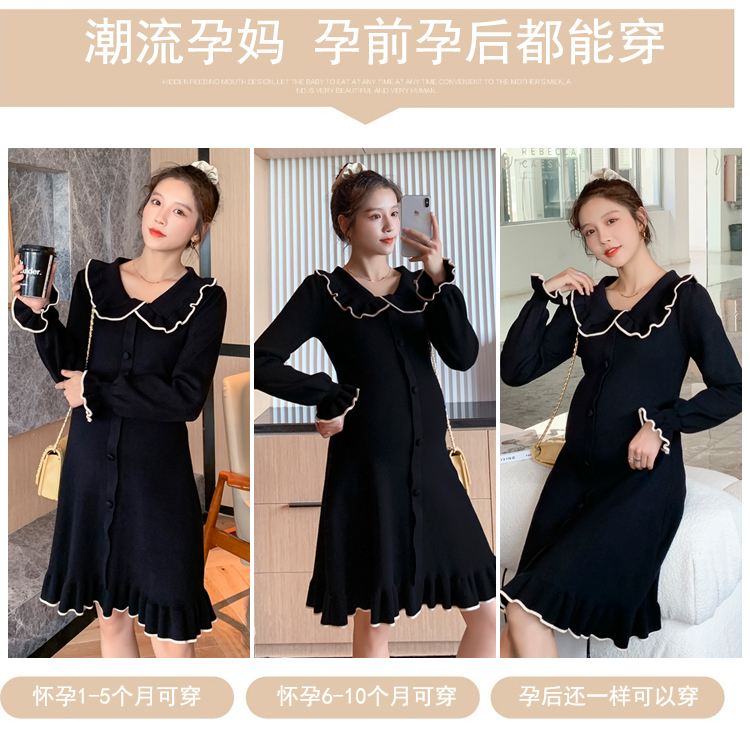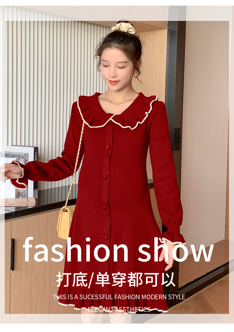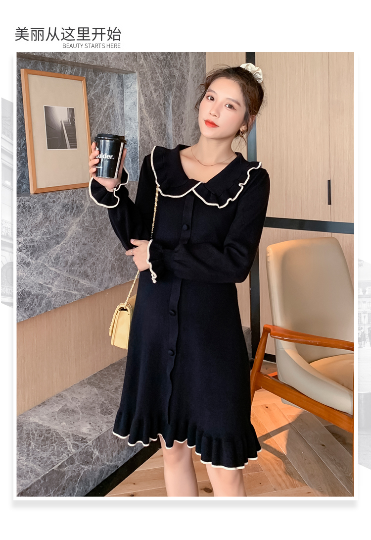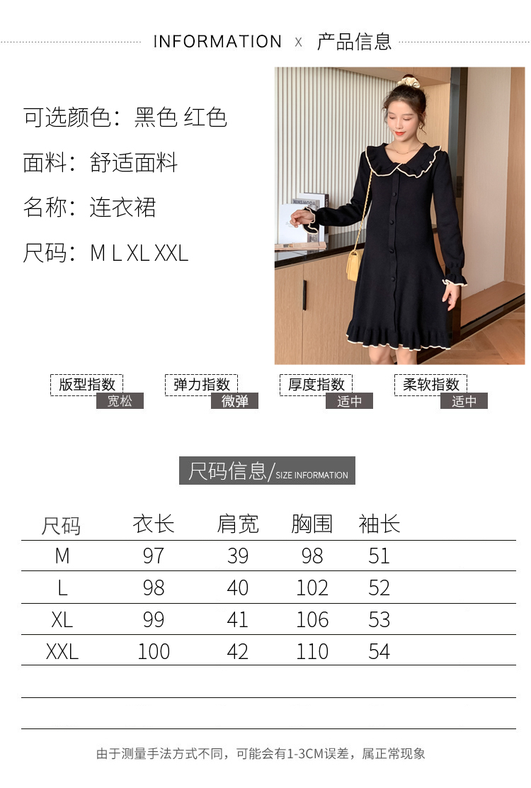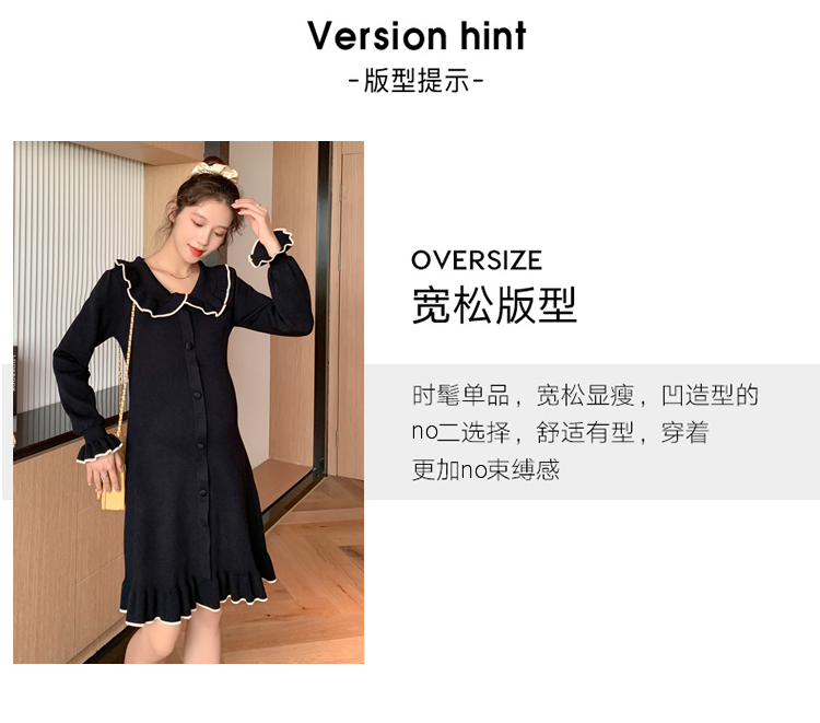 实拍现货2020秋冬新款孕妇娃娃领宽松显瘦胖mm可盐可甜温柔风大码针织连衣裙