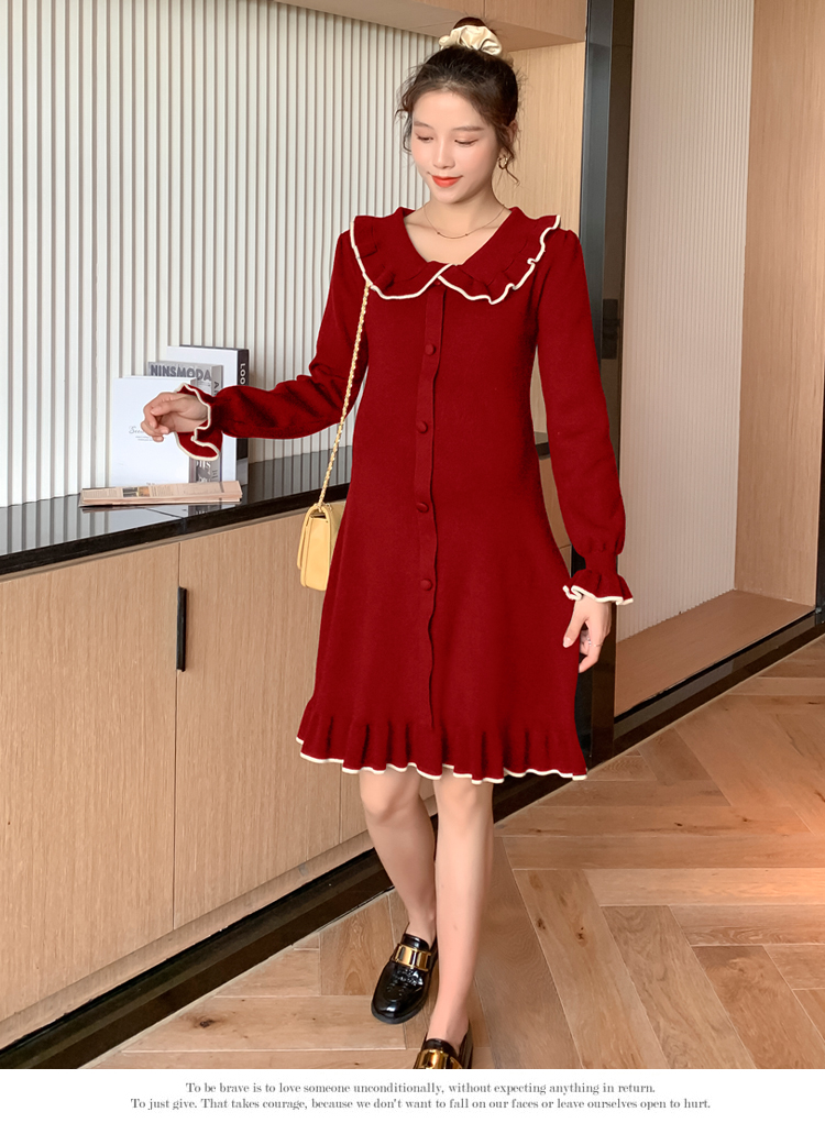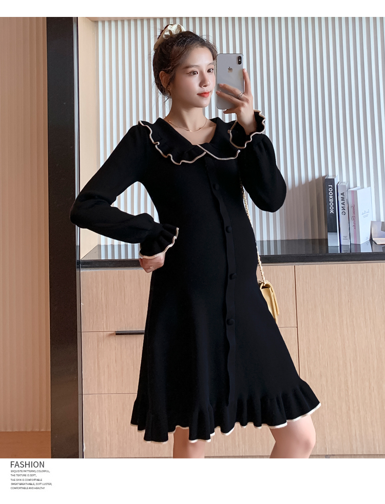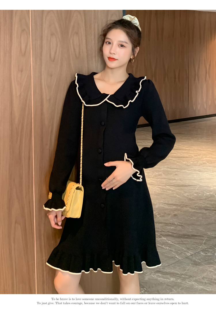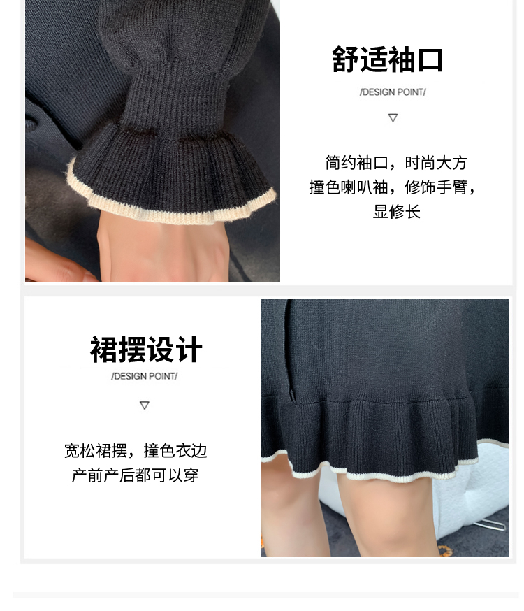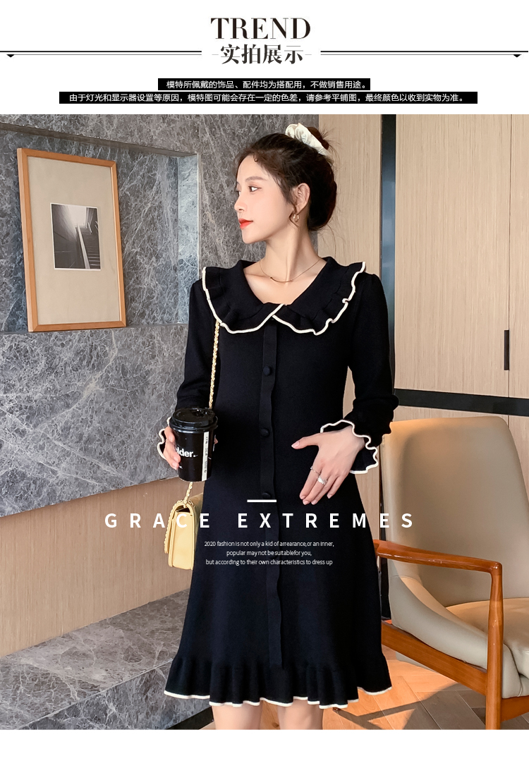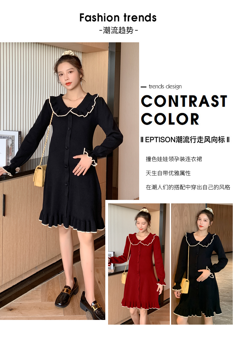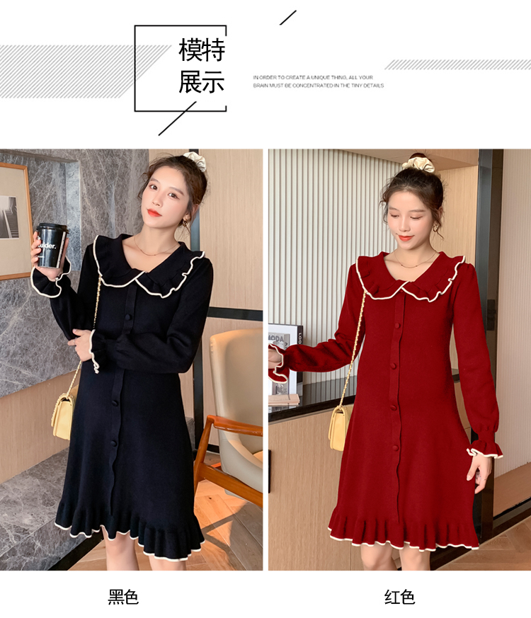 实拍现货2020秋冬新款孕妇娃娃领宽松显瘦胖mm可盐可甜温柔风大码针织连衣裙