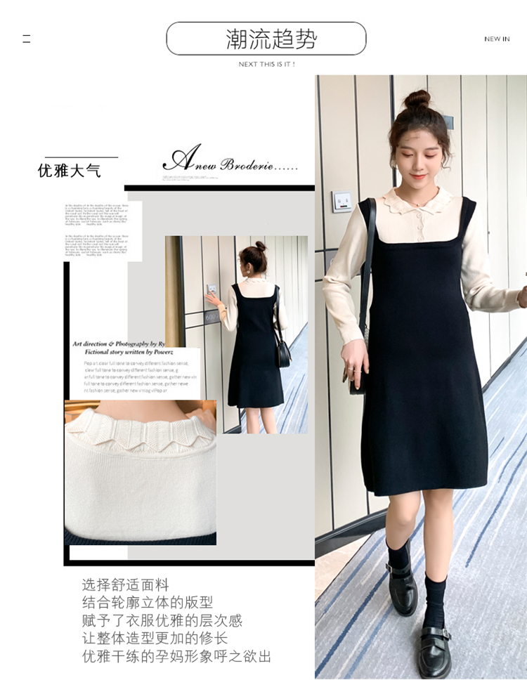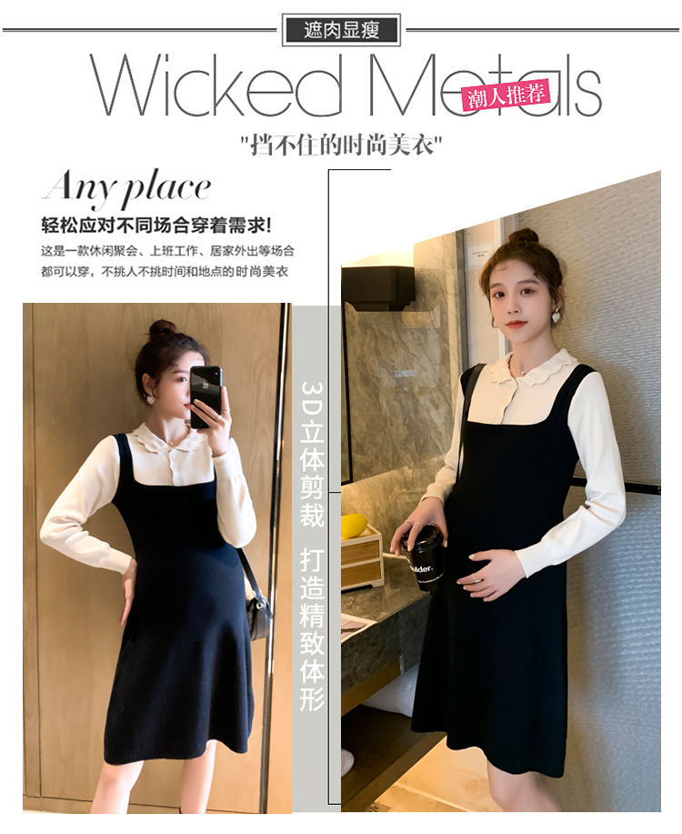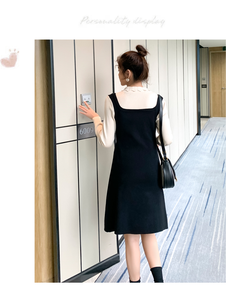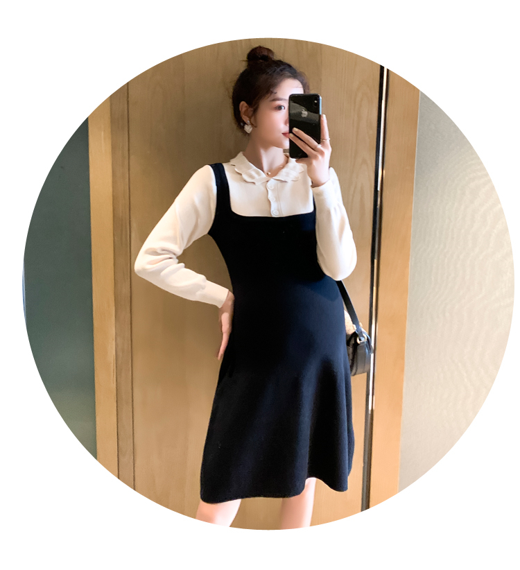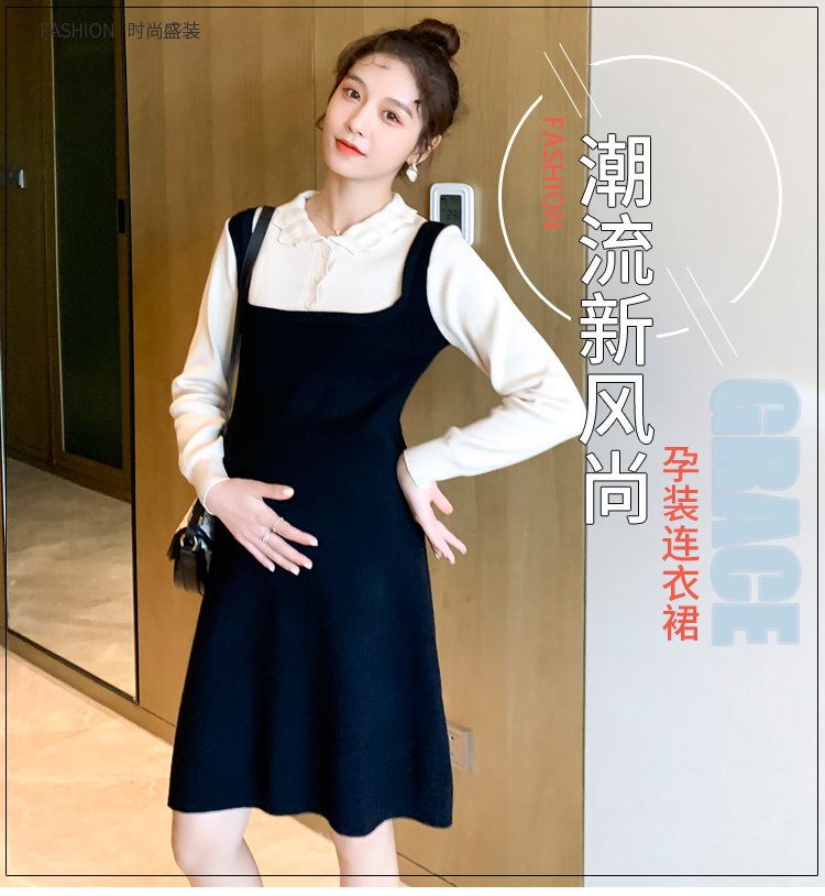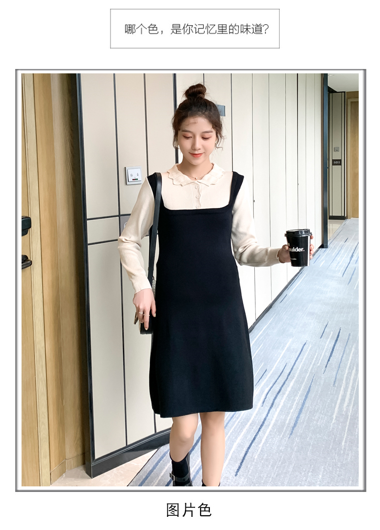 实拍现货2020秋冬新款孕妇甜美百塔撞色包芯纱假两件气质织毛衣大码连衣裙