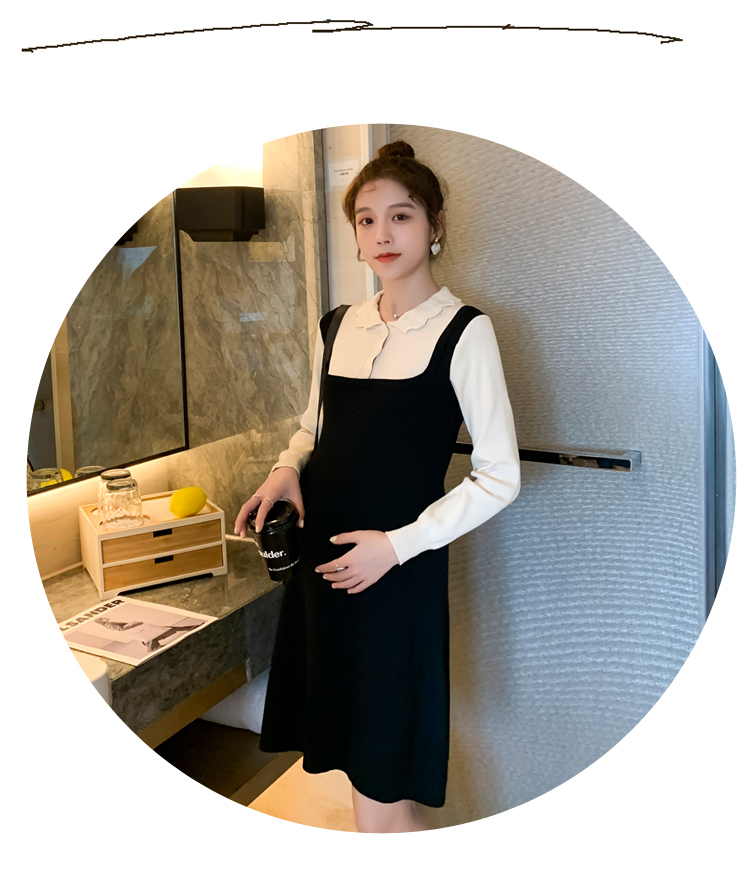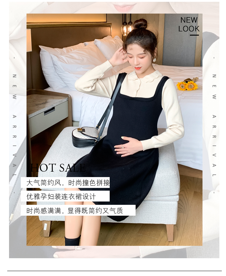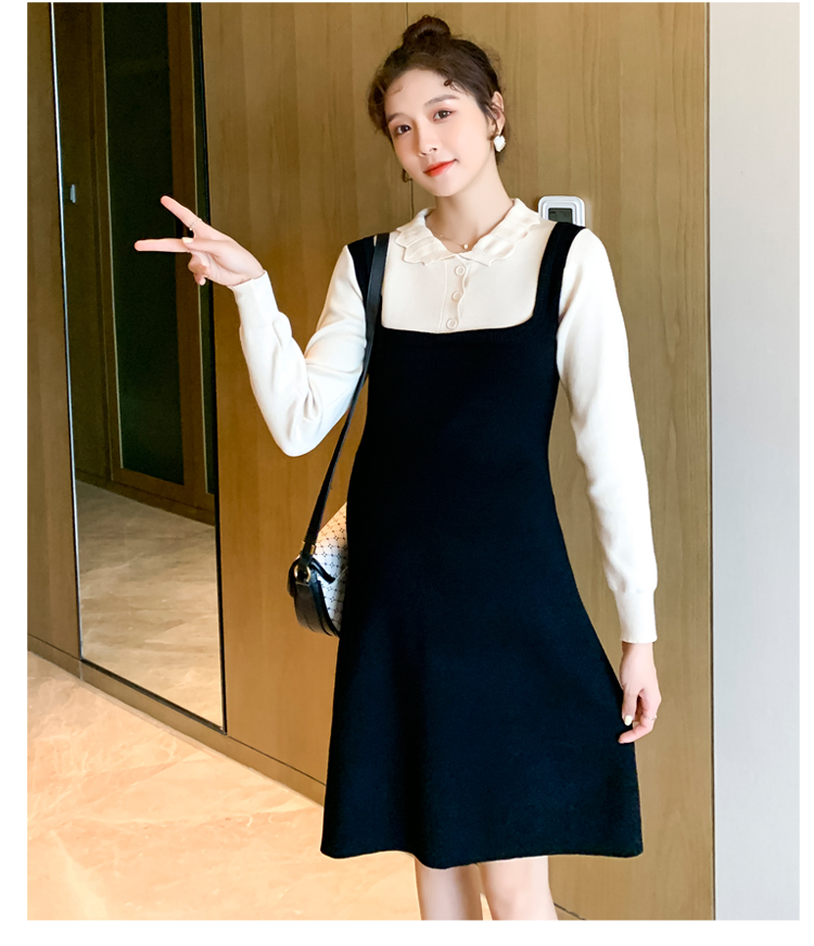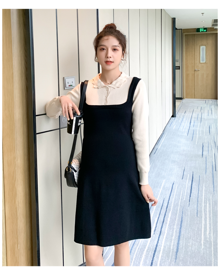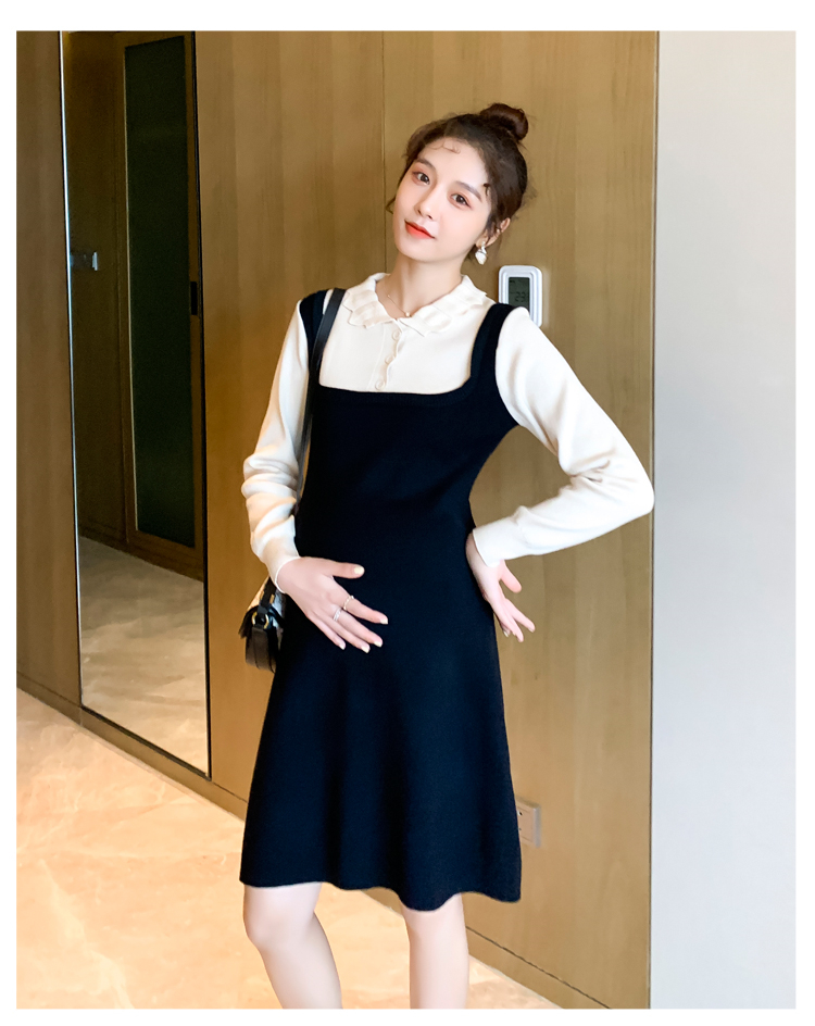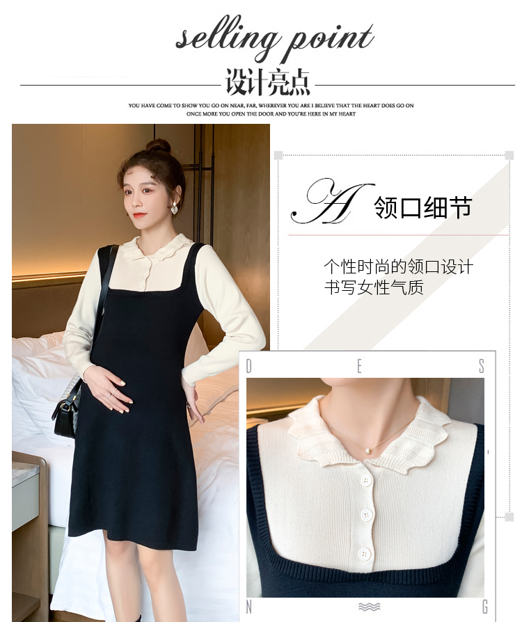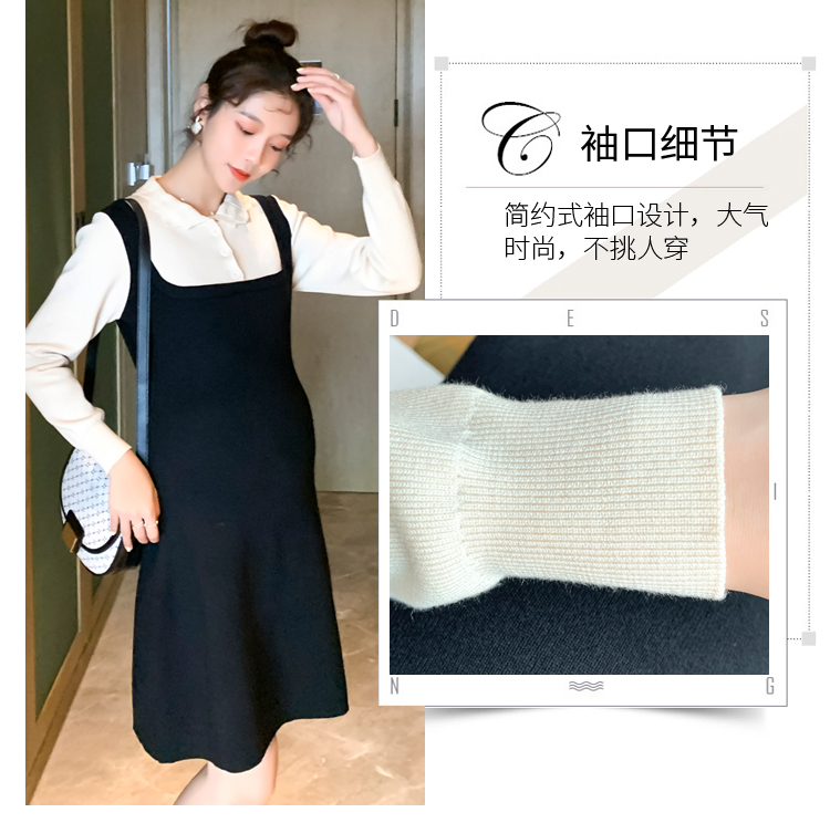 实拍现货2020秋冬新款孕妇甜美百塔撞色包芯纱假两件气质织毛衣大码连衣裙
