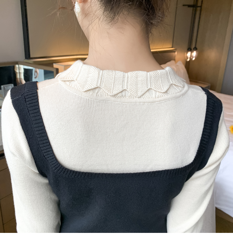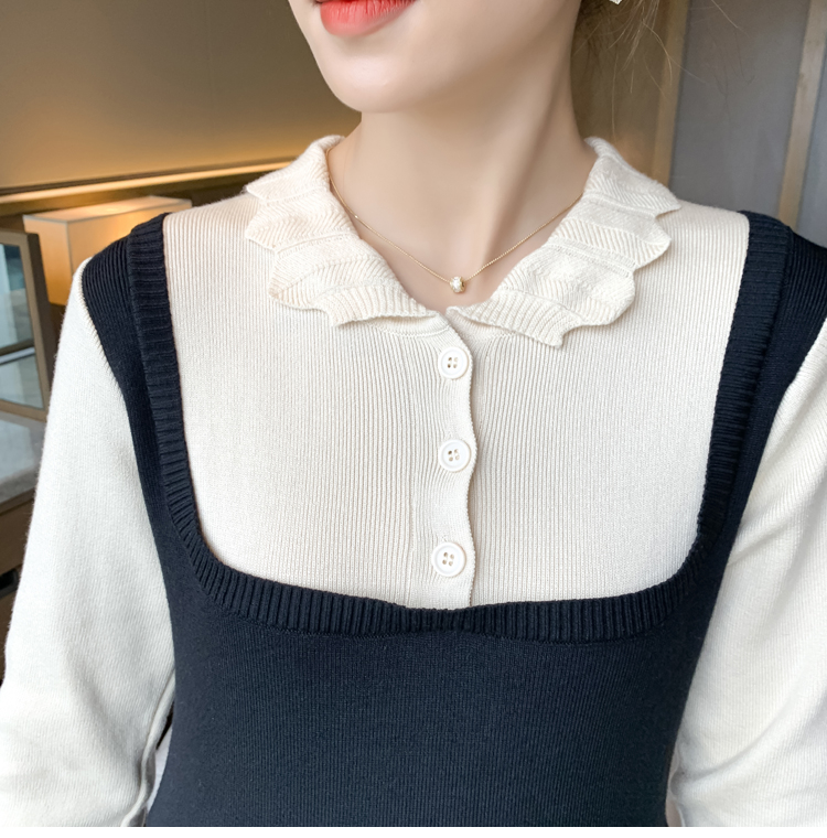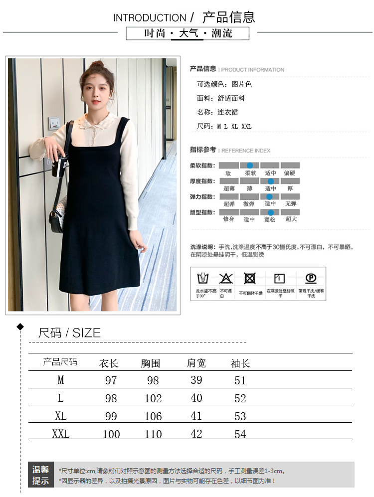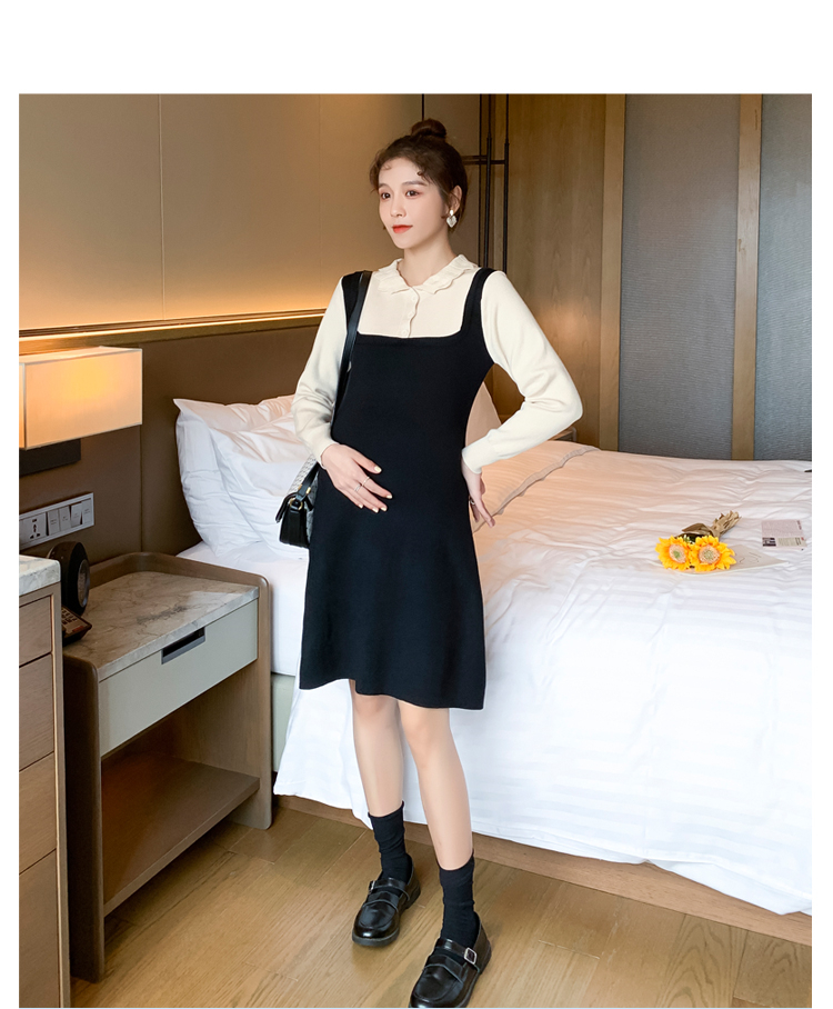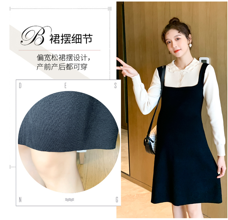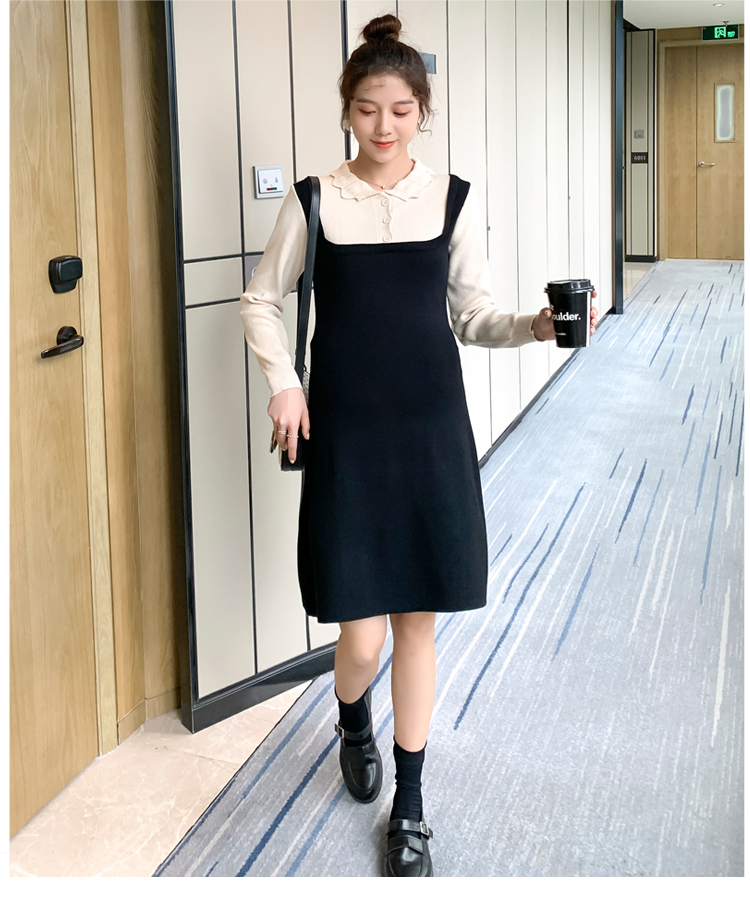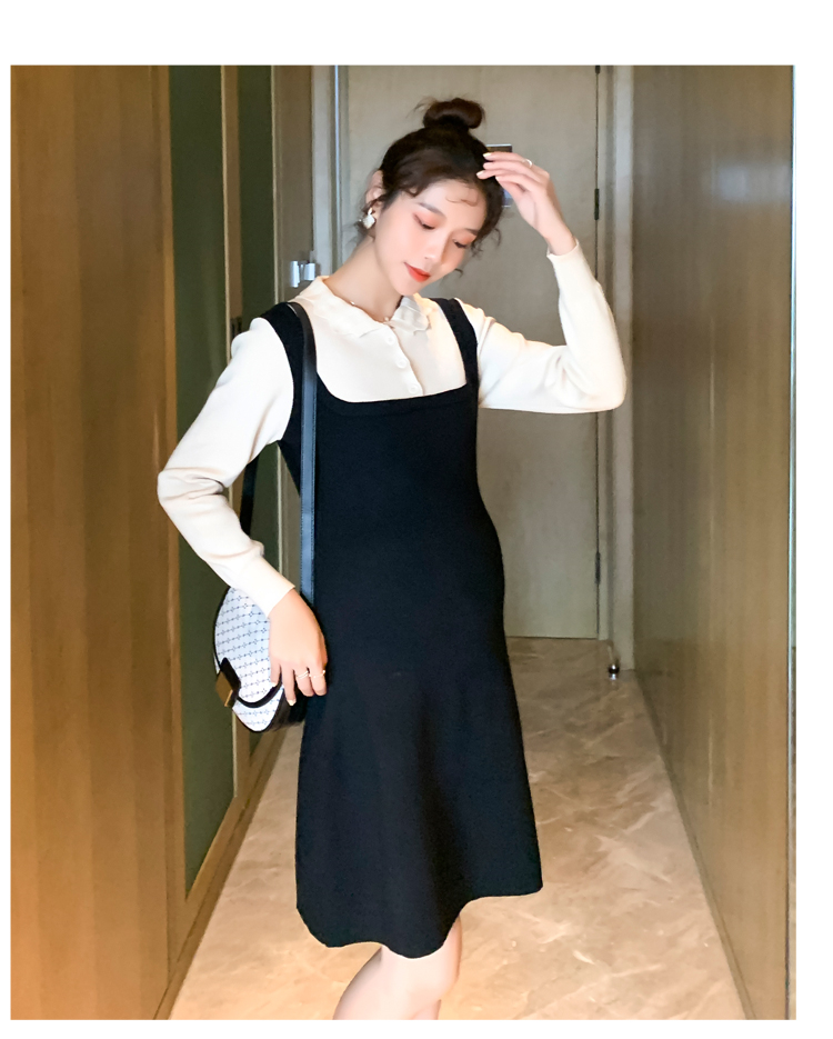 实拍现货2020秋冬新款孕妇甜美百塔撞色包芯纱假两件气质织毛衣大码连衣裙