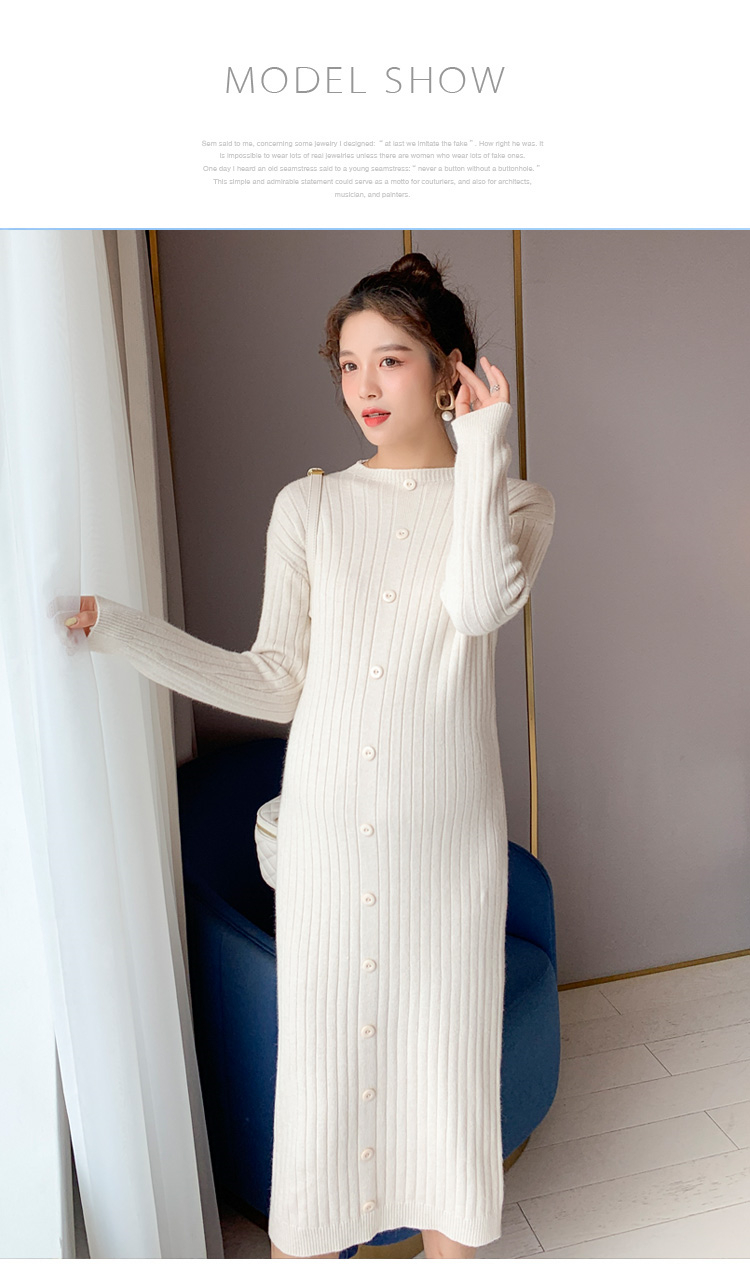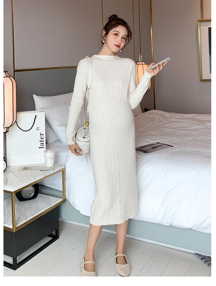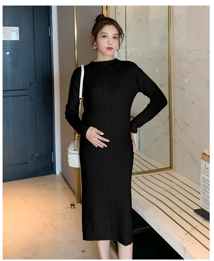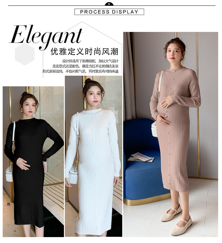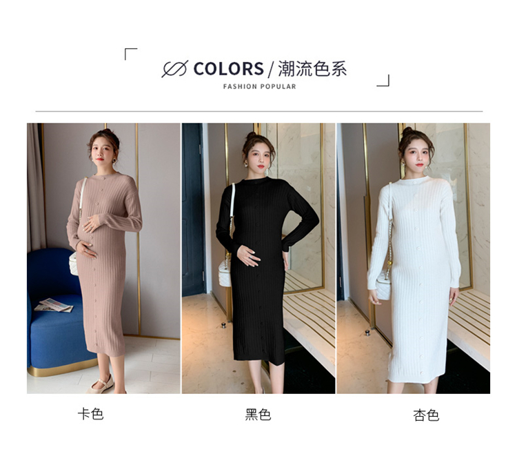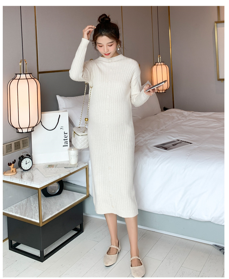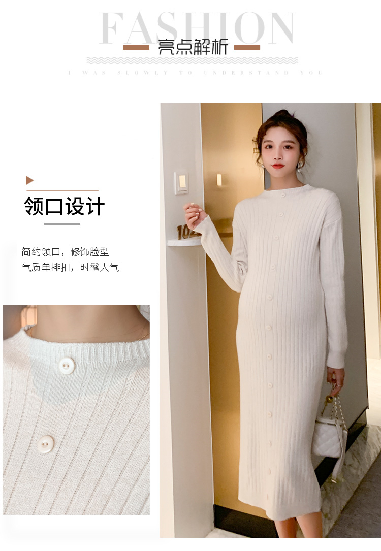 实拍现货2020秋冬新款孕妇半高领过膝气质复古单排扣百搭毛衣裙