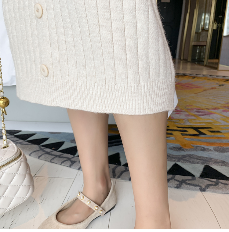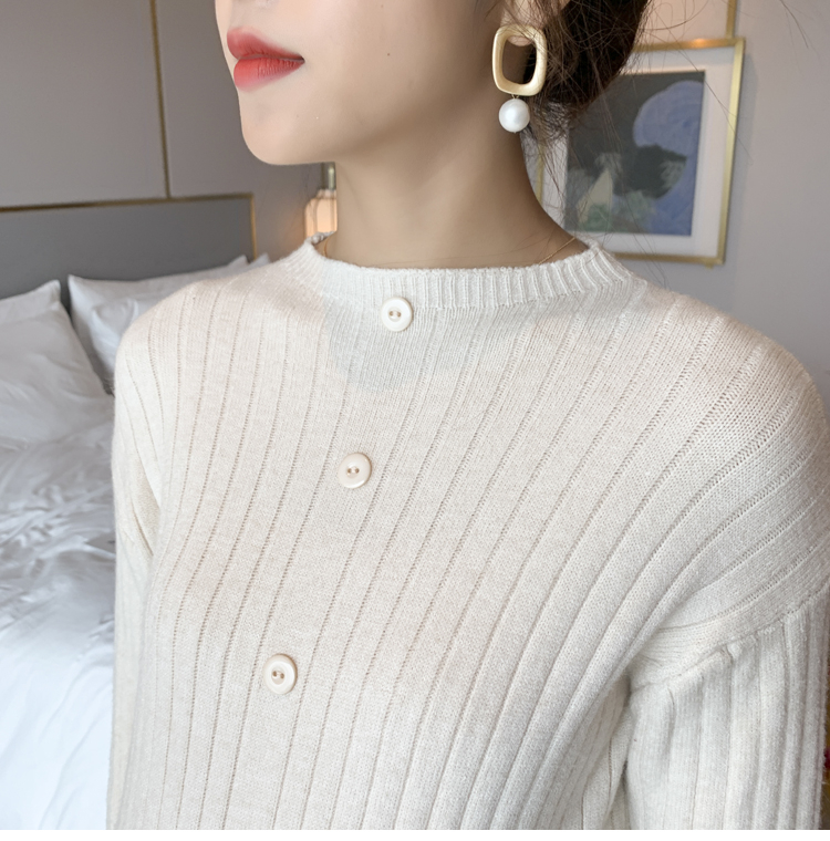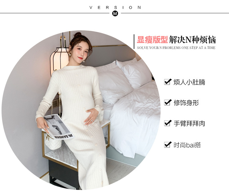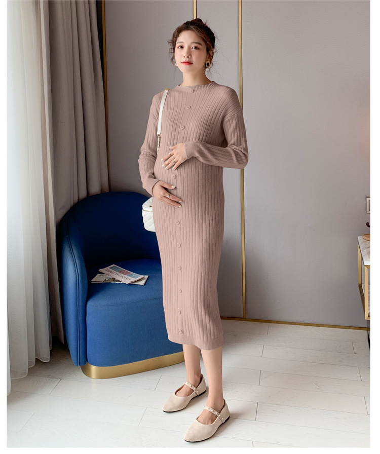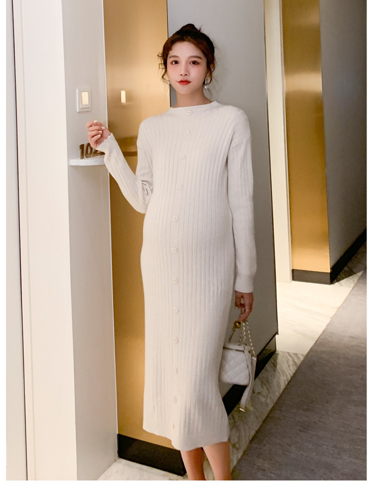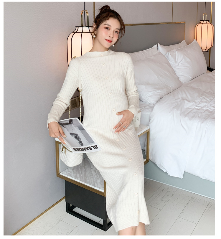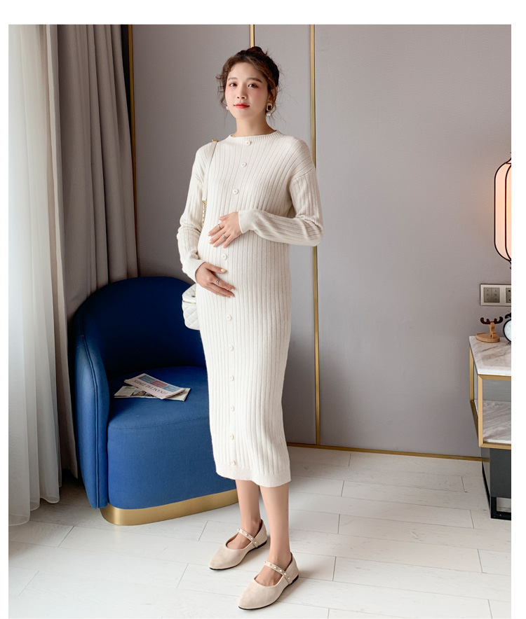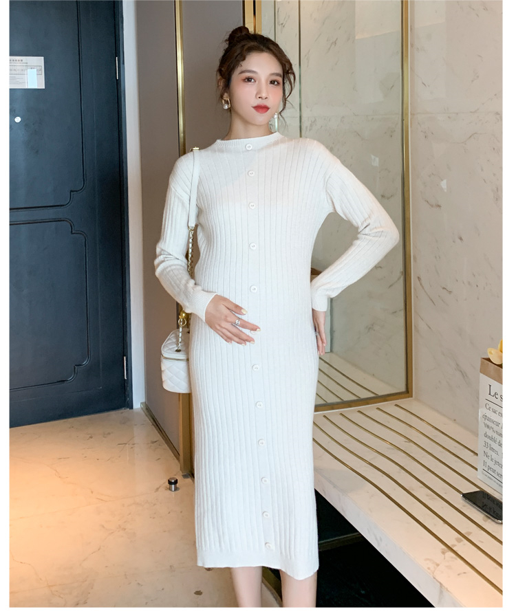 实拍现货2020秋冬新款孕妇半高领过膝气质复古单排扣百搭毛衣裙