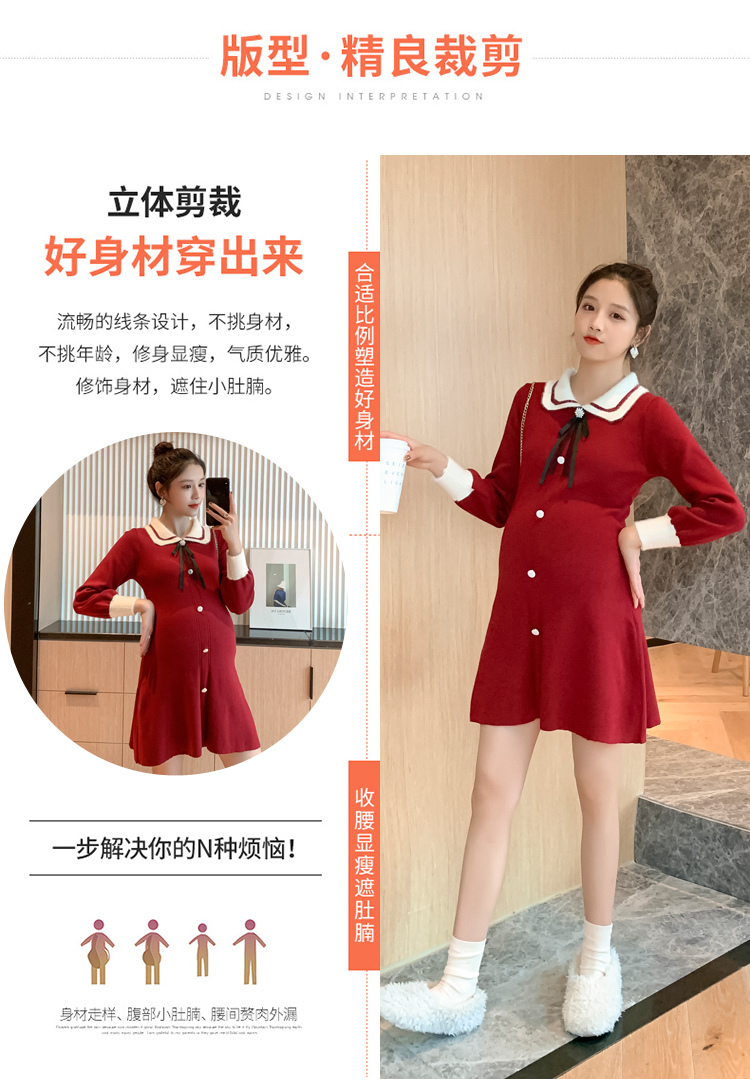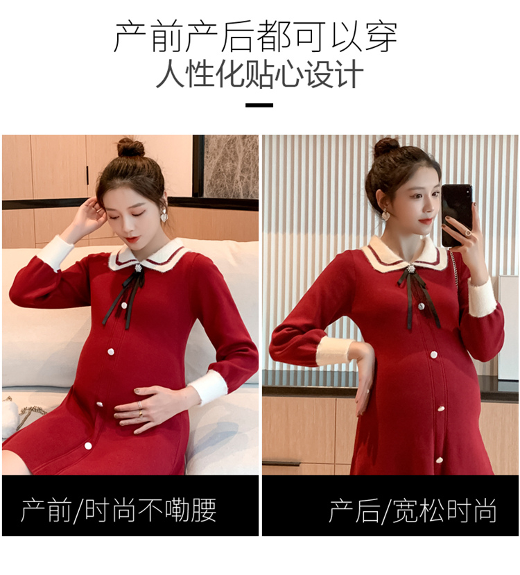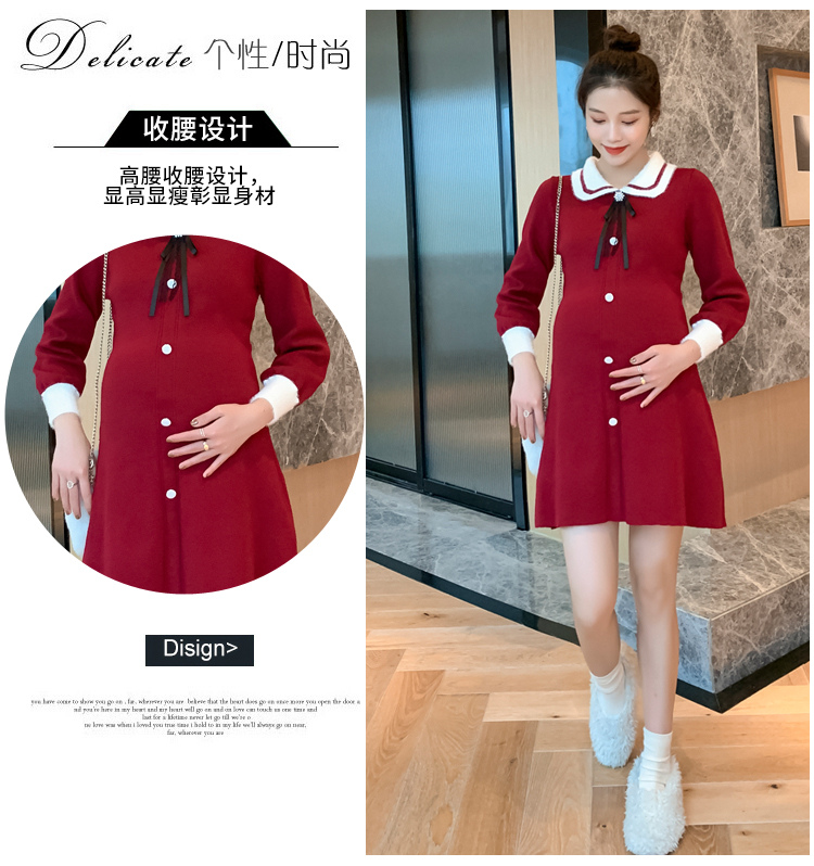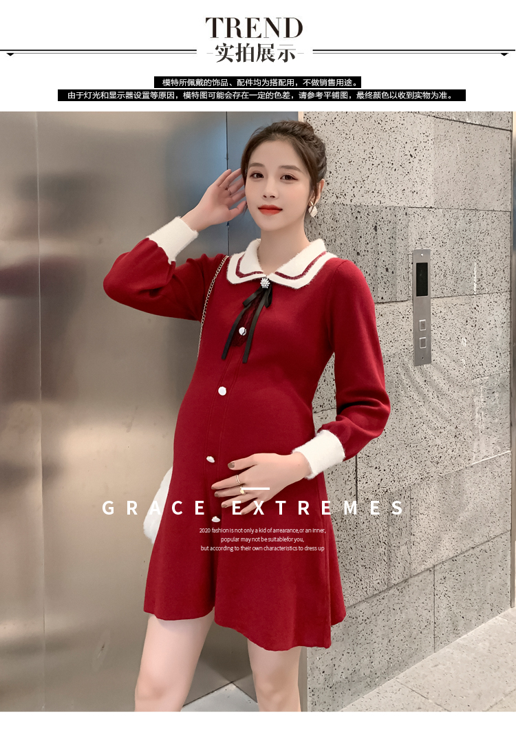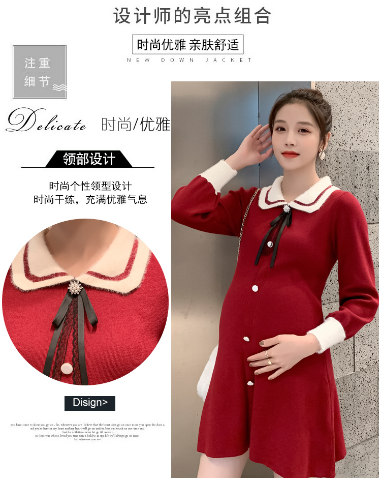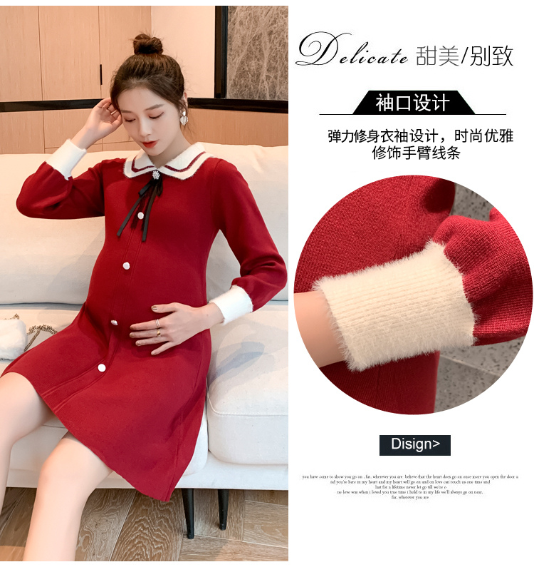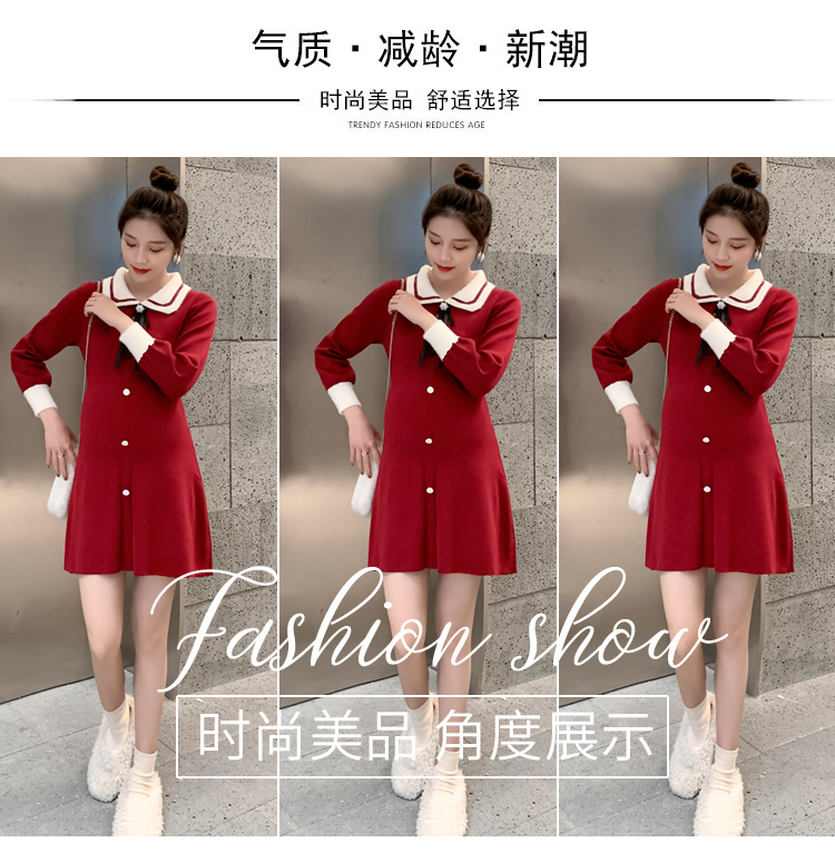实拍现货2020冬季新款孕妇法式水貂毛领时尚减龄宽松显瘦洋气胖mm大码针织连衣裙