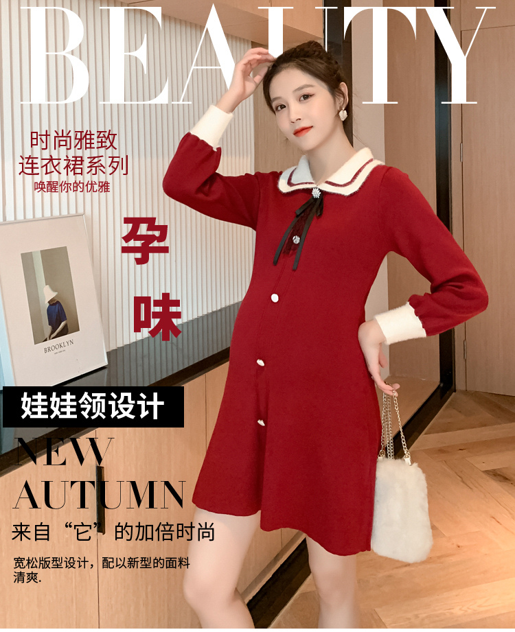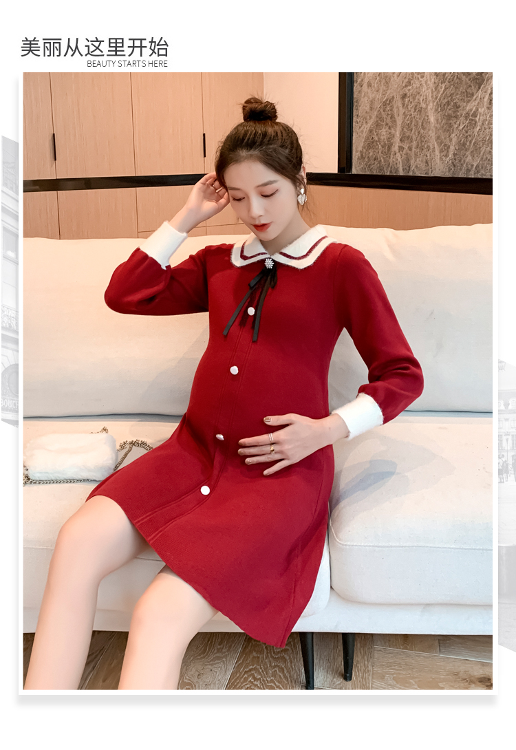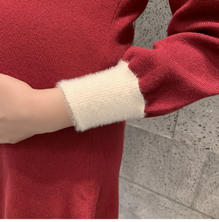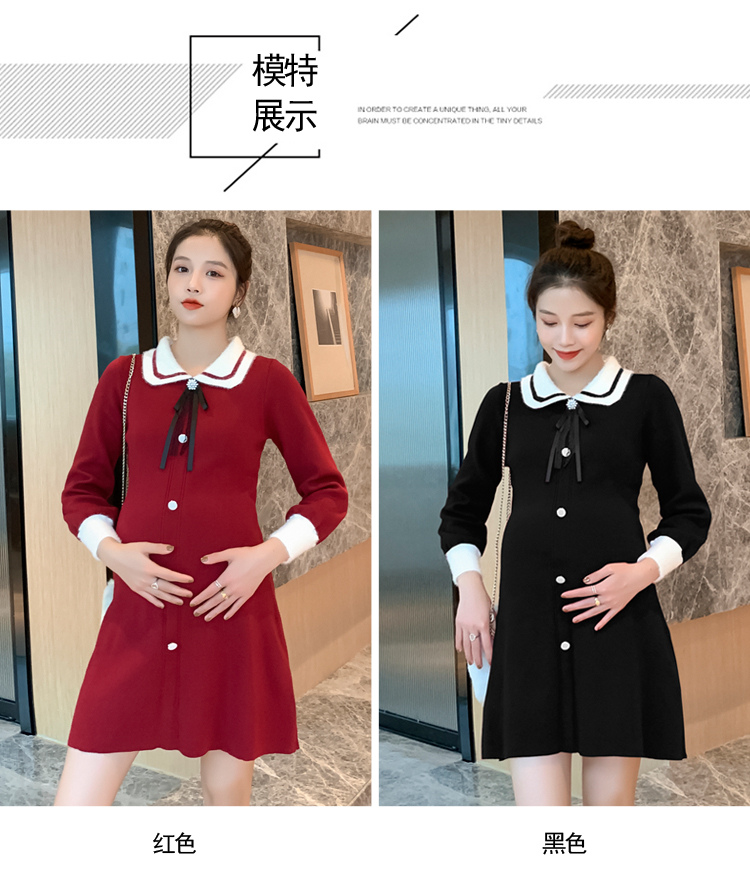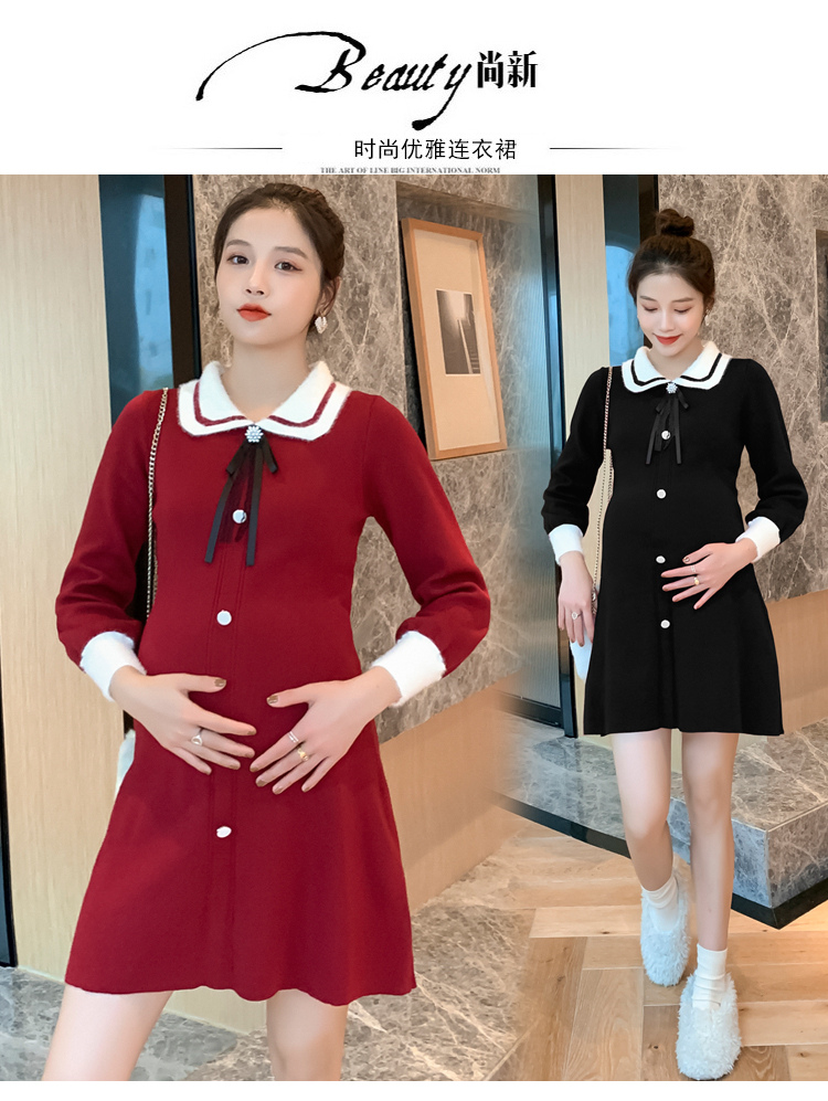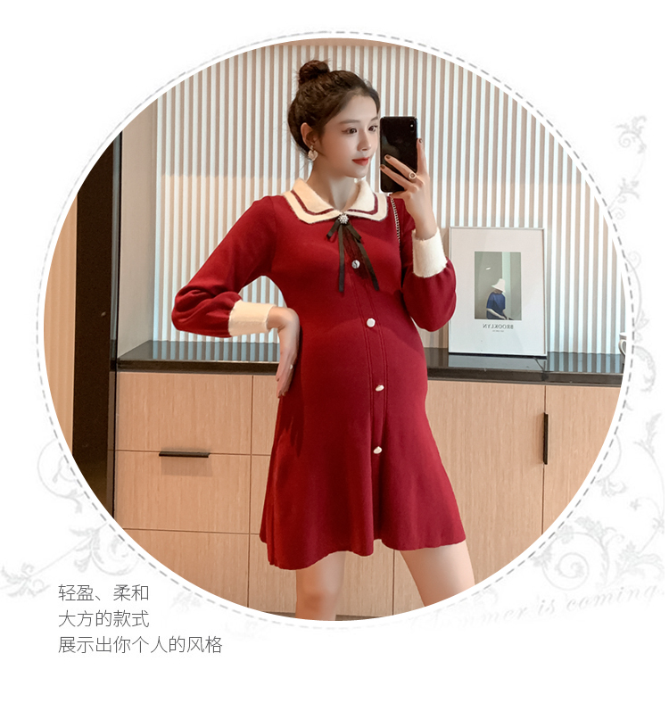 实拍现货2020冬季新款孕妇法式水貂毛领时尚减龄宽松显瘦洋气胖mm大码针织连衣裙