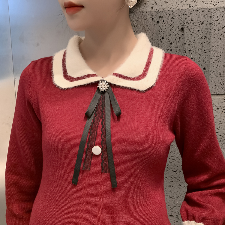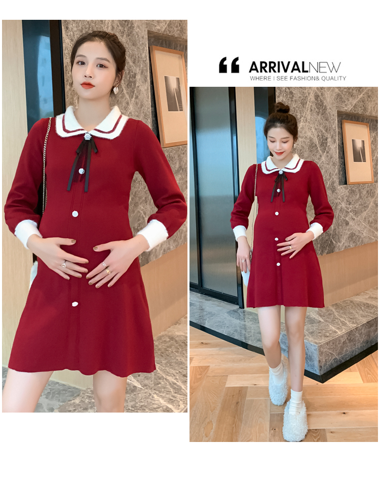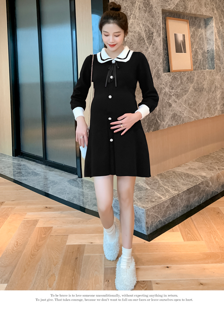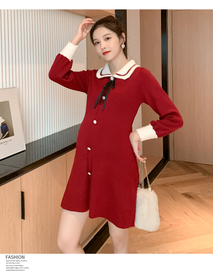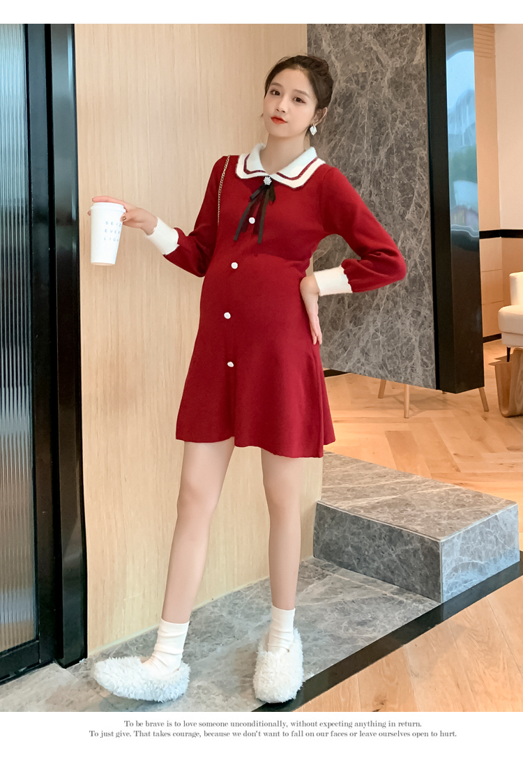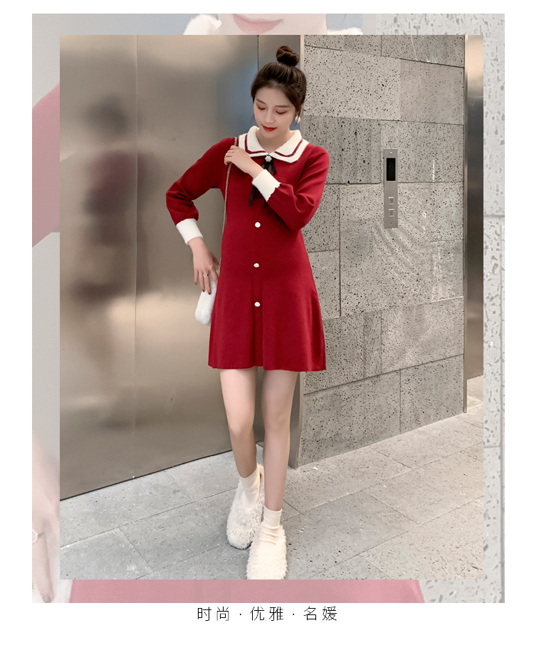 实拍现货2020冬季新款孕妇法式水貂毛领时尚减龄宽松显瘦洋气胖mm大码针织连衣裙