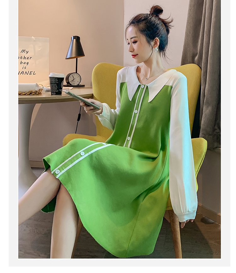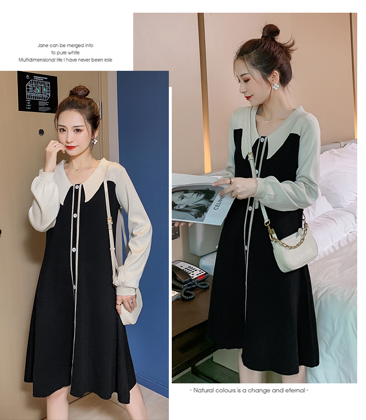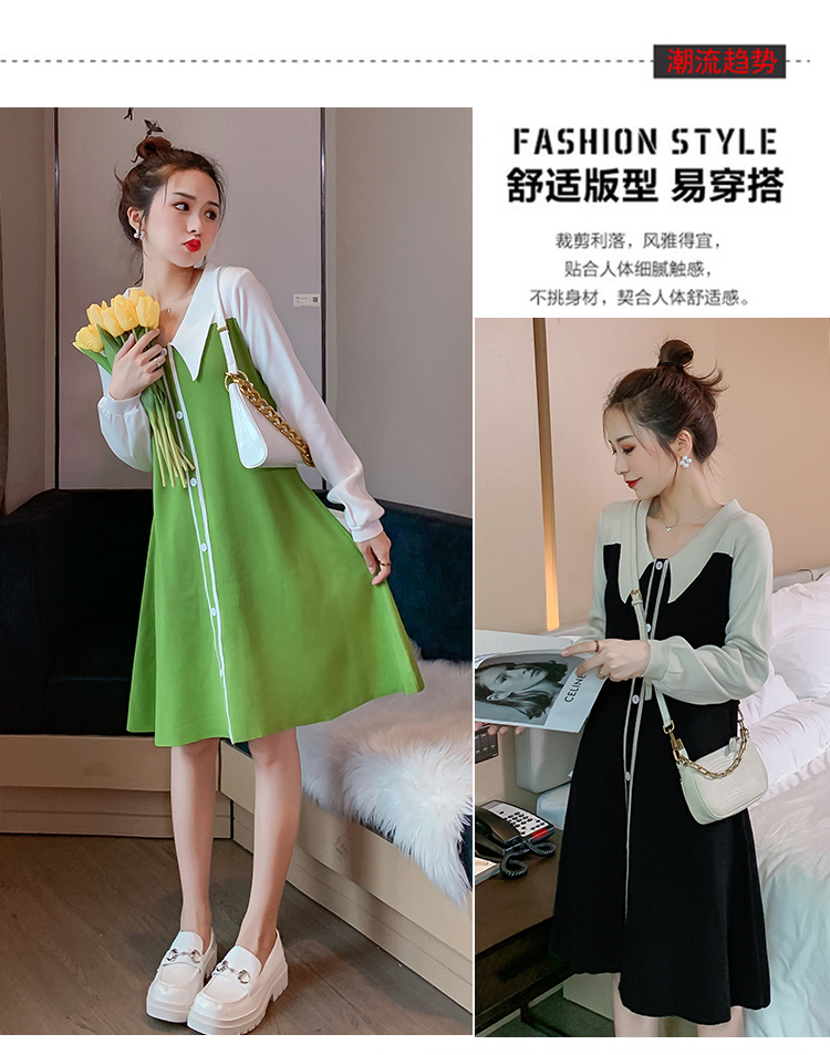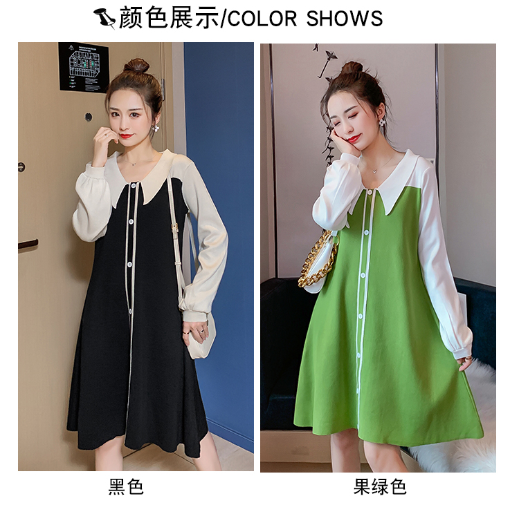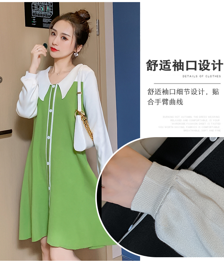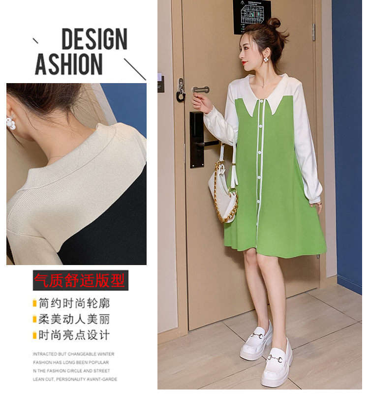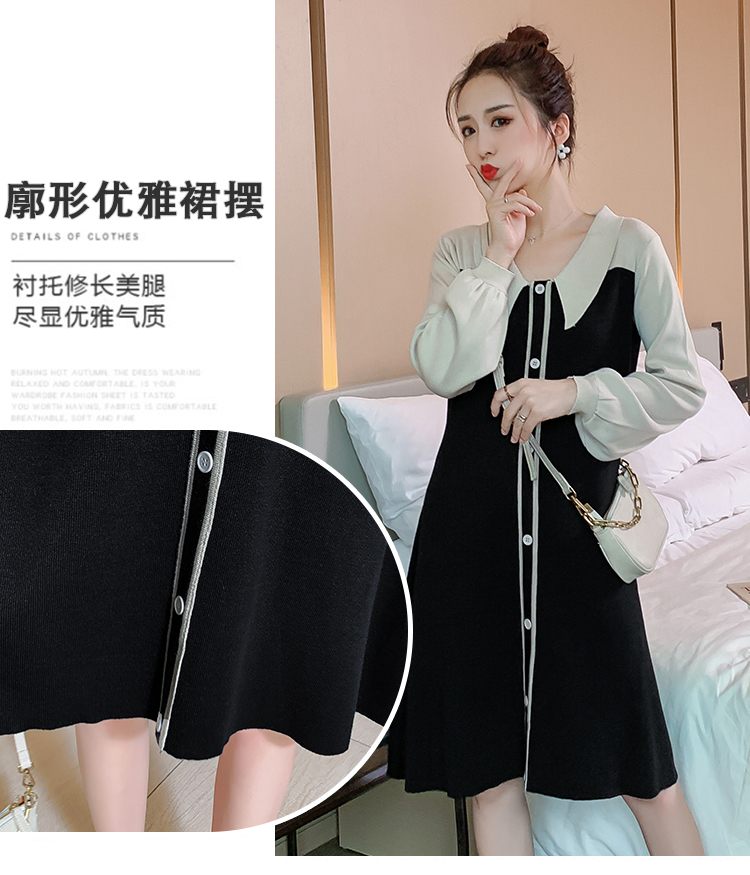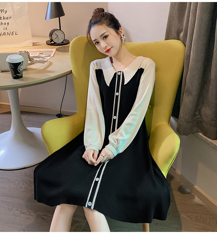 实拍1973#孕妇秋冬毛衣时尚撞色拼接针织连衣裙气质显瘦打底衫潮