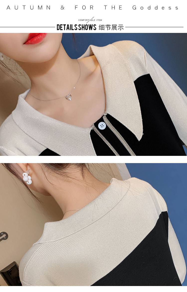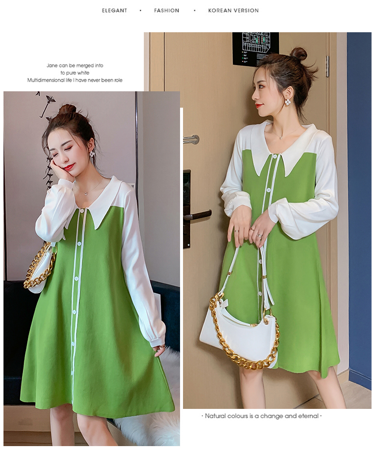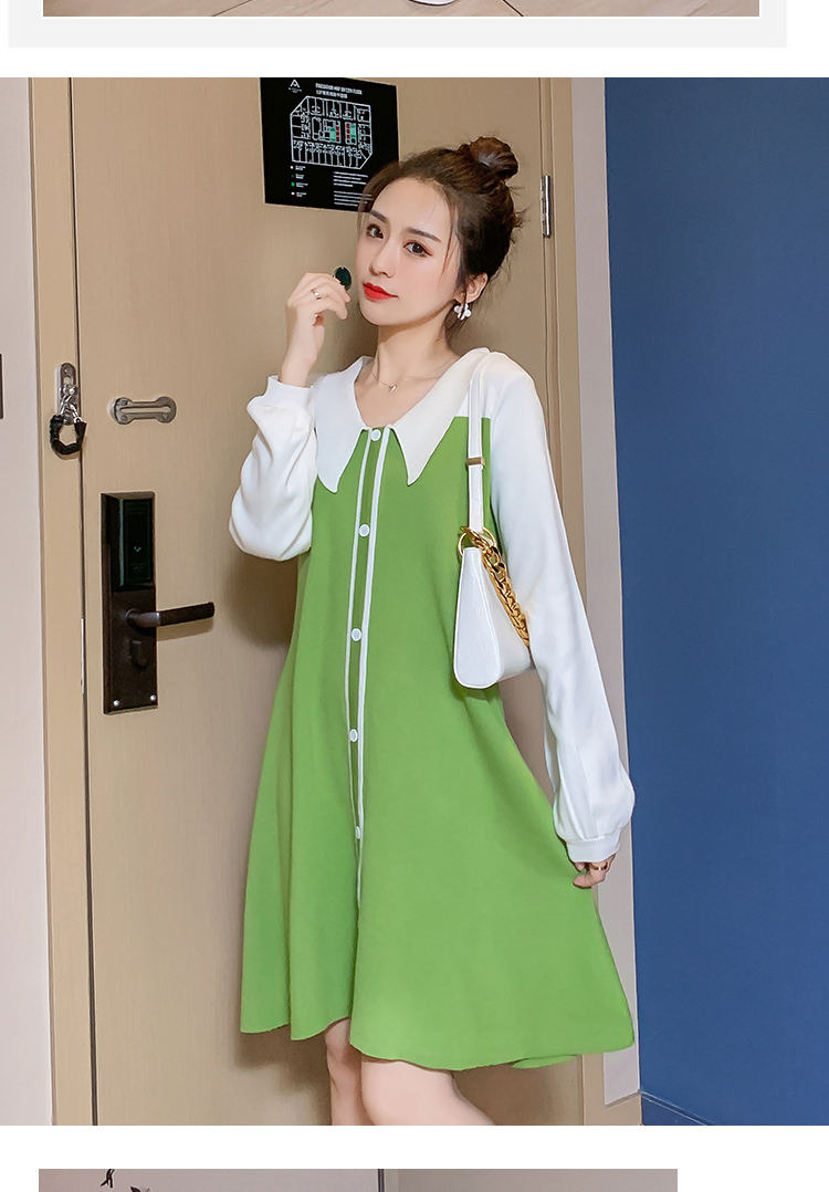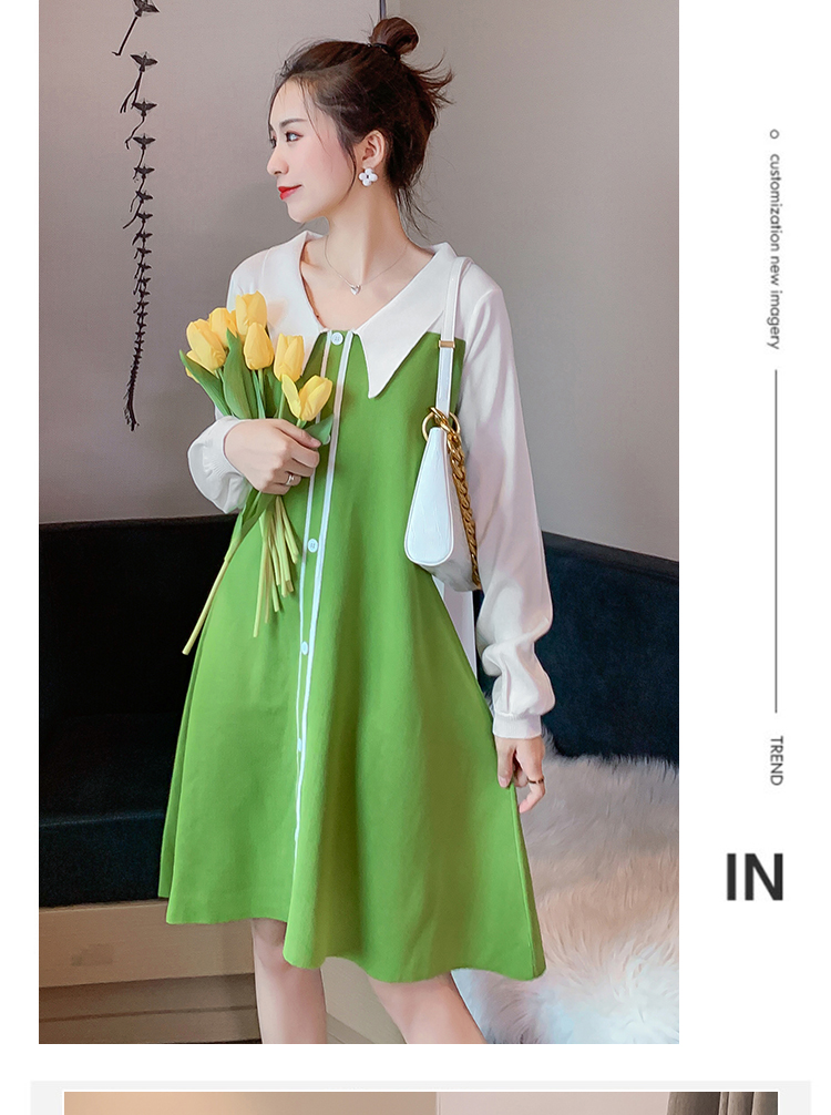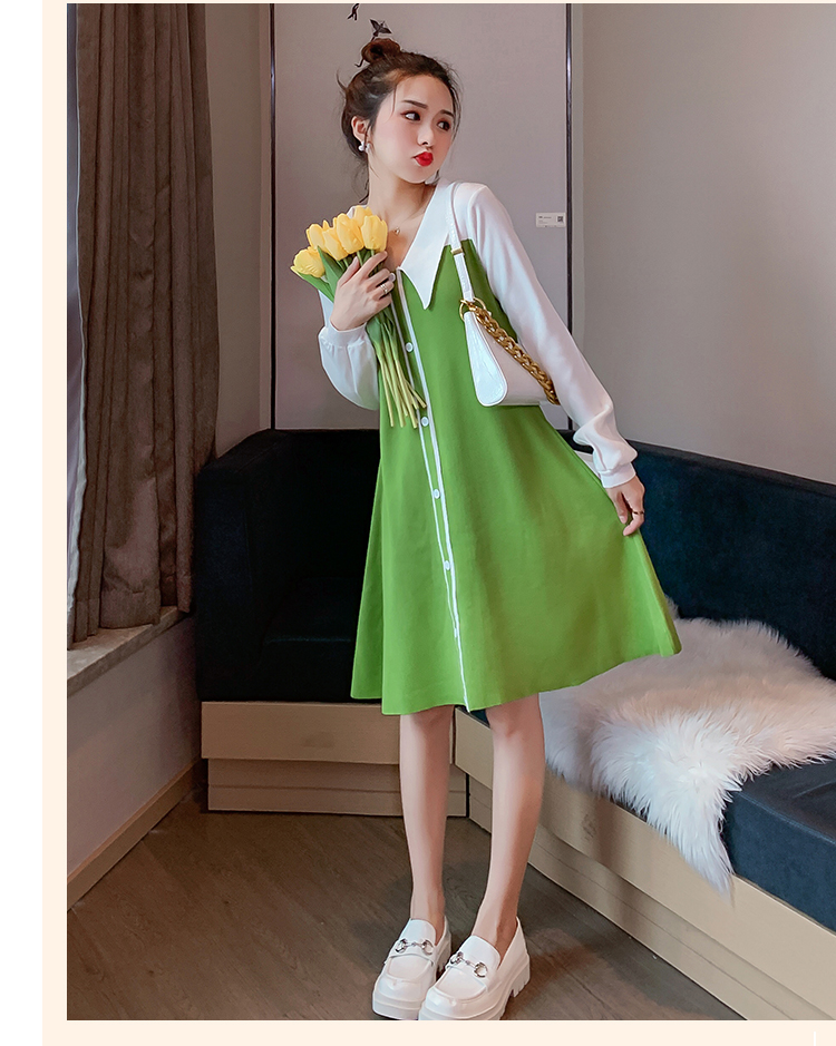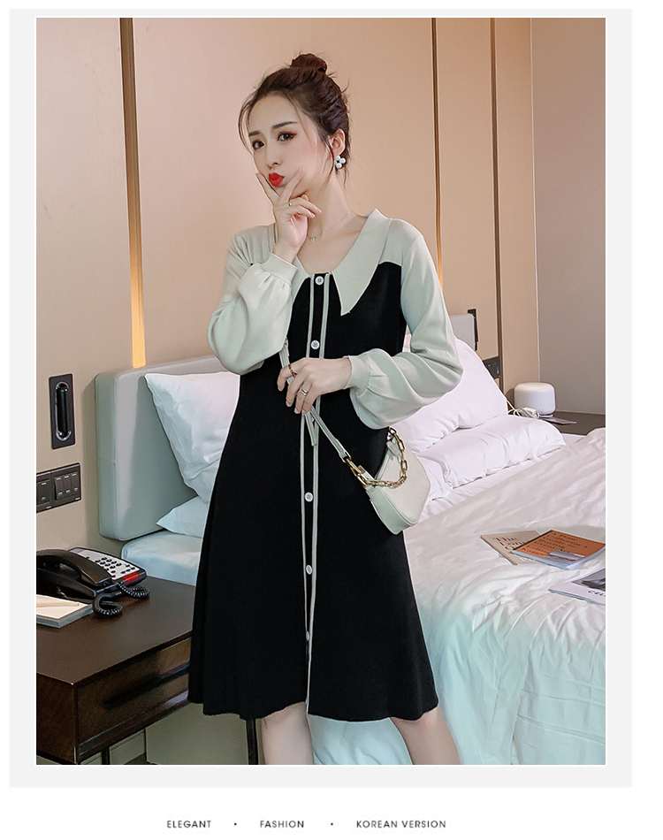 实拍1973#孕妇秋冬毛衣时尚撞色拼接针织连衣裙气质显瘦打底衫潮