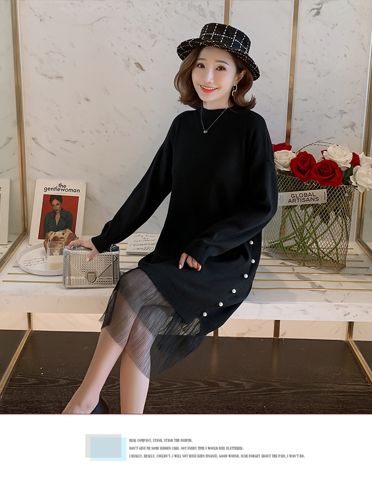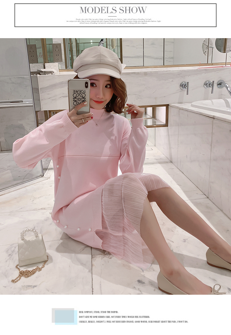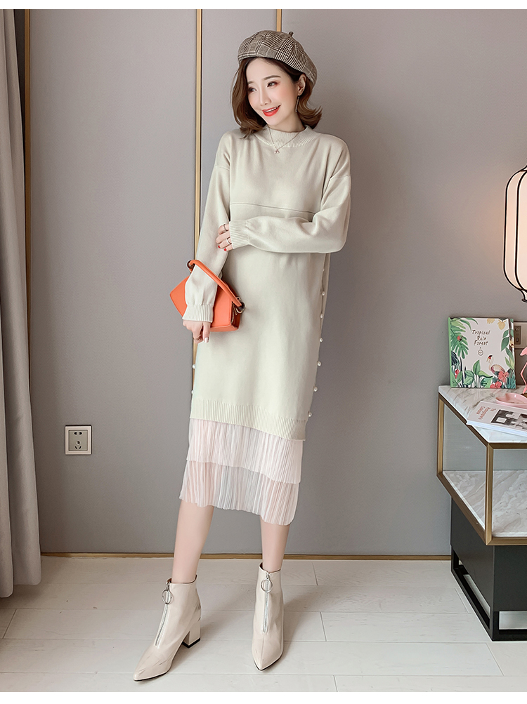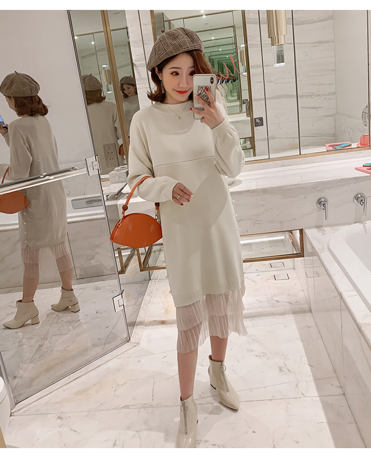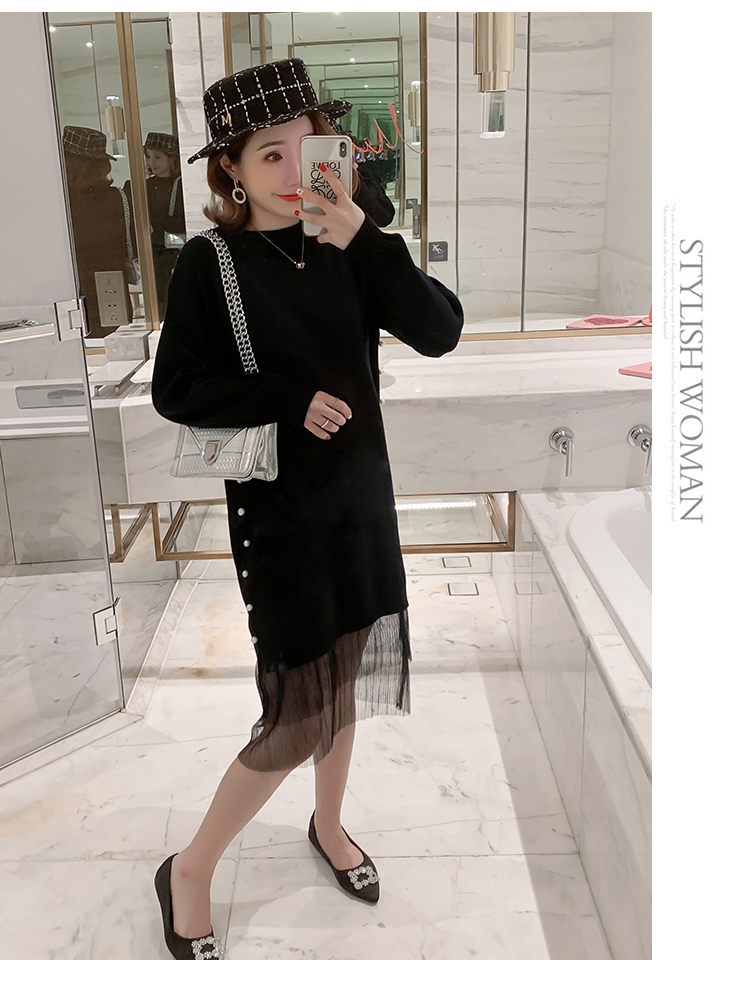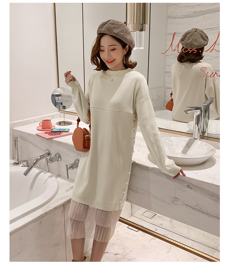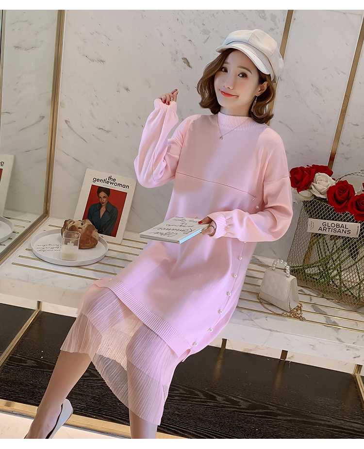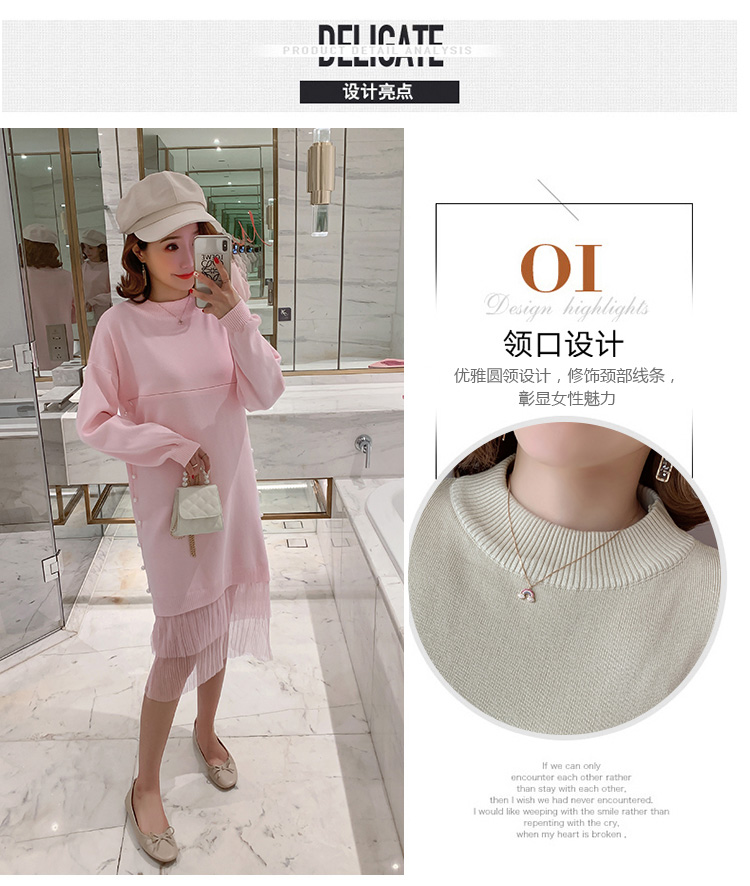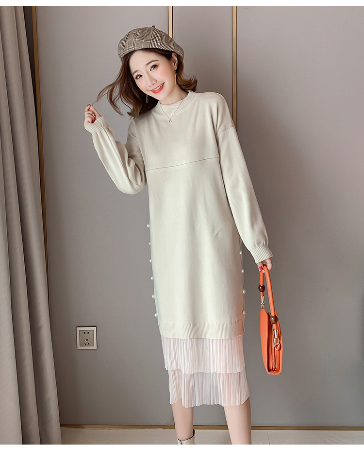 实拍9903#哺乳毛衣甜美网纱拼接针织打底衫产后钉珠喂奶连衣裙潮